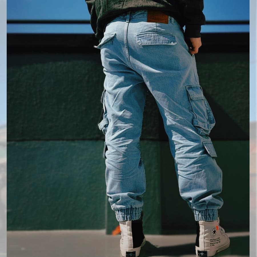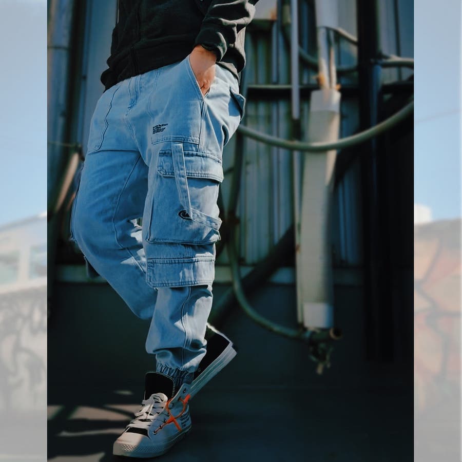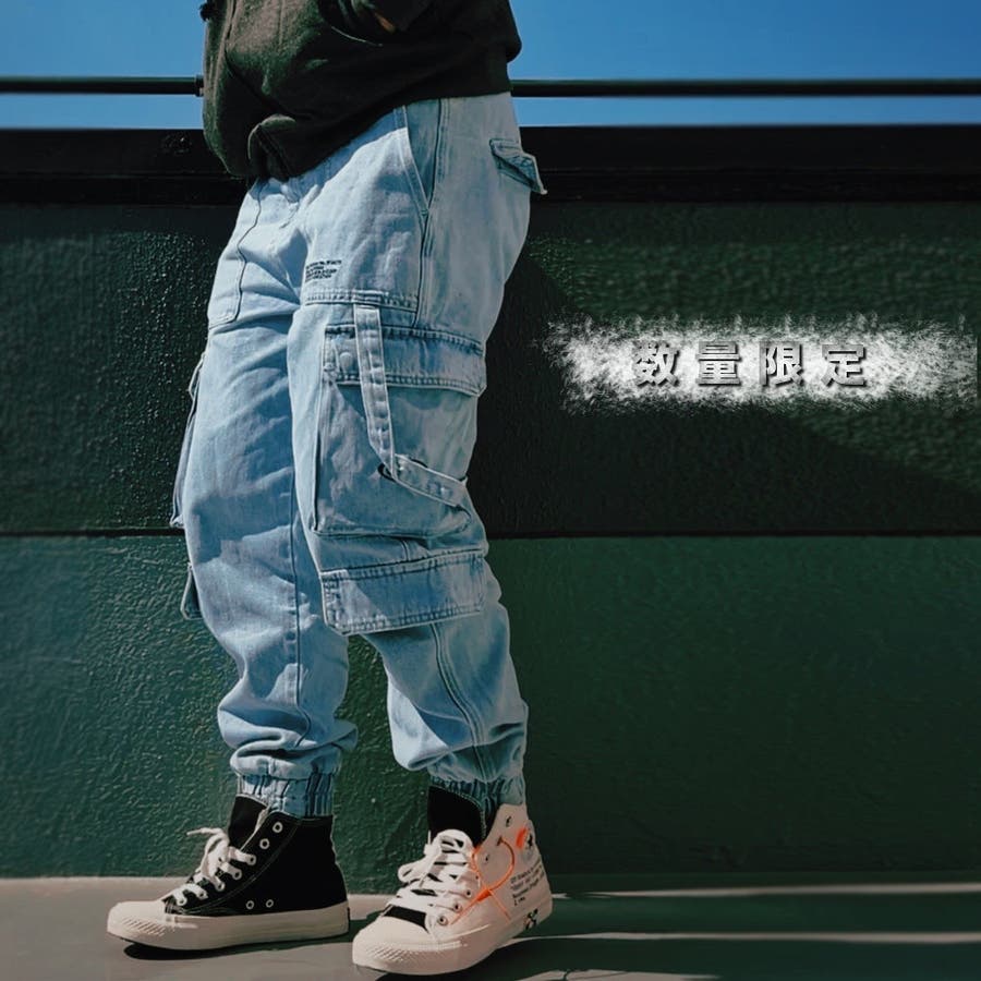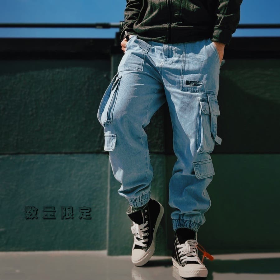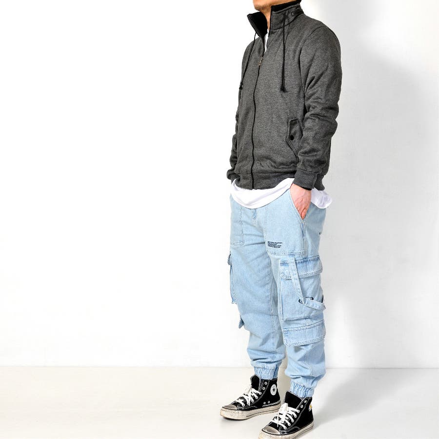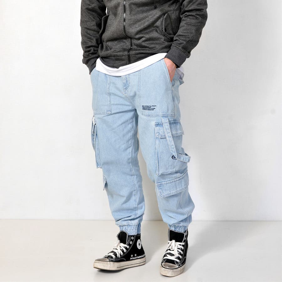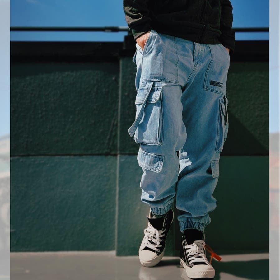 しっかりしたデニムを使った、ルーズシルエットのデニムカーゴパンツ