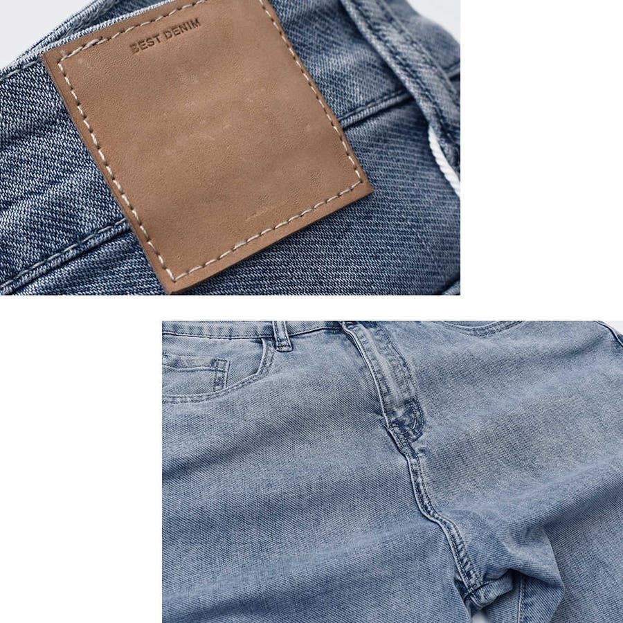 太ももから足元に向かって細くなる、テーパードタイプのジーンズです