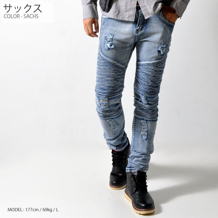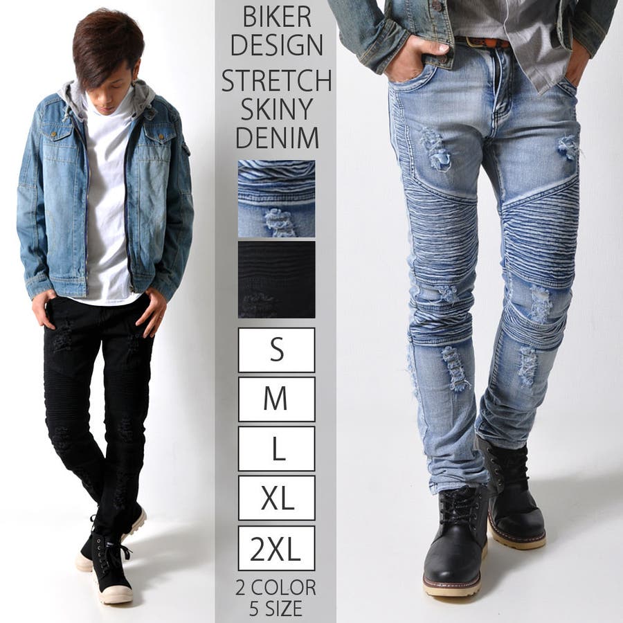 バイカー スキニーデニム ストレッチ入り