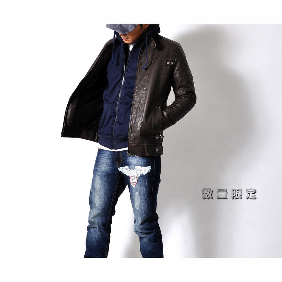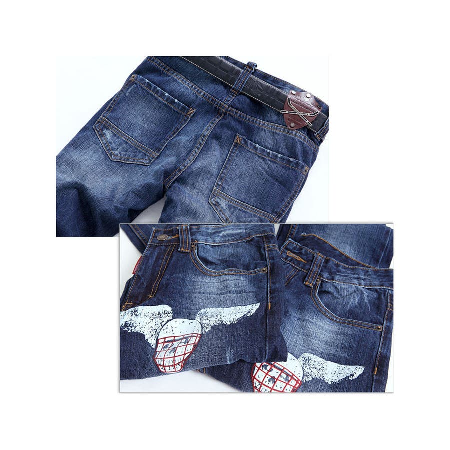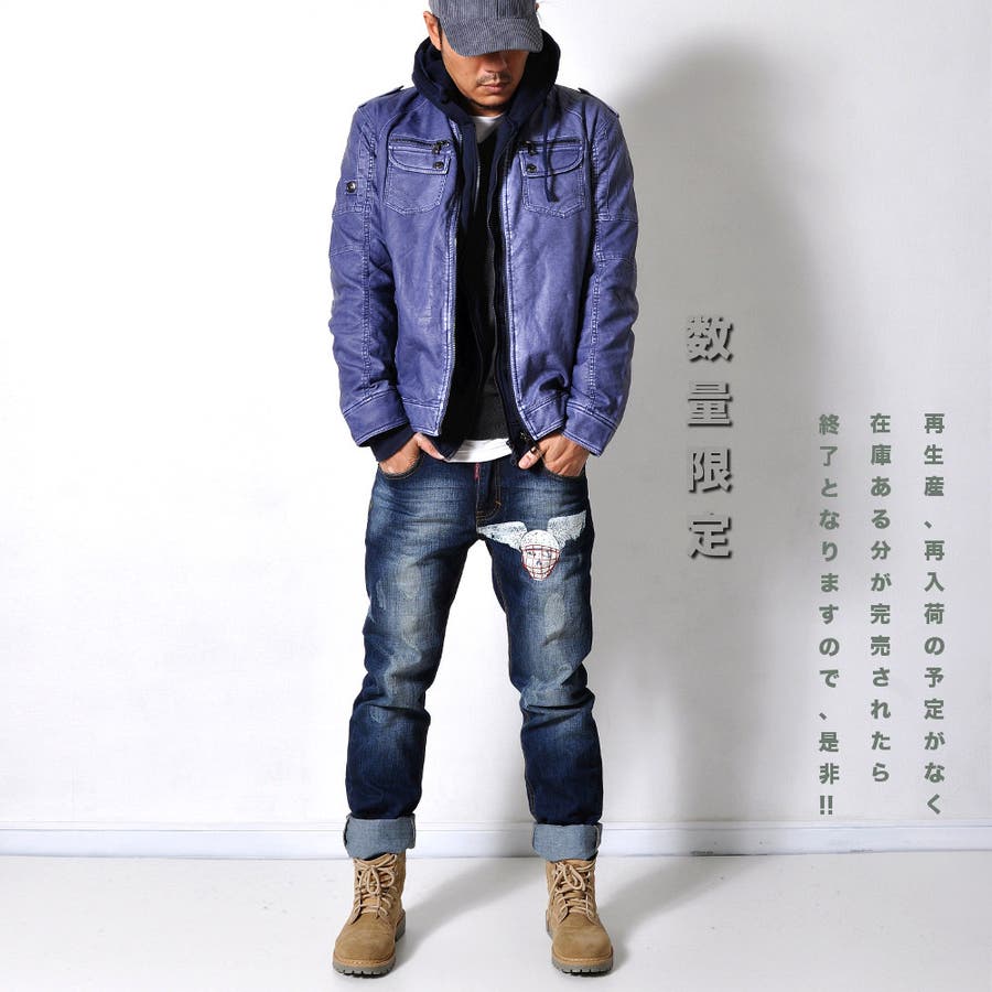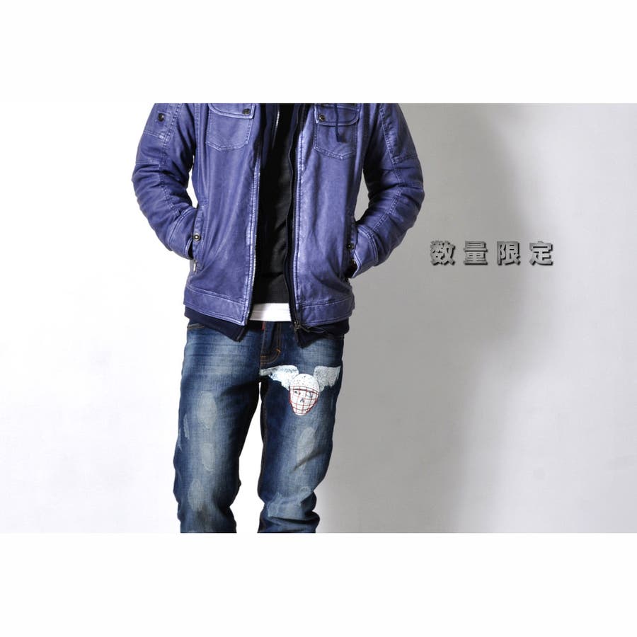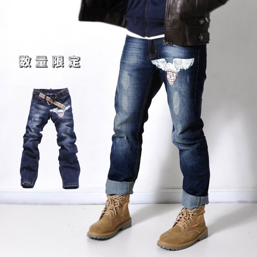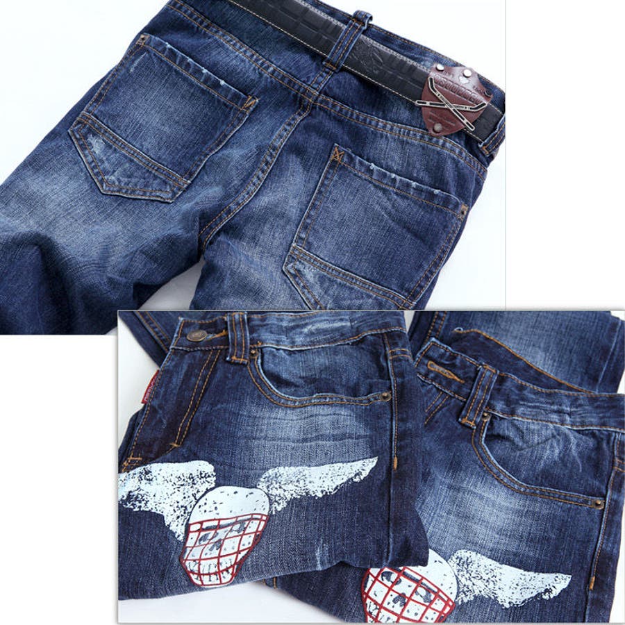 ストレートデニム ウォッシュ加工 スカルデザイン ジーンズ#Jeapk75