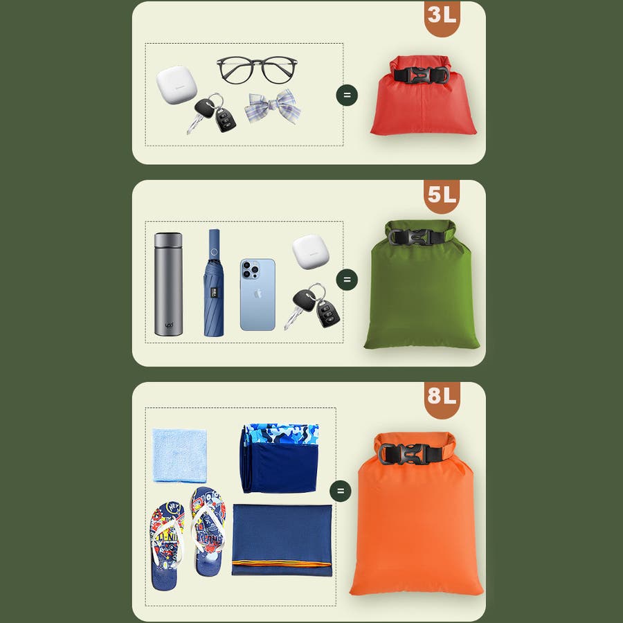 コンパクトに折りたためる、ロールトップ式ドライサック