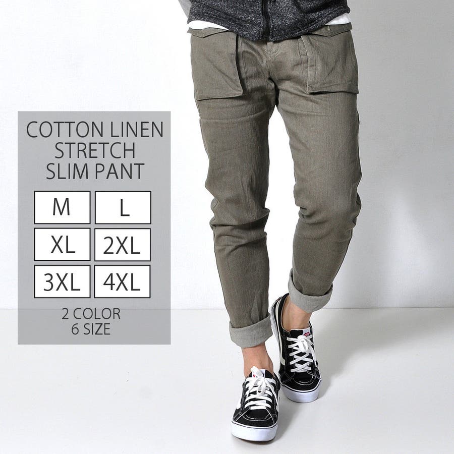 暑くなる季節でも快適に穿ける麻混素材のスリムパンツです。