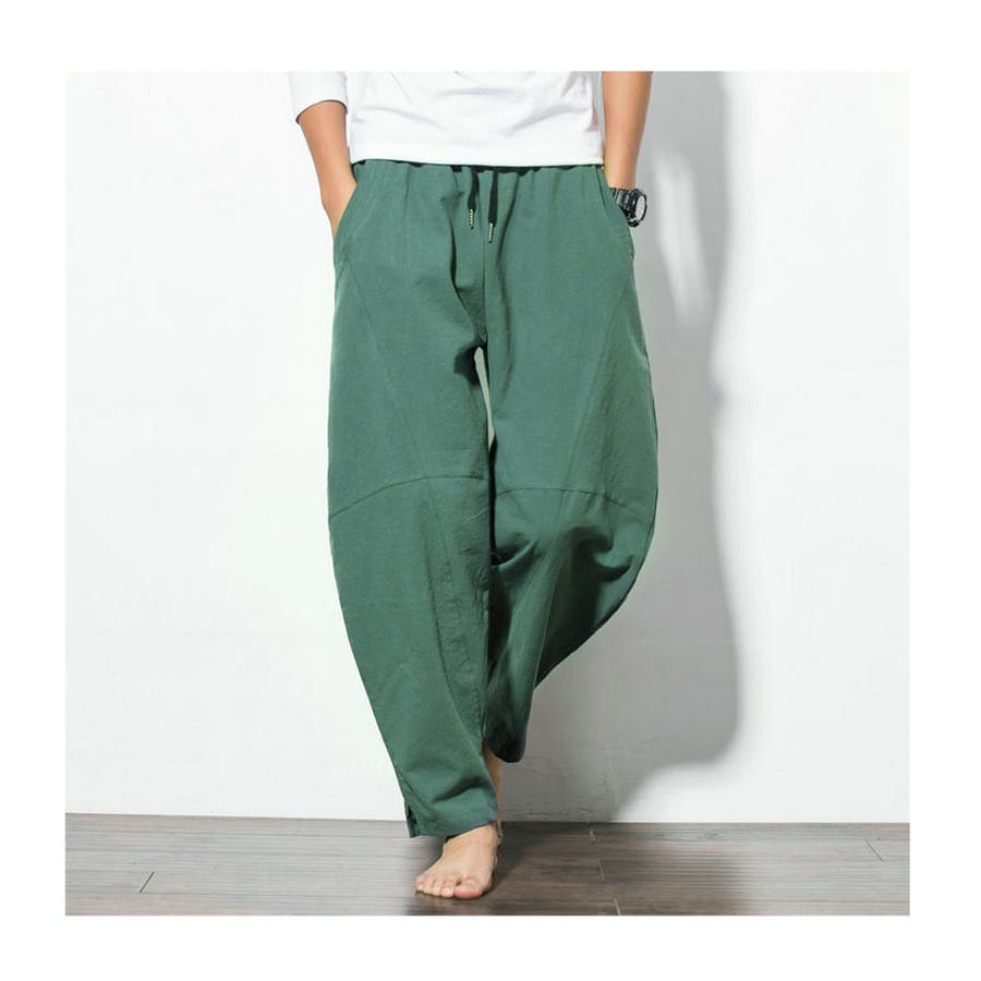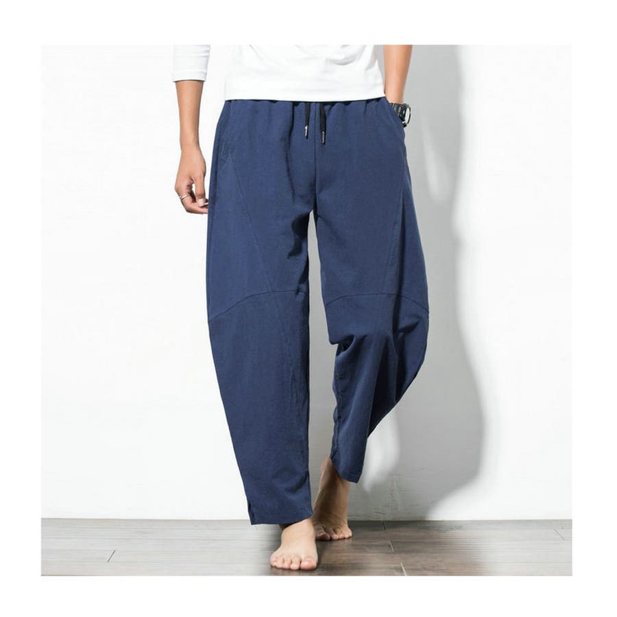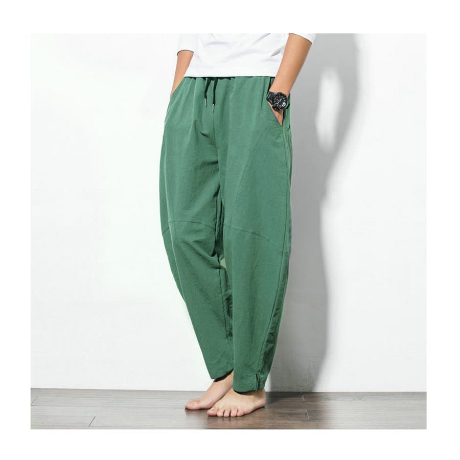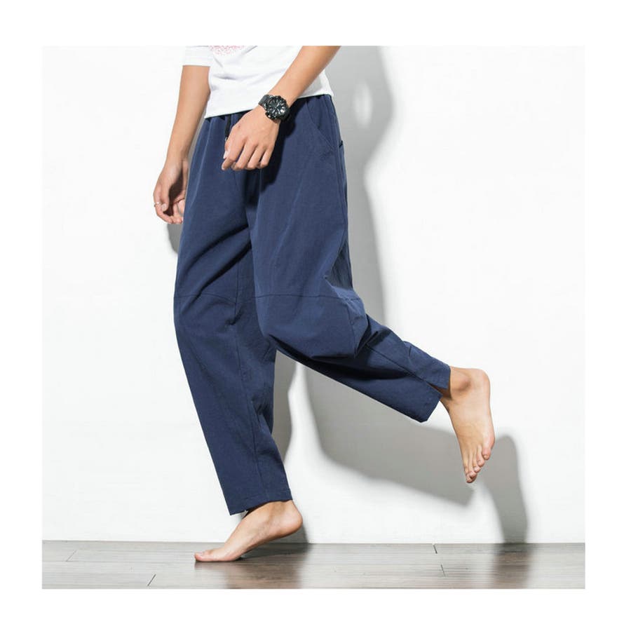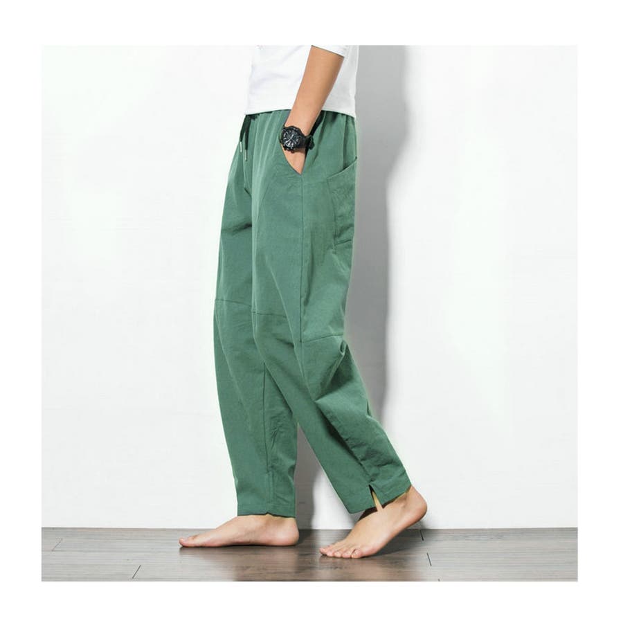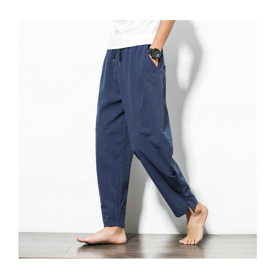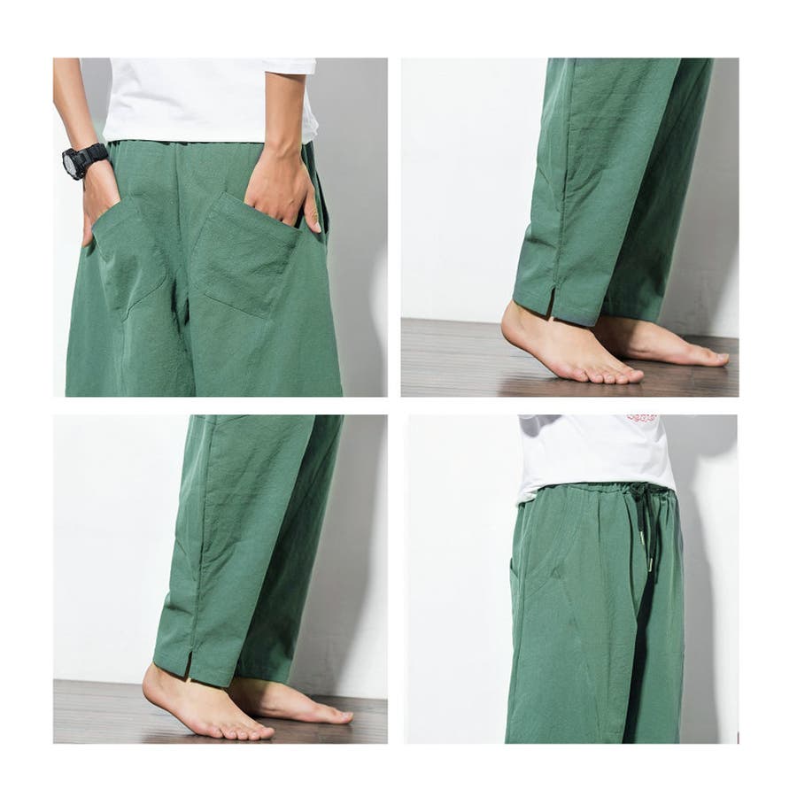 綿麻テーパードパンツ メンズ アンクル丈