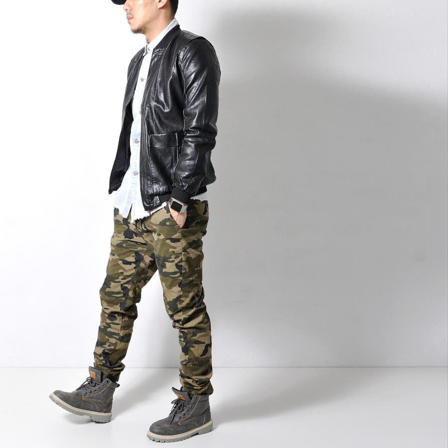 適度なラフさを与えてくれる迷彩柄ジョガーパンツ