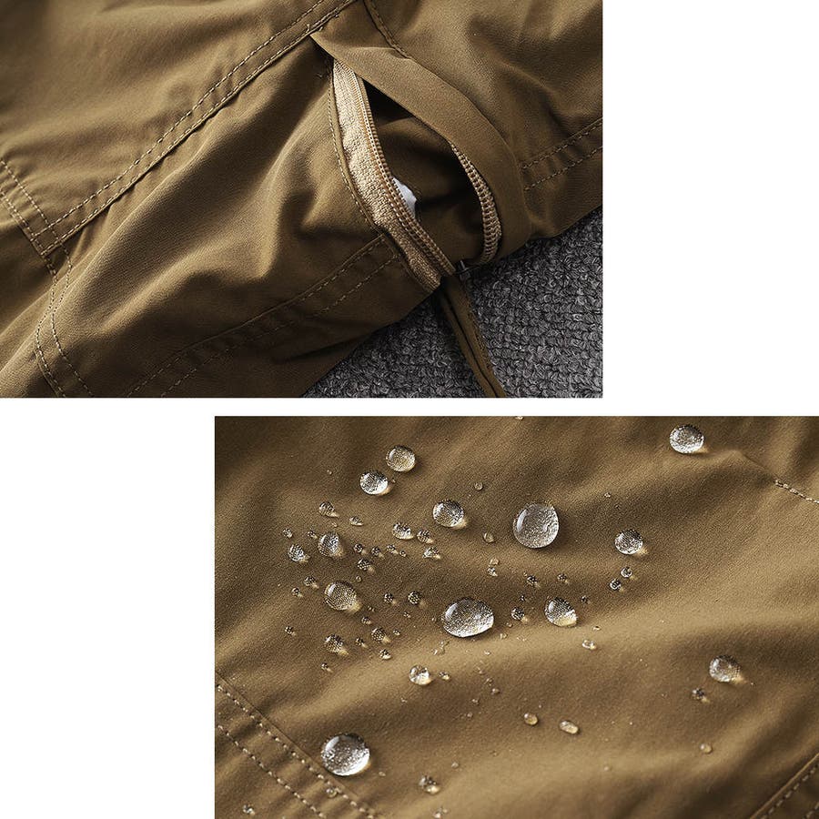 裏起毛で暖かく、表地は撥水性に優れていて風も通しにくい素材を使用