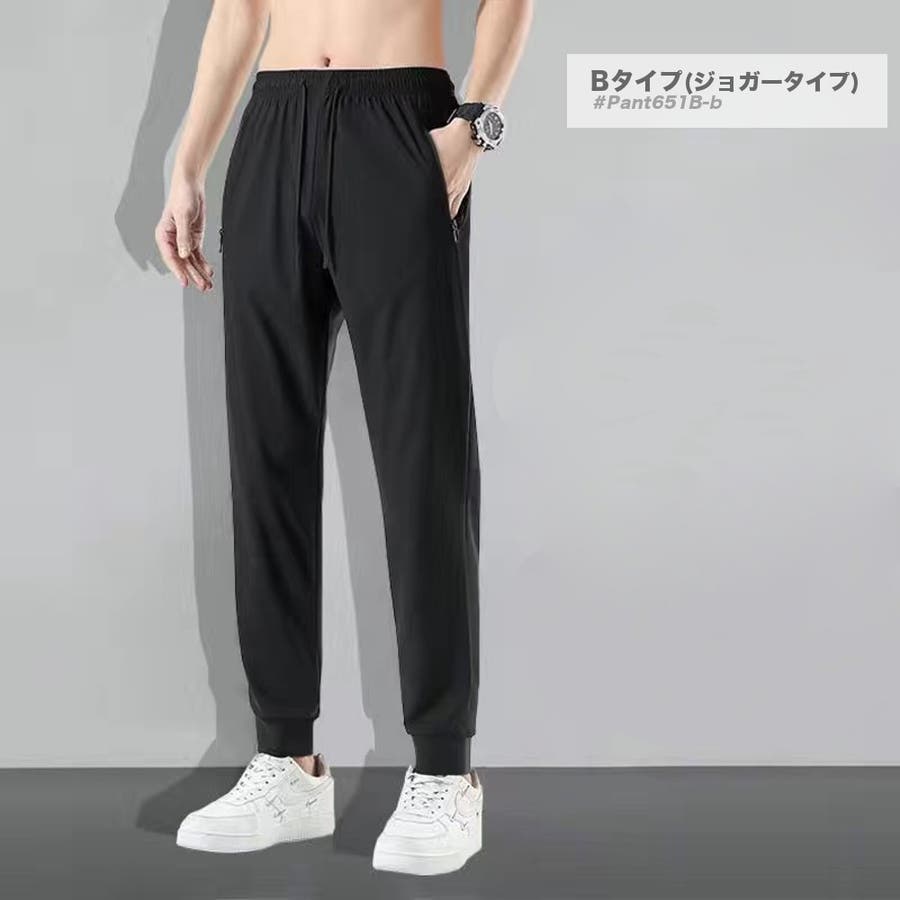 Aタイプはストレート、Bタイプは裾ゴムタイプのジョガーパンツ