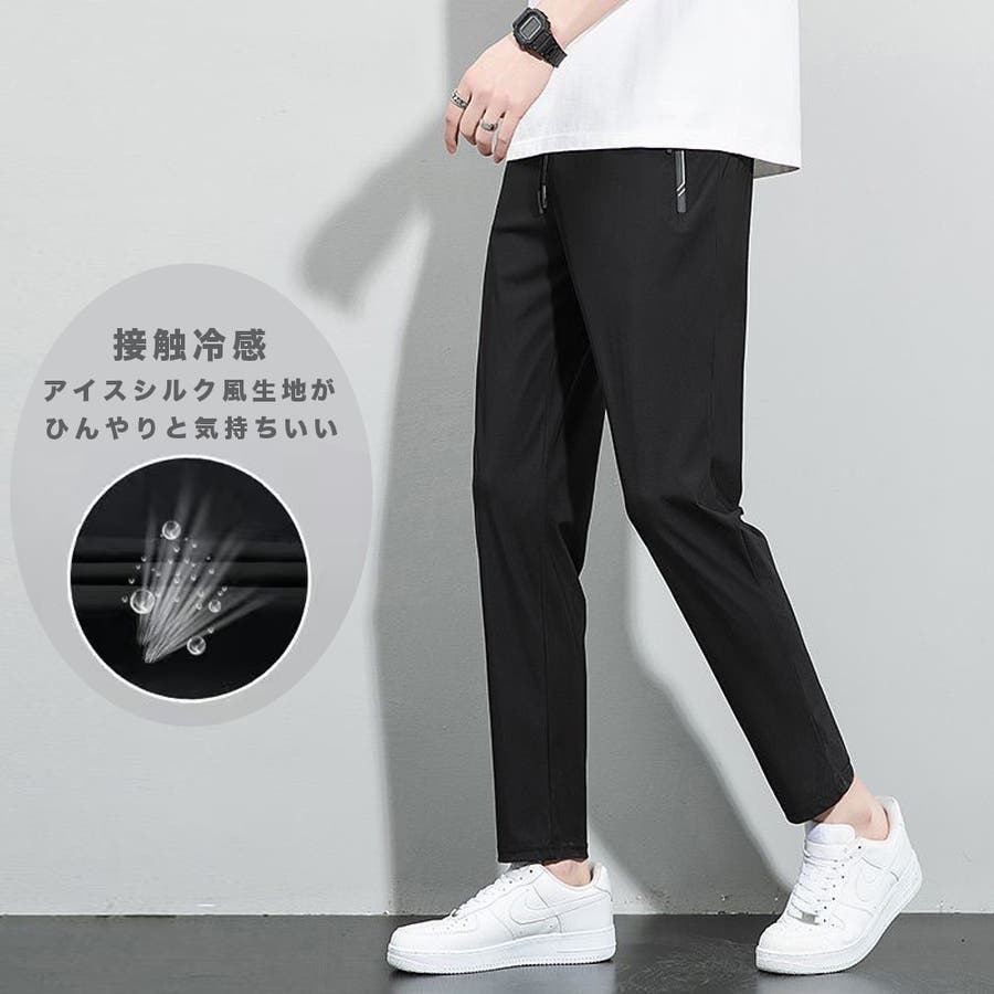 接触冷感 薄手 ストレッチパンツ メンズ 超伸縮 スリム 涼しい 吸汗速乾 アイスシルク ズボン ボトムス[2色]#Pant651