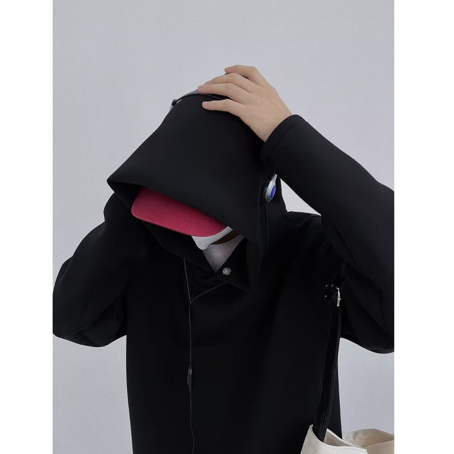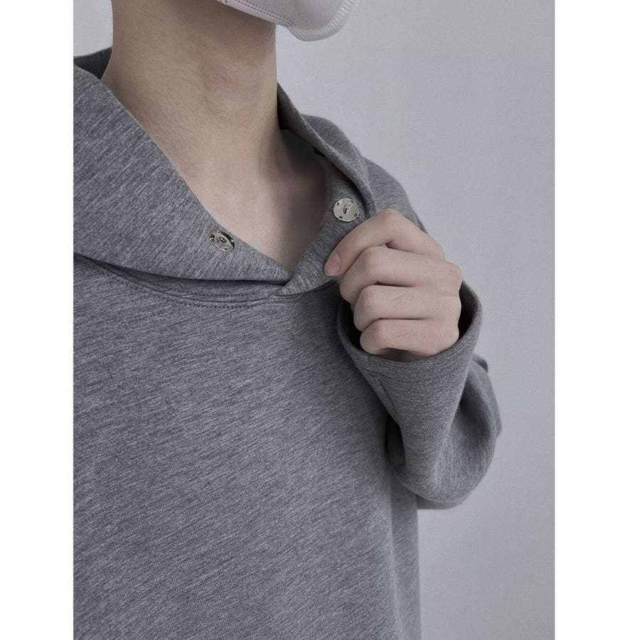 首元のスナップボタンでハイネック仕様でも着用できます。