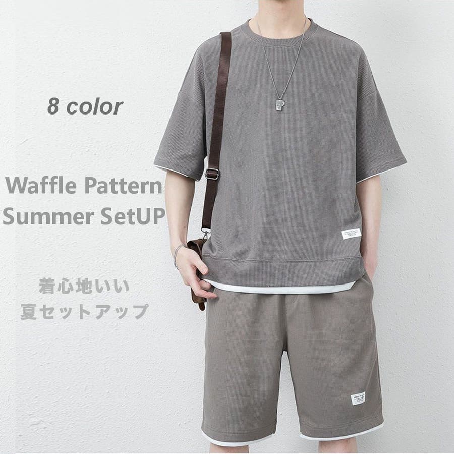 丸首 2点セット ルームウェア カジュアル トレーニング パジャマ オーバーサイズ 春夏 夏用 夏服 ショートパンツ 重ね着風