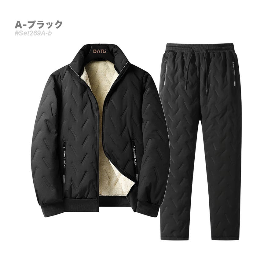 中綿入り+モコモコ裏ボア仕様のあったかセットアップ。