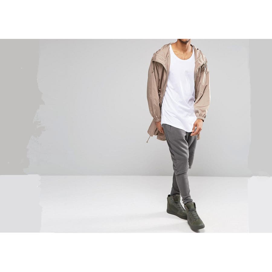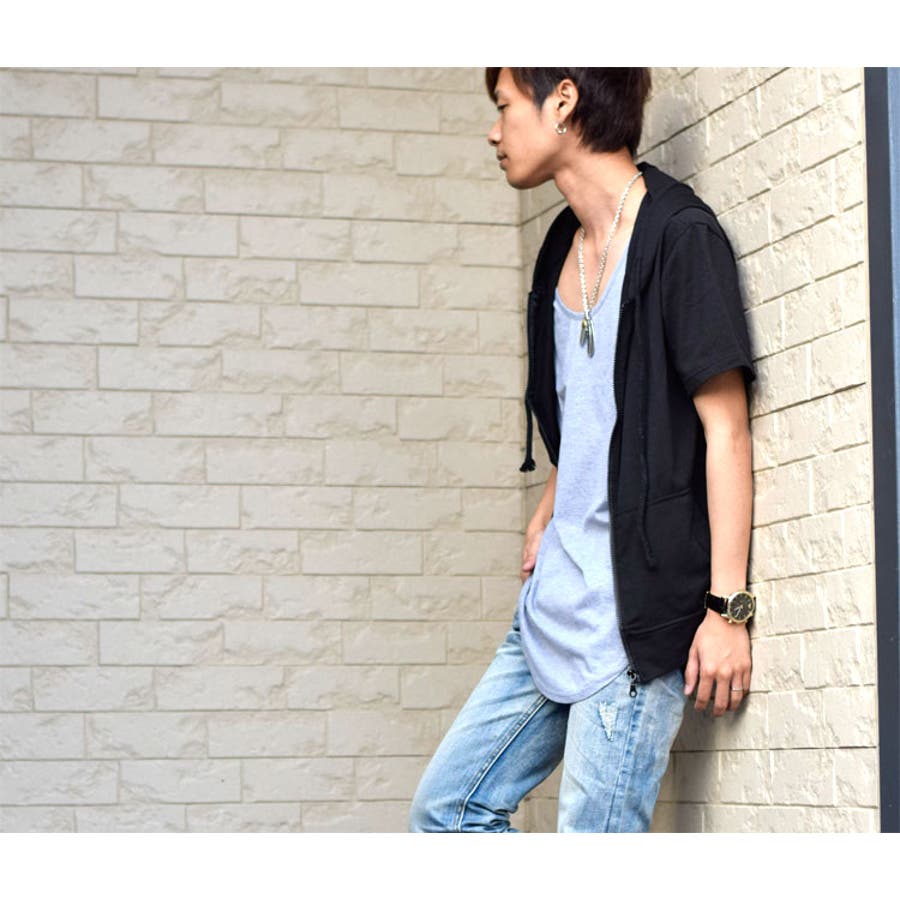 ラウンドカットになっているのでTシャツやパーカーなどと相性抜群!