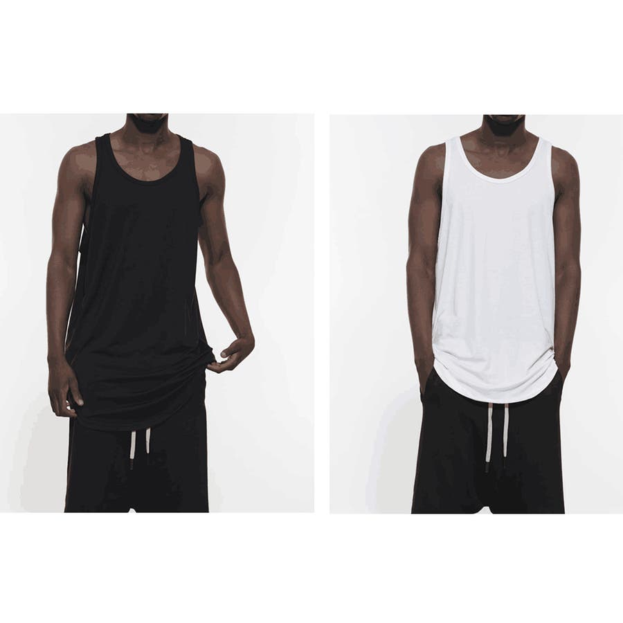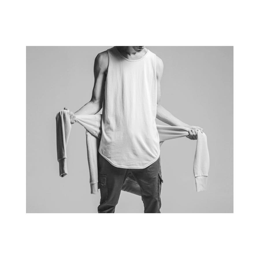 レイヤードやコーディネートにオススメの流行のロング丈タンクトップです。