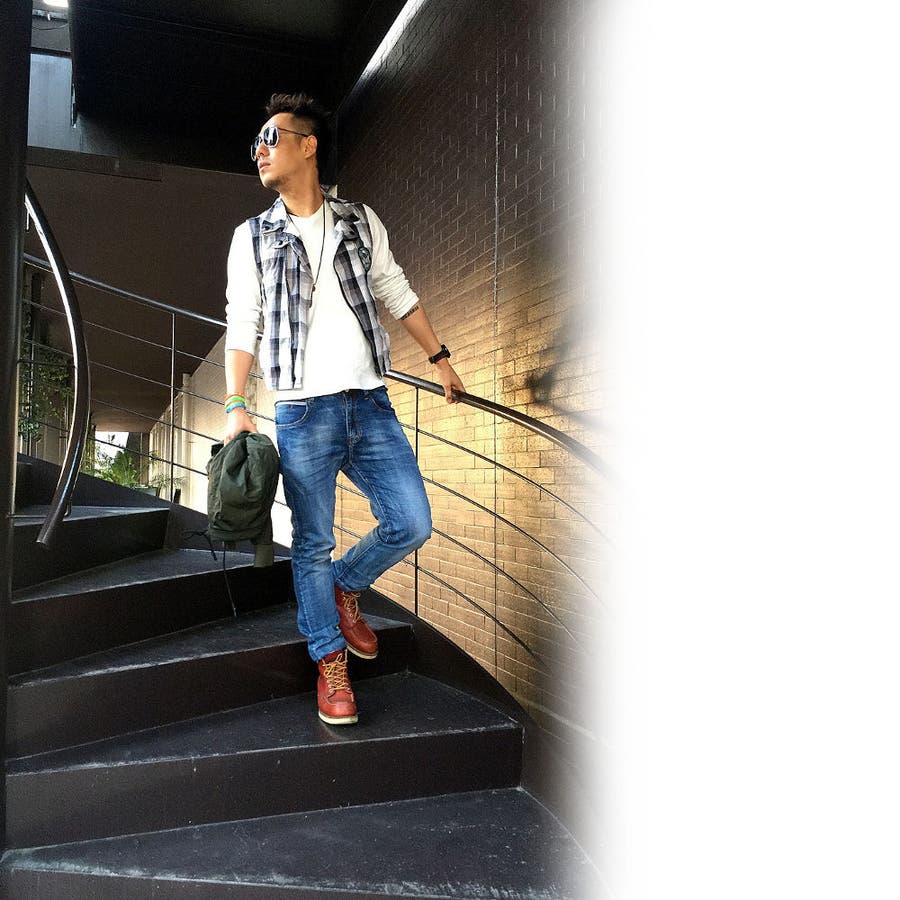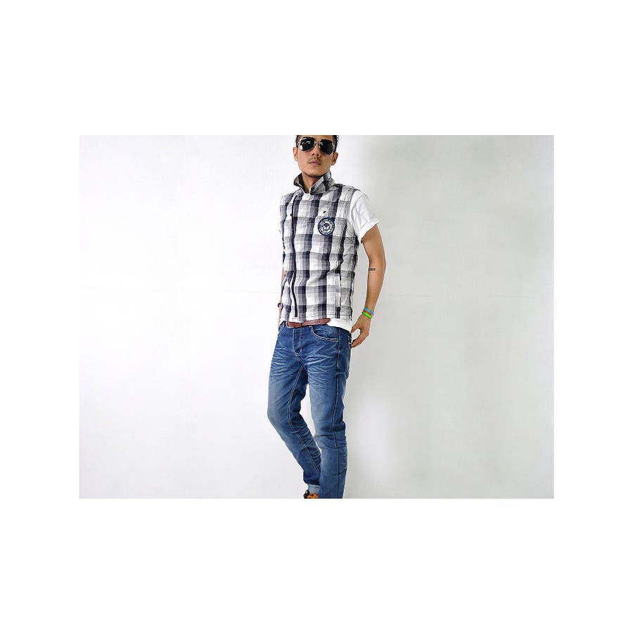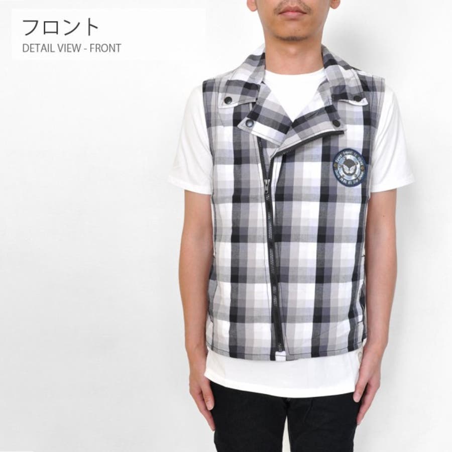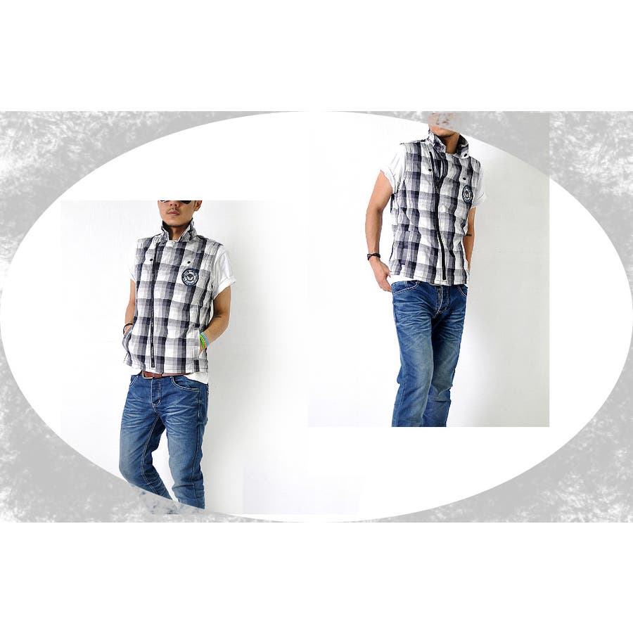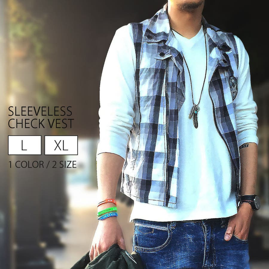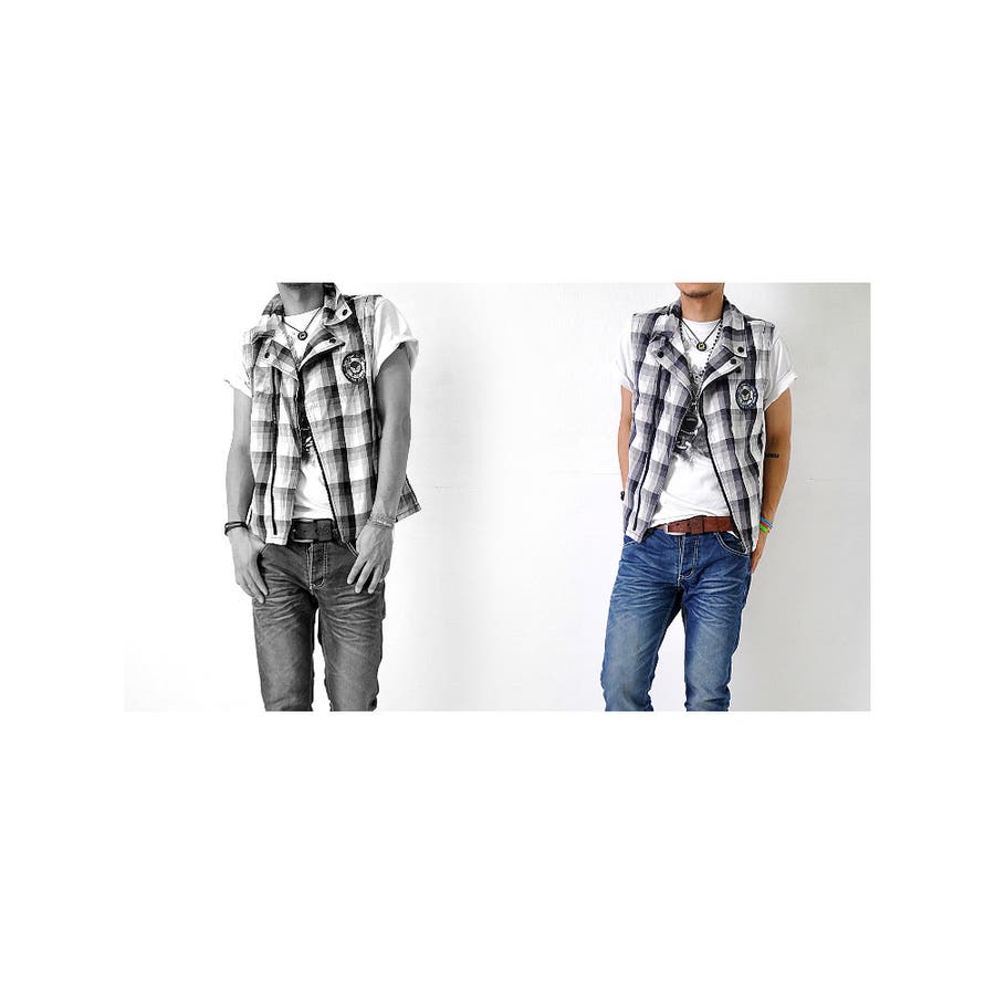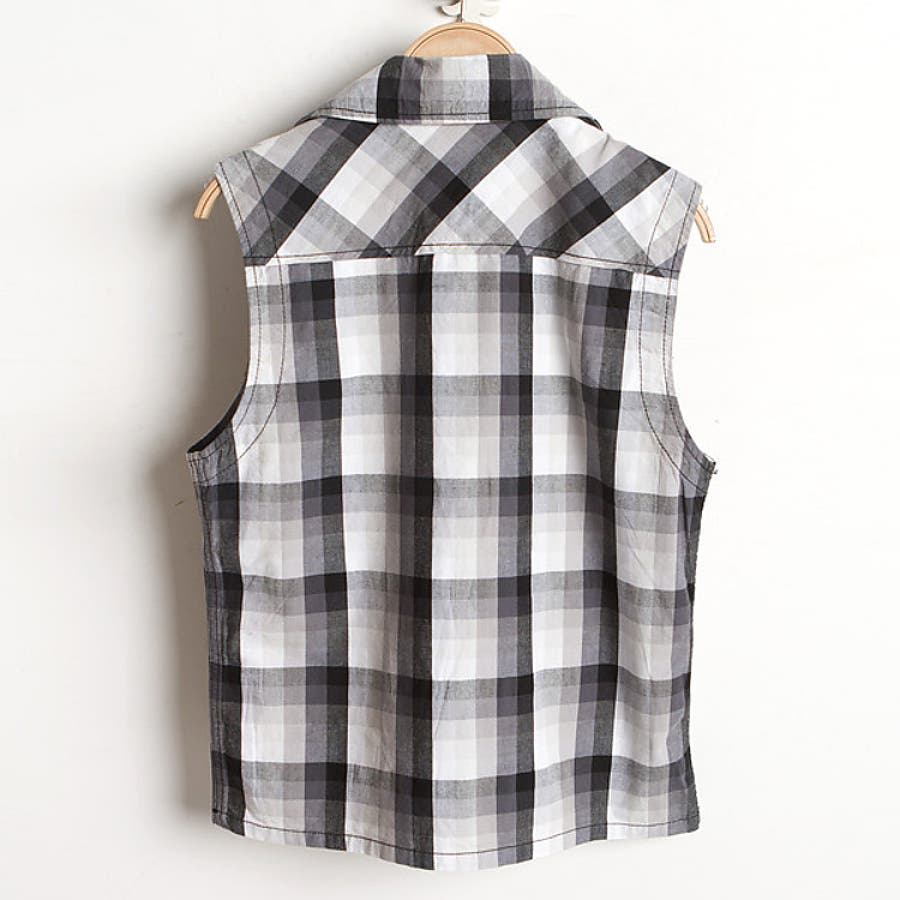 ノースリーブ チェックベスト メンズ トップス シャツ カジュアル #T177