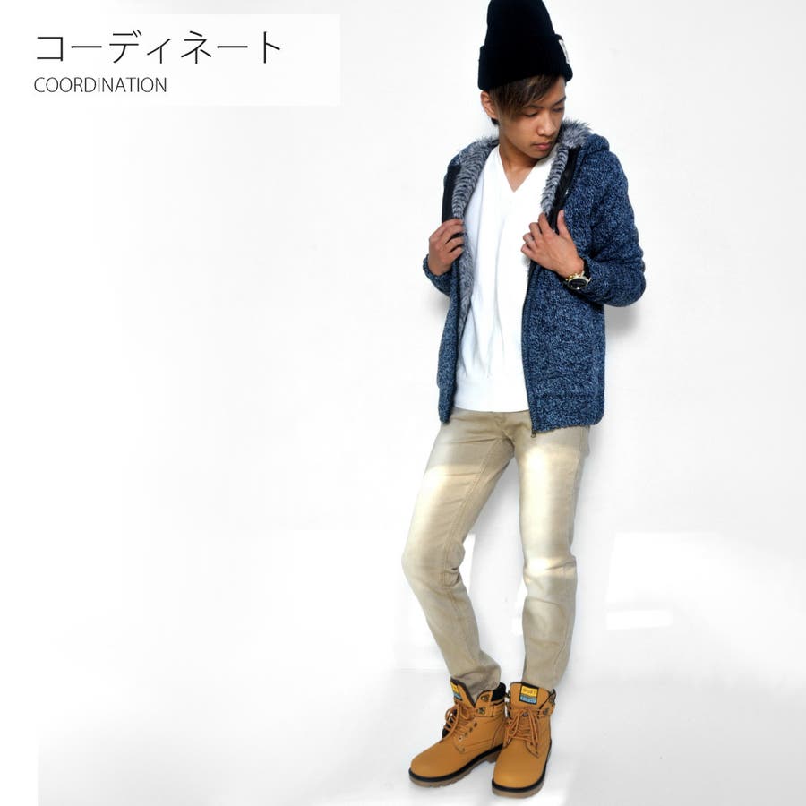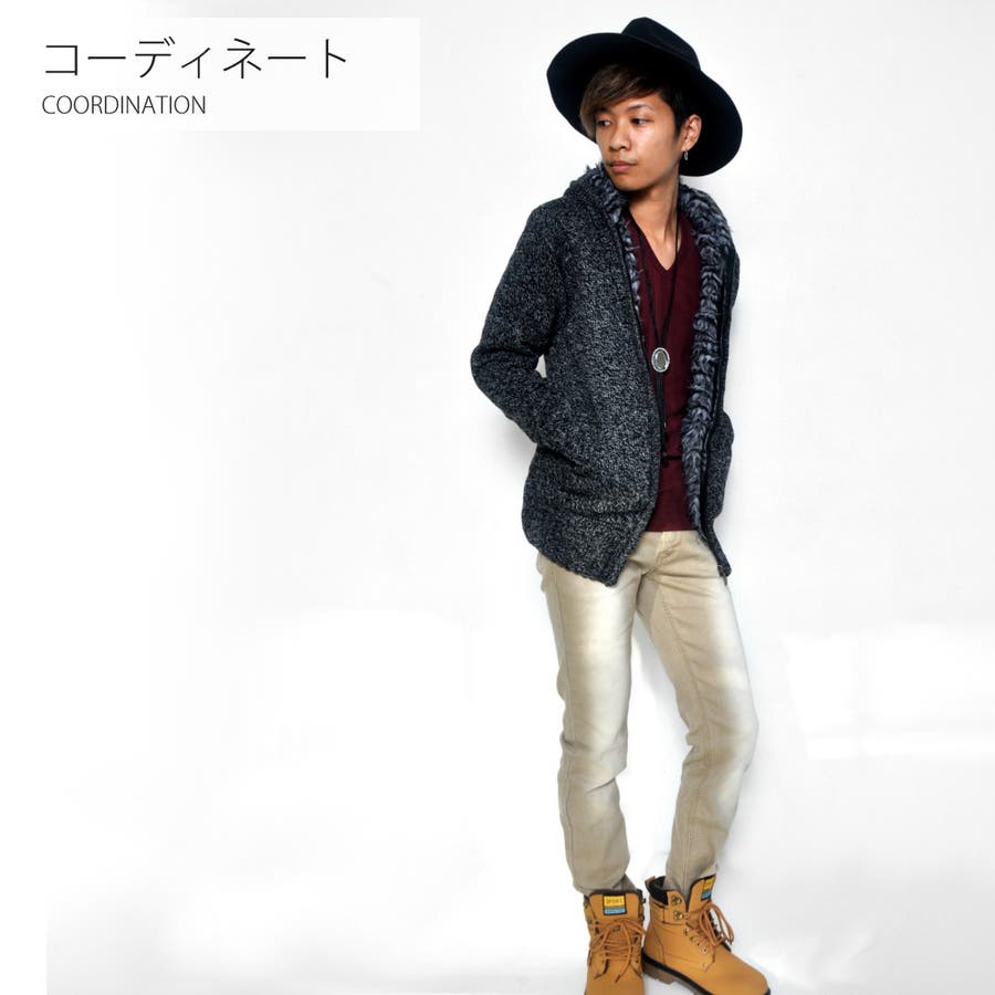 襟元についたボアがふわっとお洒落なシルエットを引き立てます