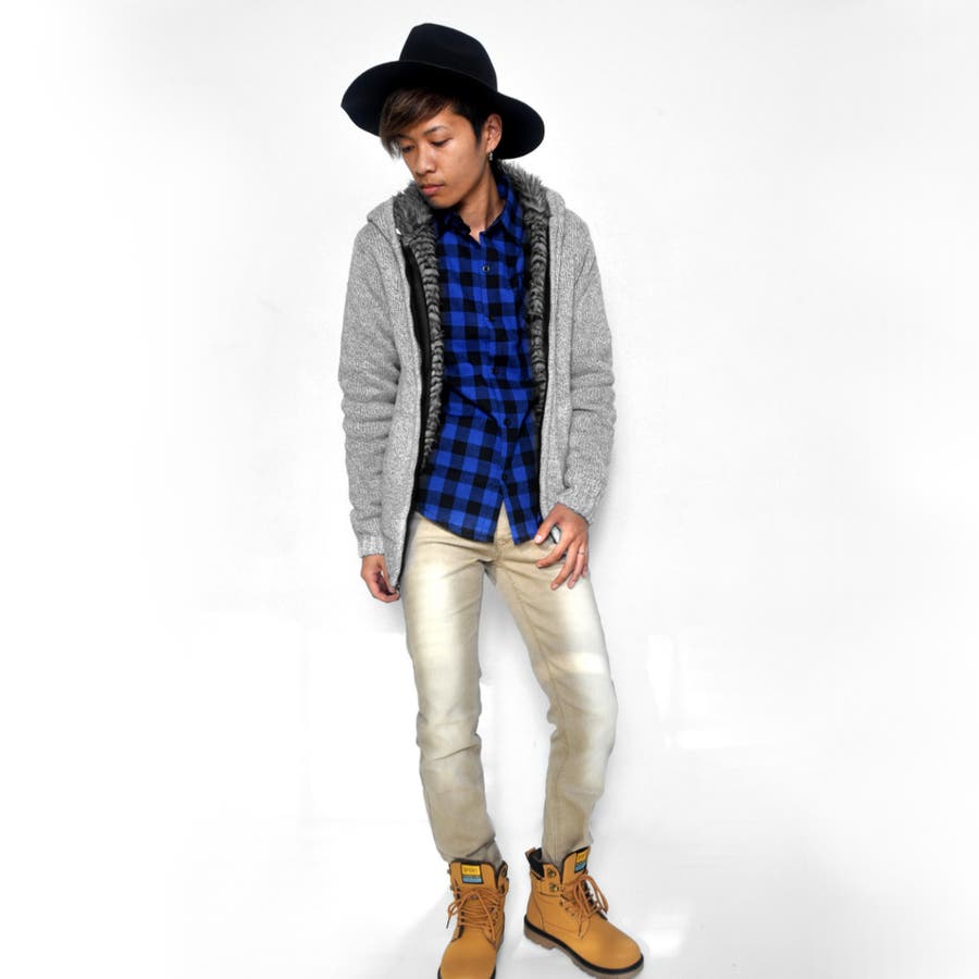 ニットとボアで柔らかく暖かいスマートなフォルムに仕上がっております