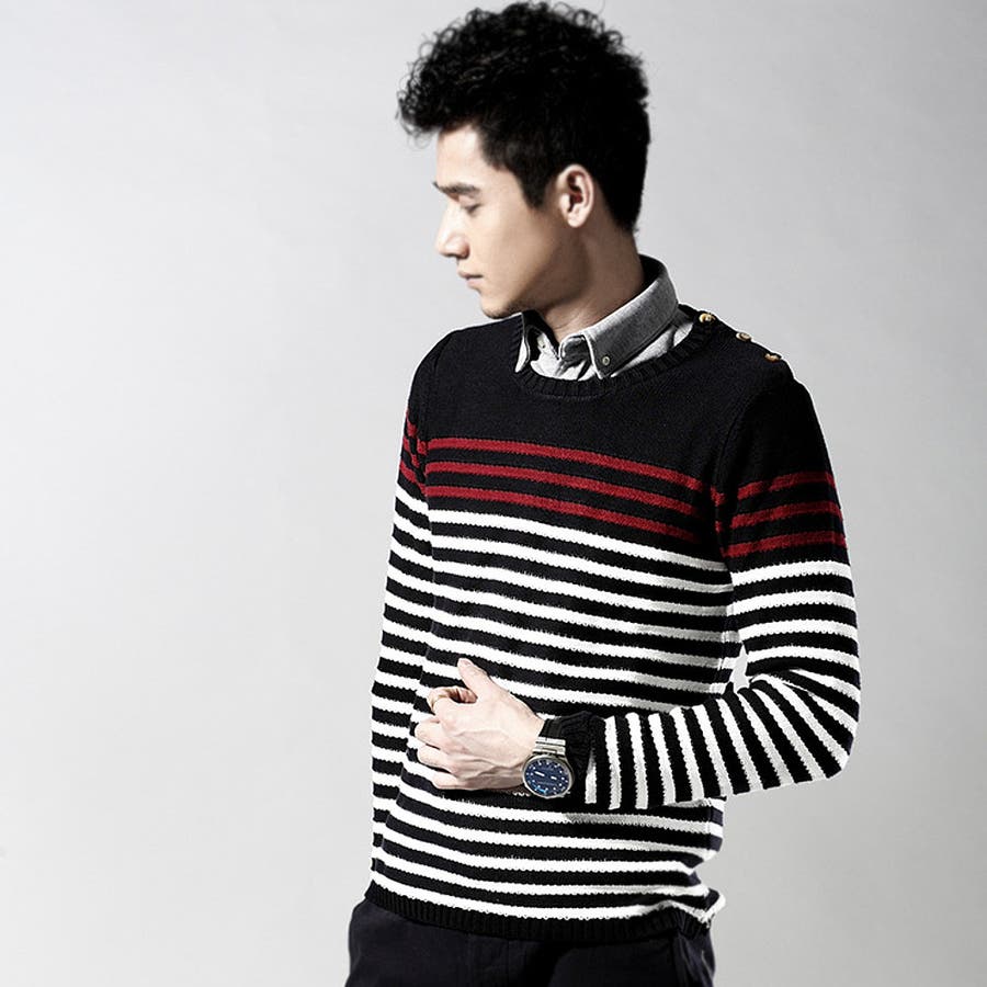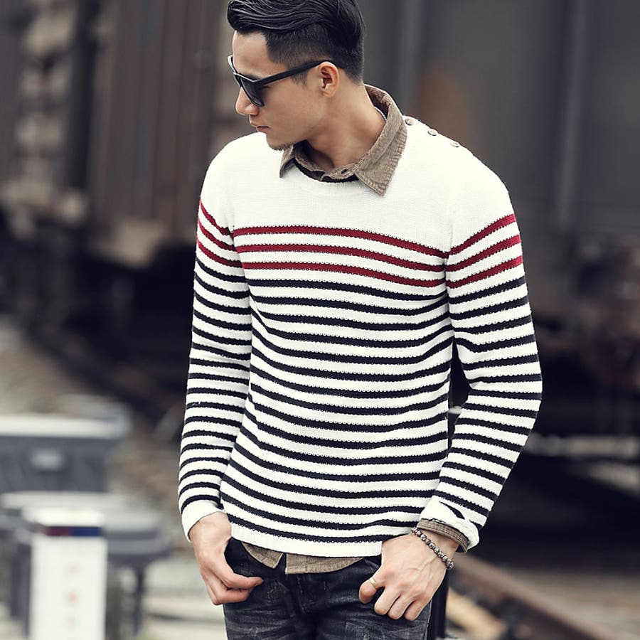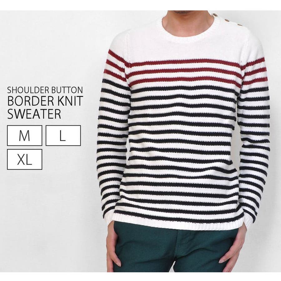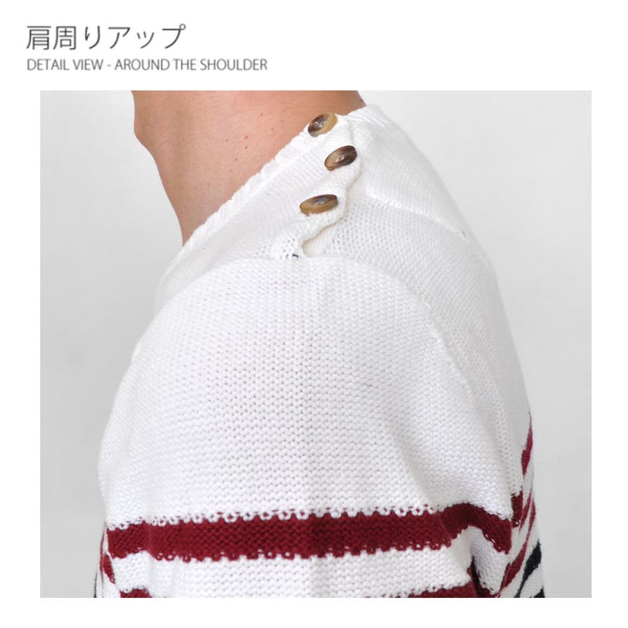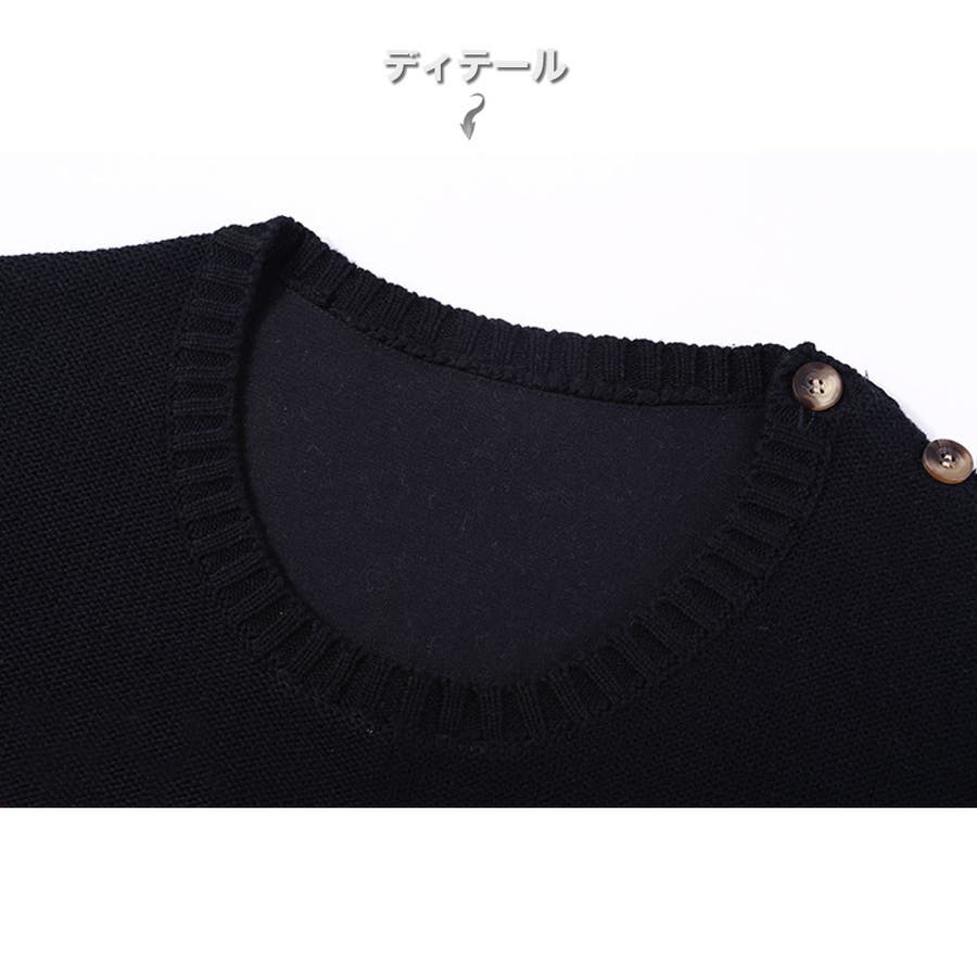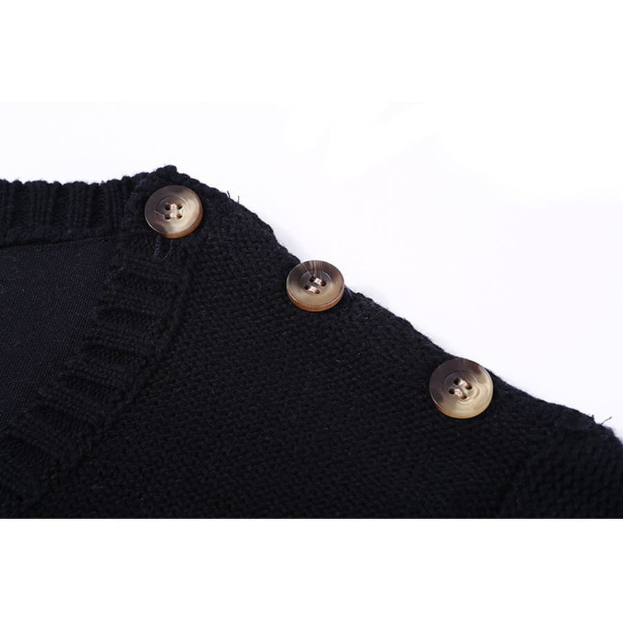 肩にあしらわれたボタンがお洒落なカジュアルニット