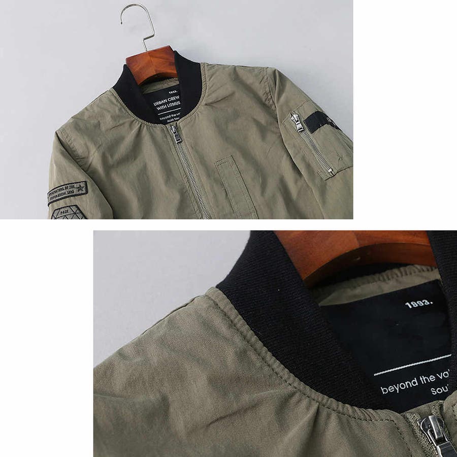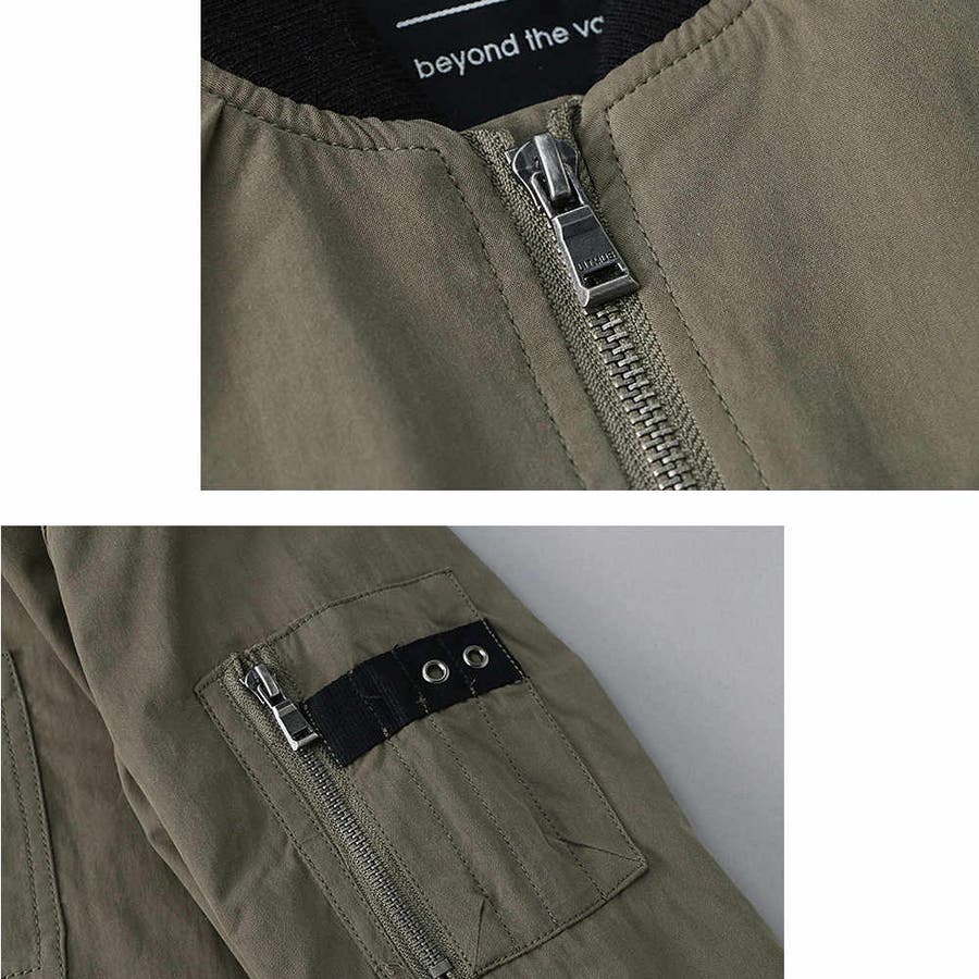 右左腕部分のワッペンや飾りファスナーで