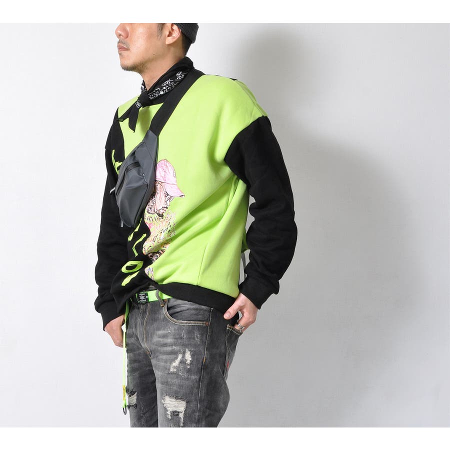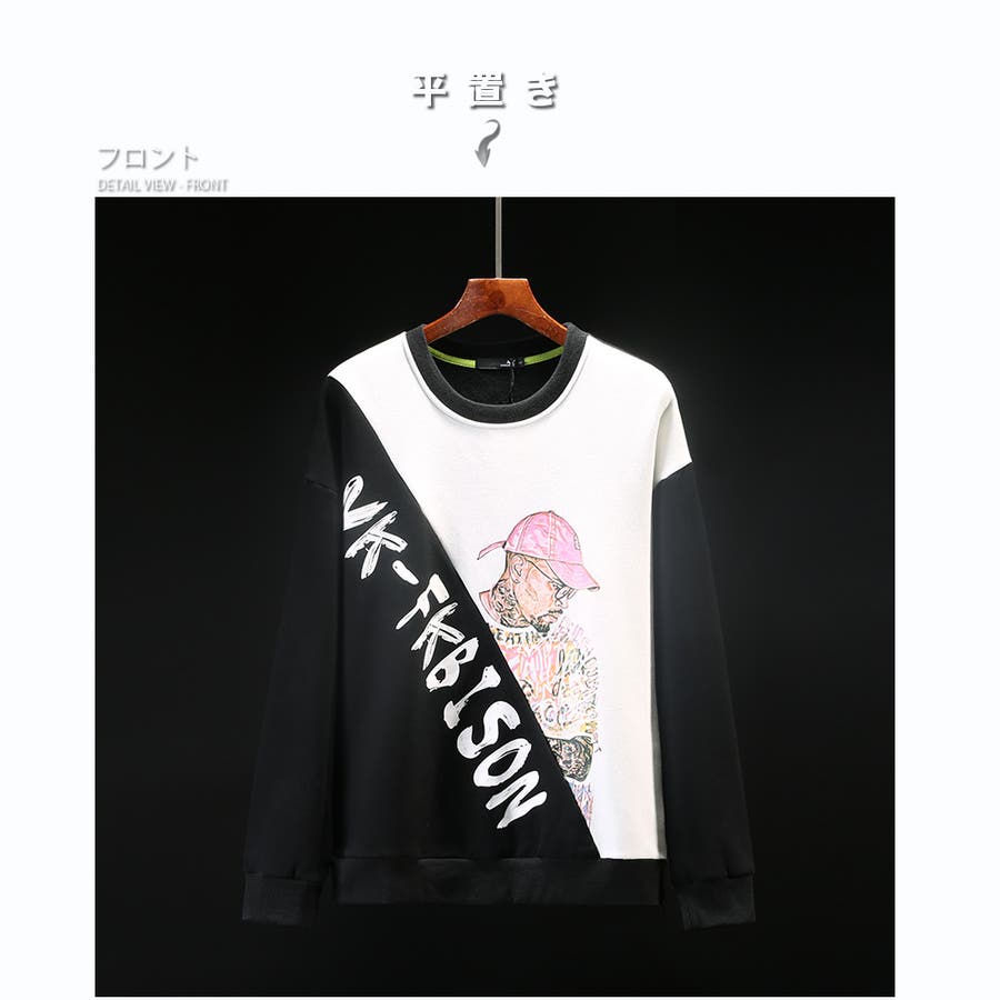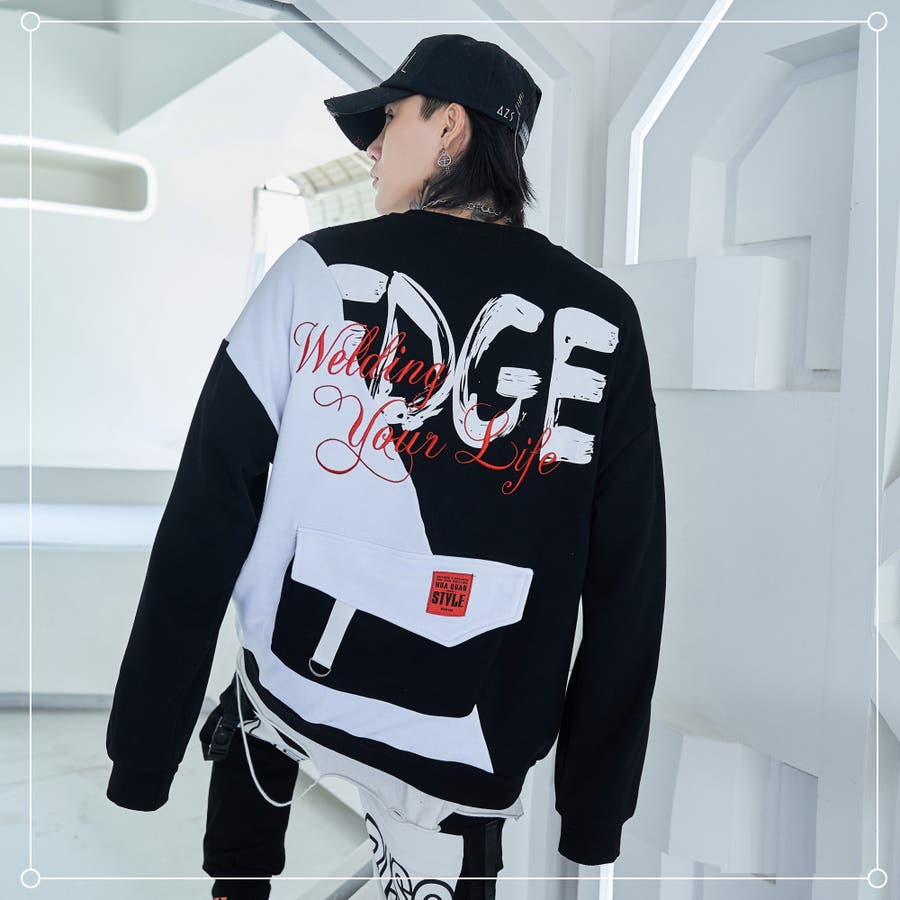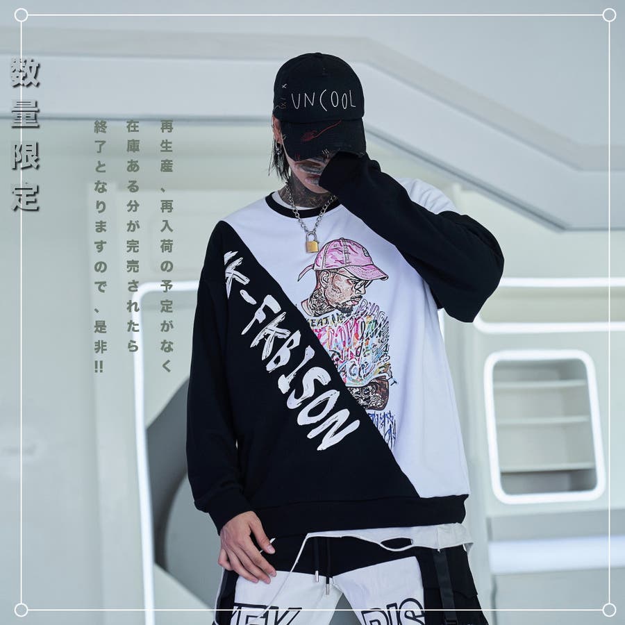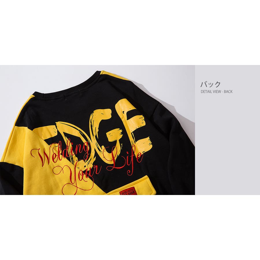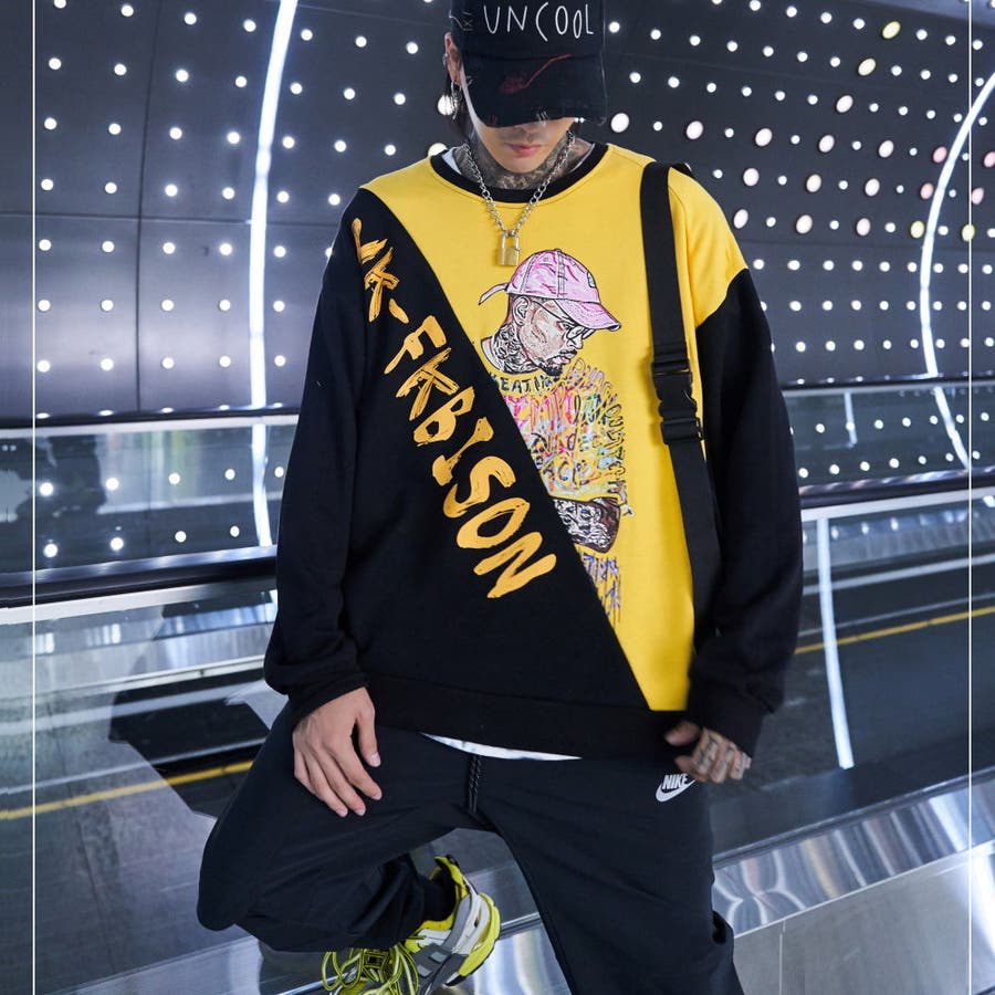フロント・バック共に大きなプリントや刺繍でインパクト大のトレーナー。