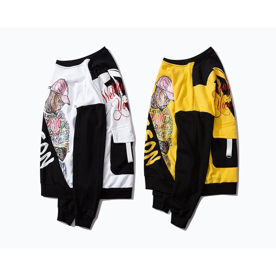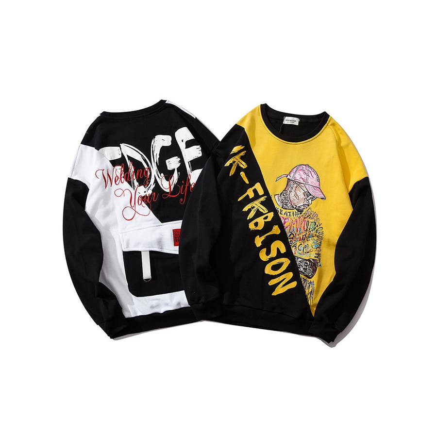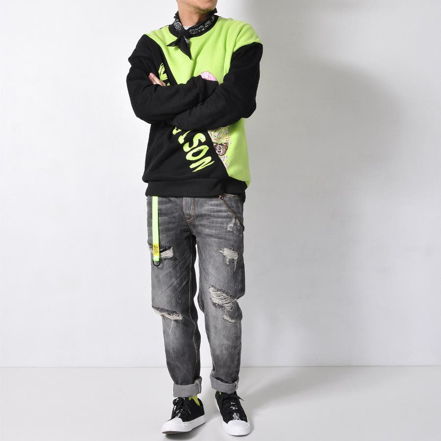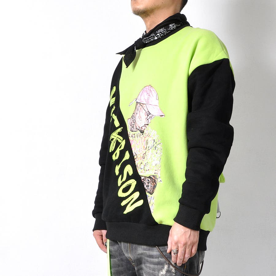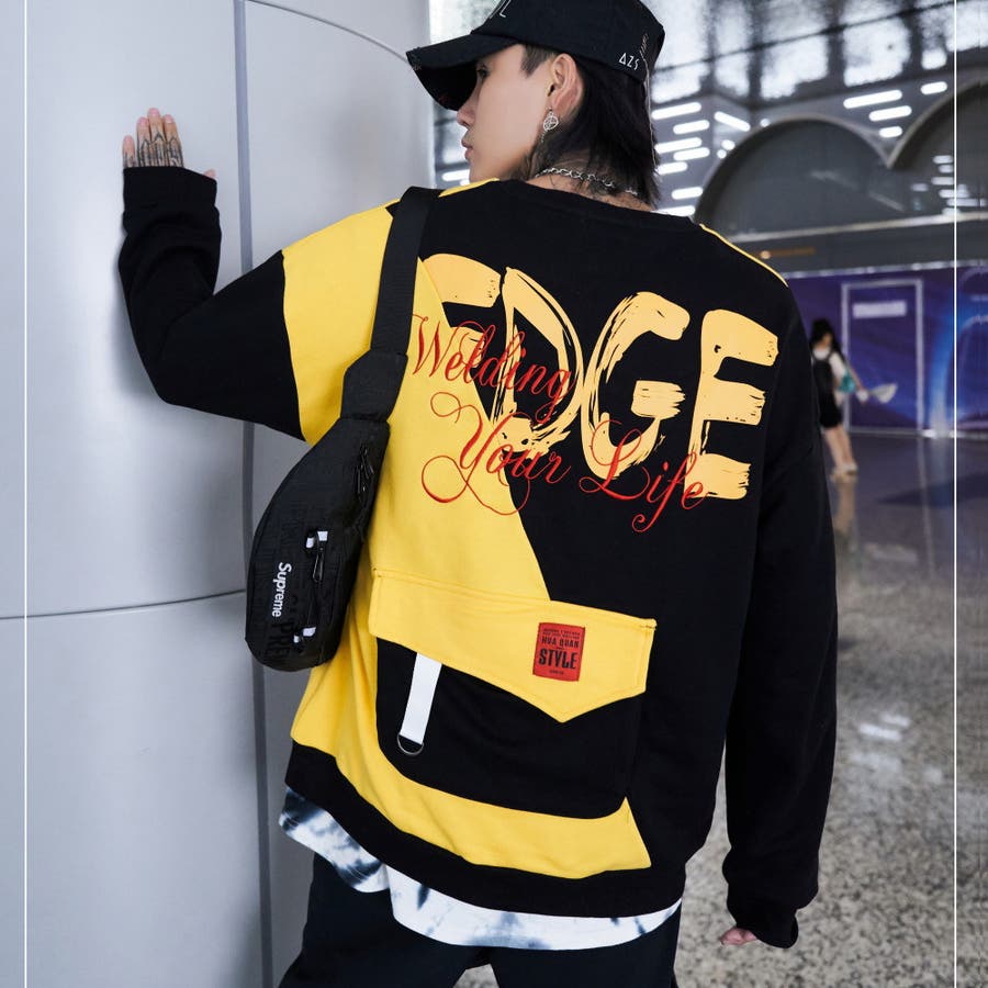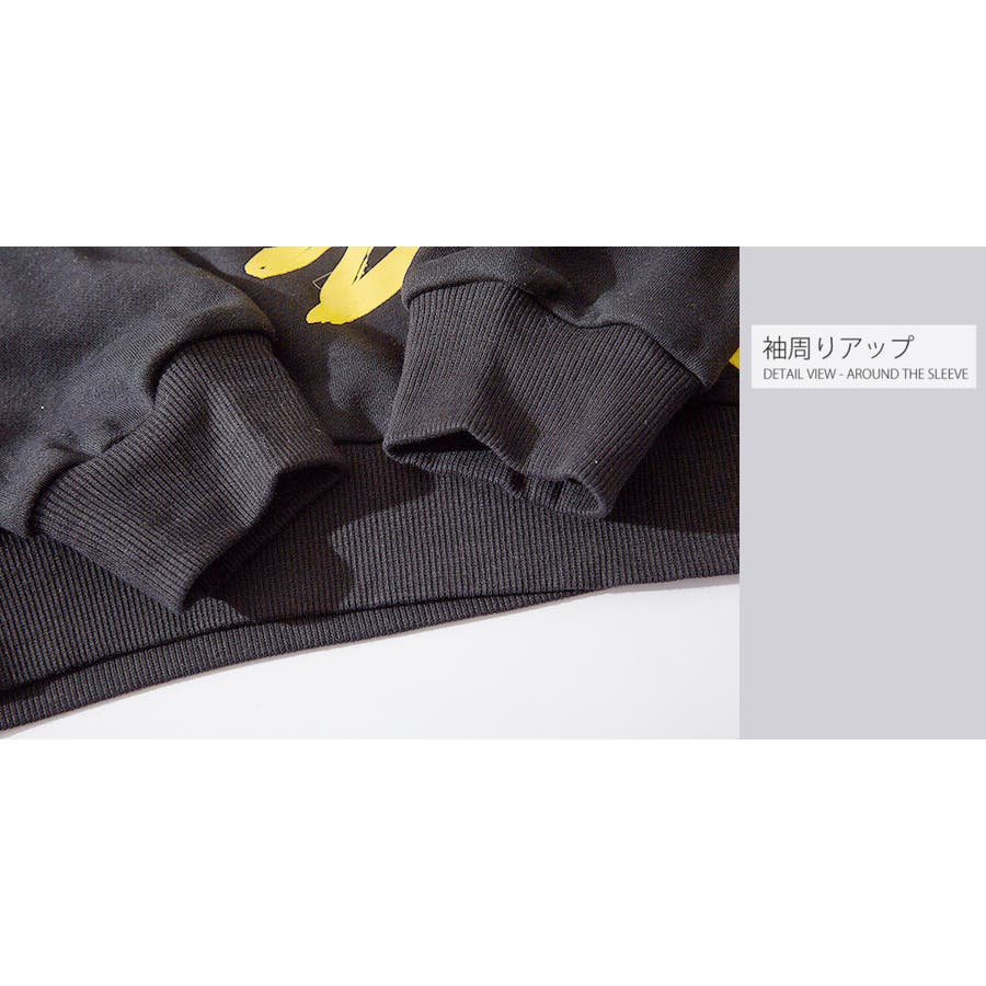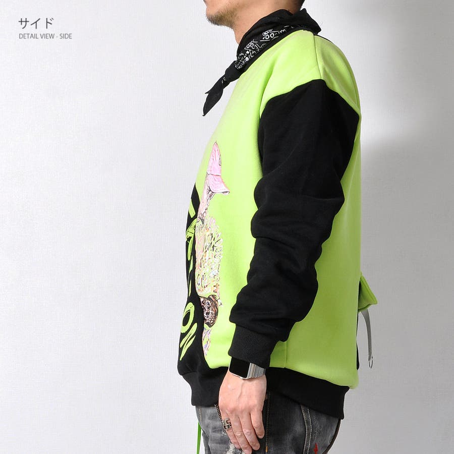 フロント・バック共に大きなプリントや刺繍でインパクト大のトレーナー。