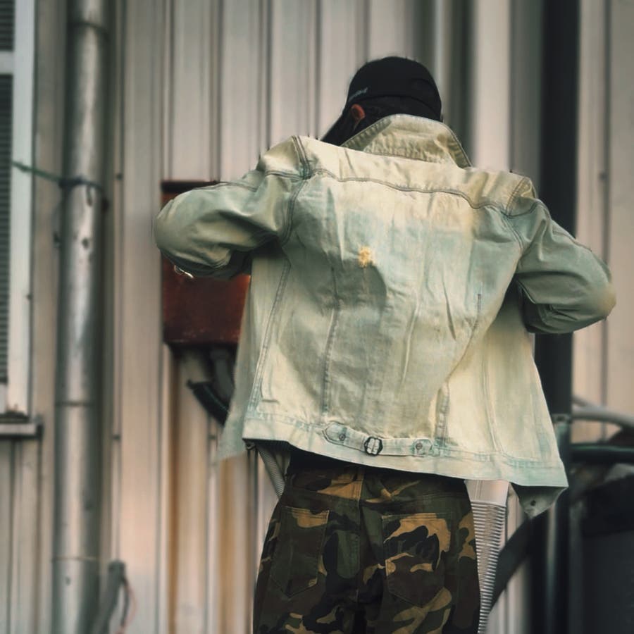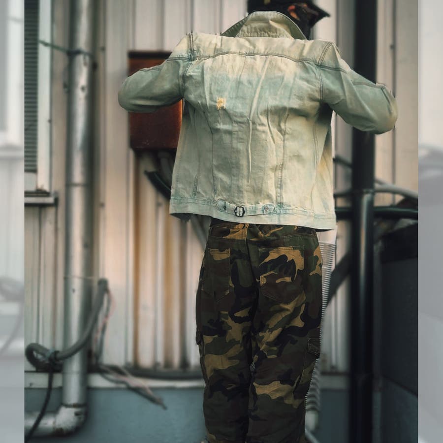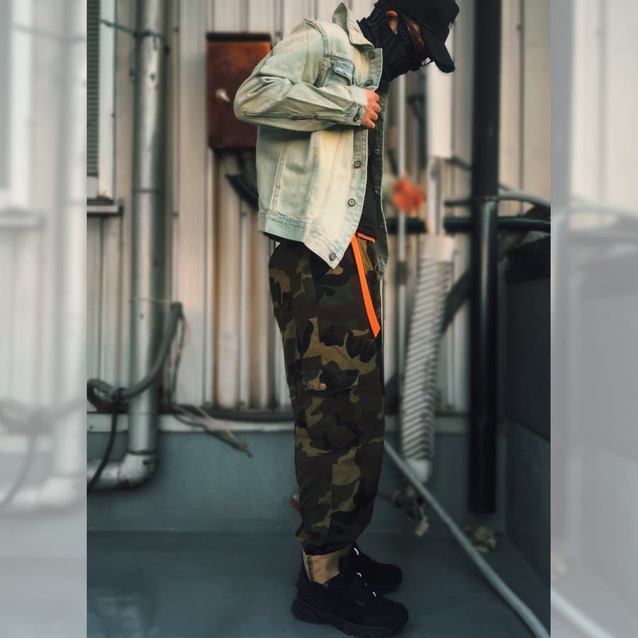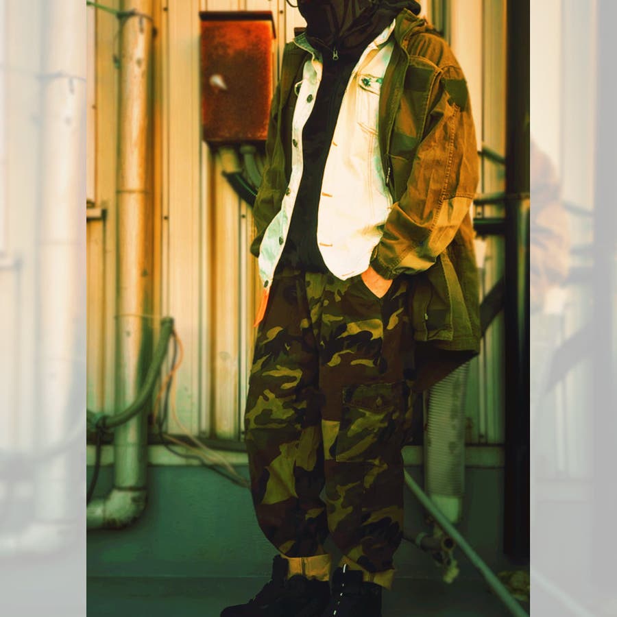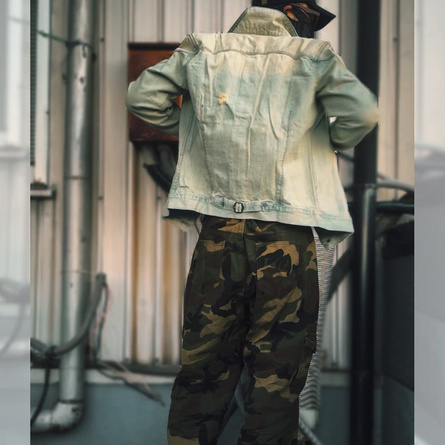 ヴィンテージ感漂うウォッシュ加工と、定番ホワイトと迷彩デニムのデザインが