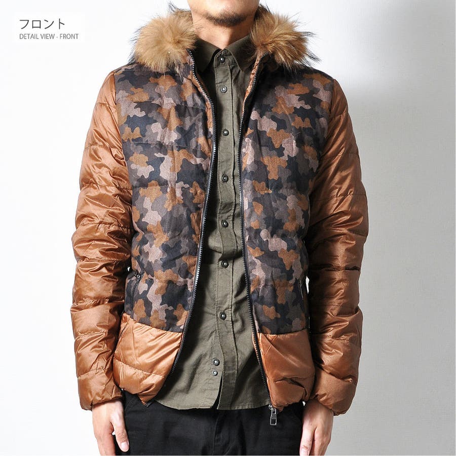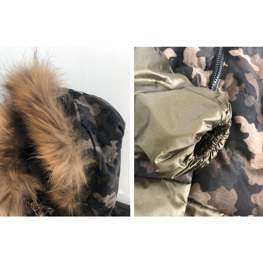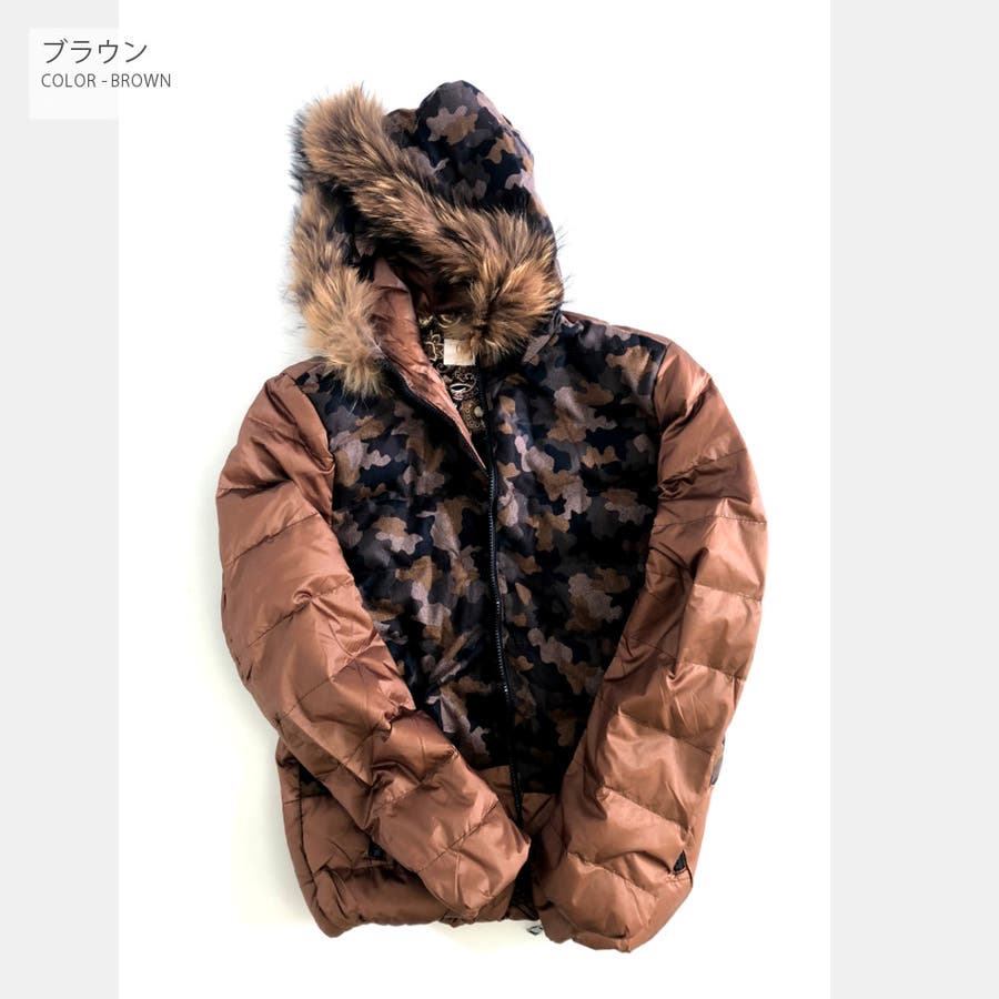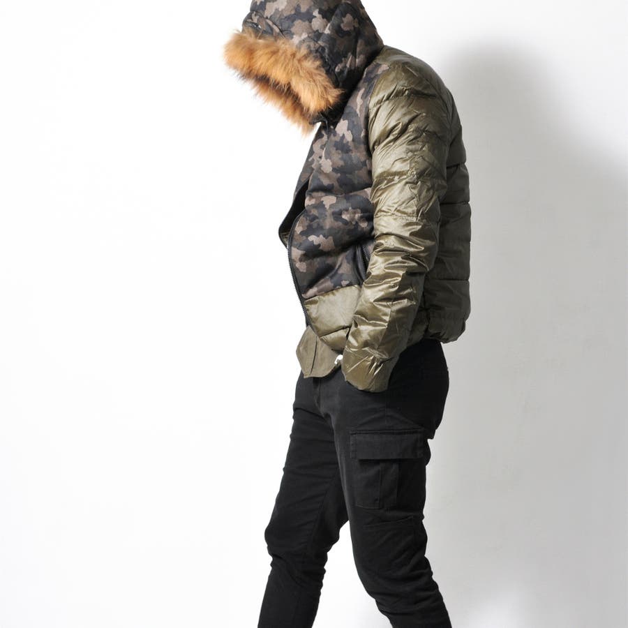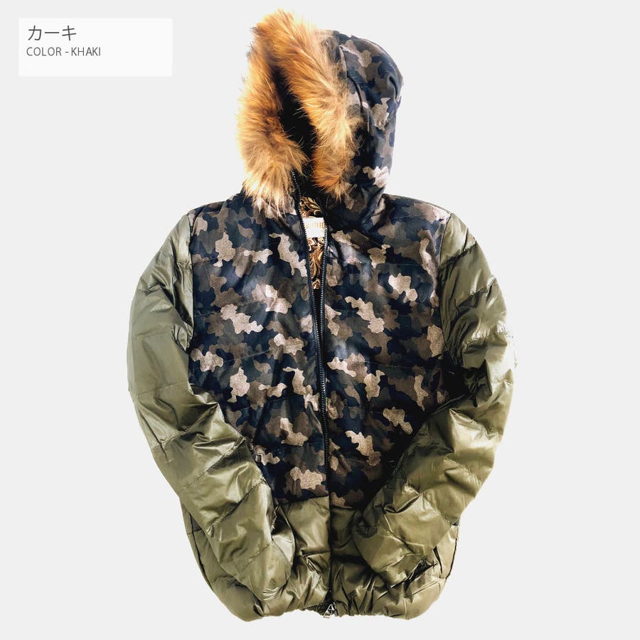 フード付リアルファー 迷彩ダウンジャケット メンズ