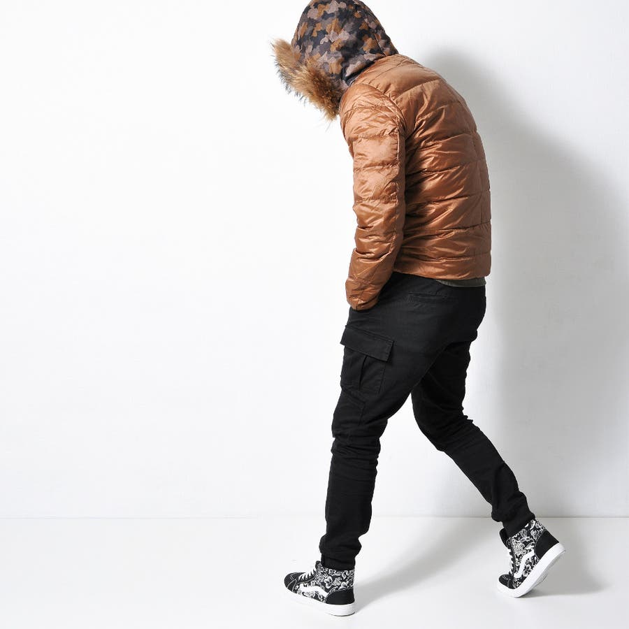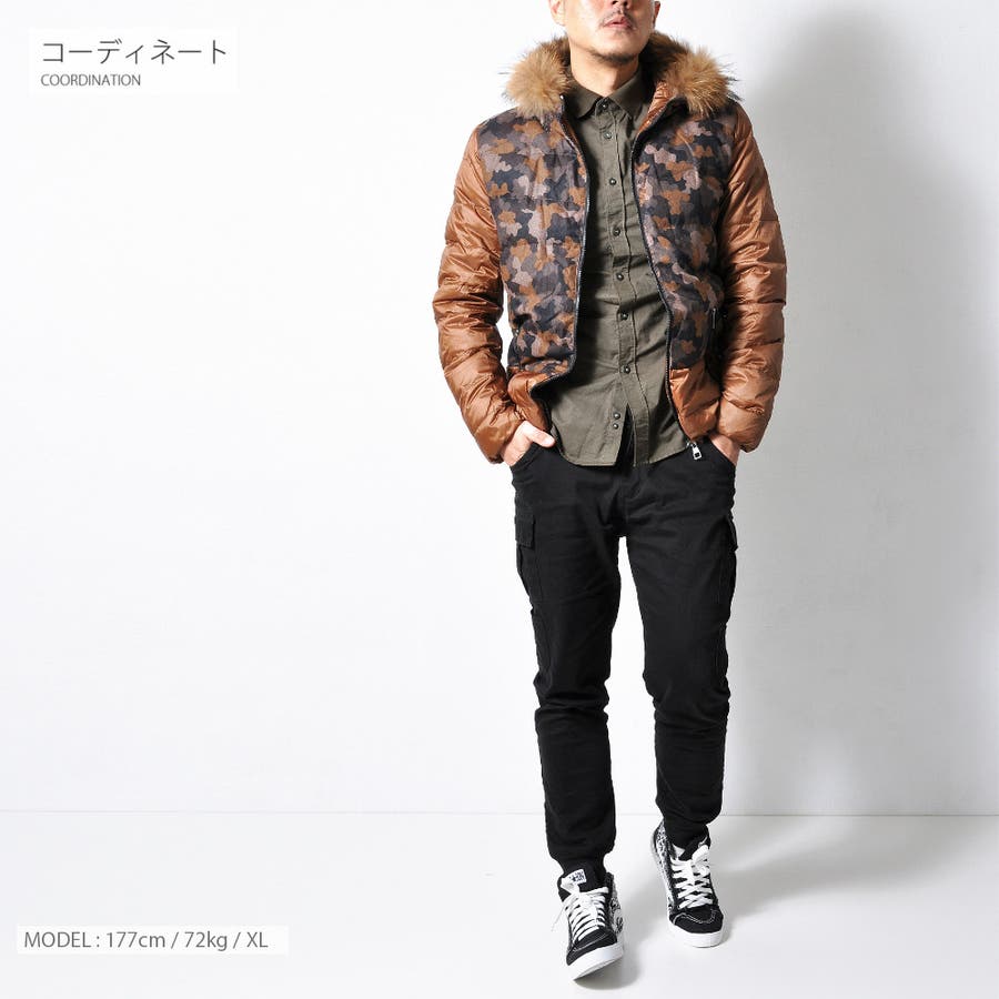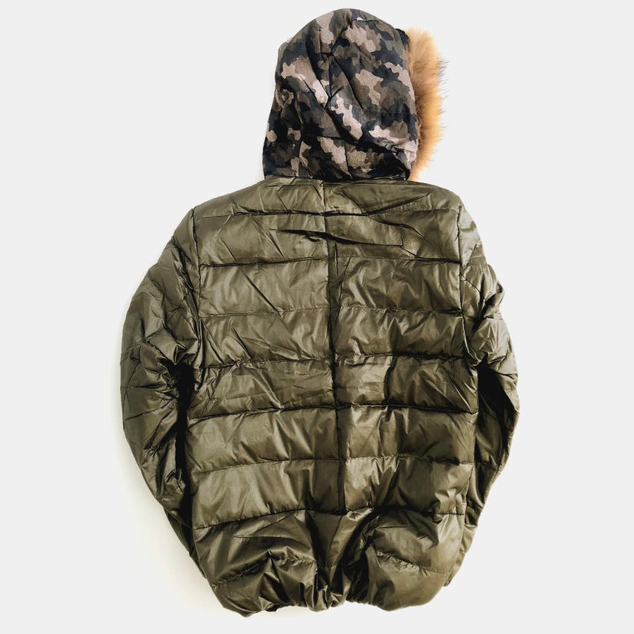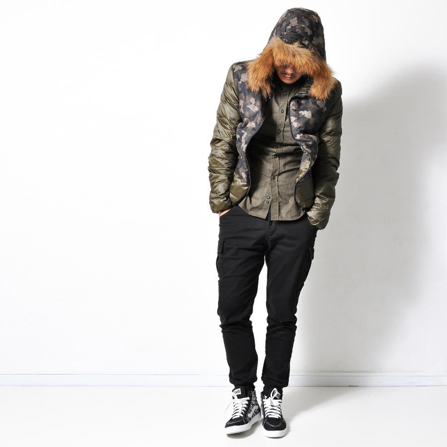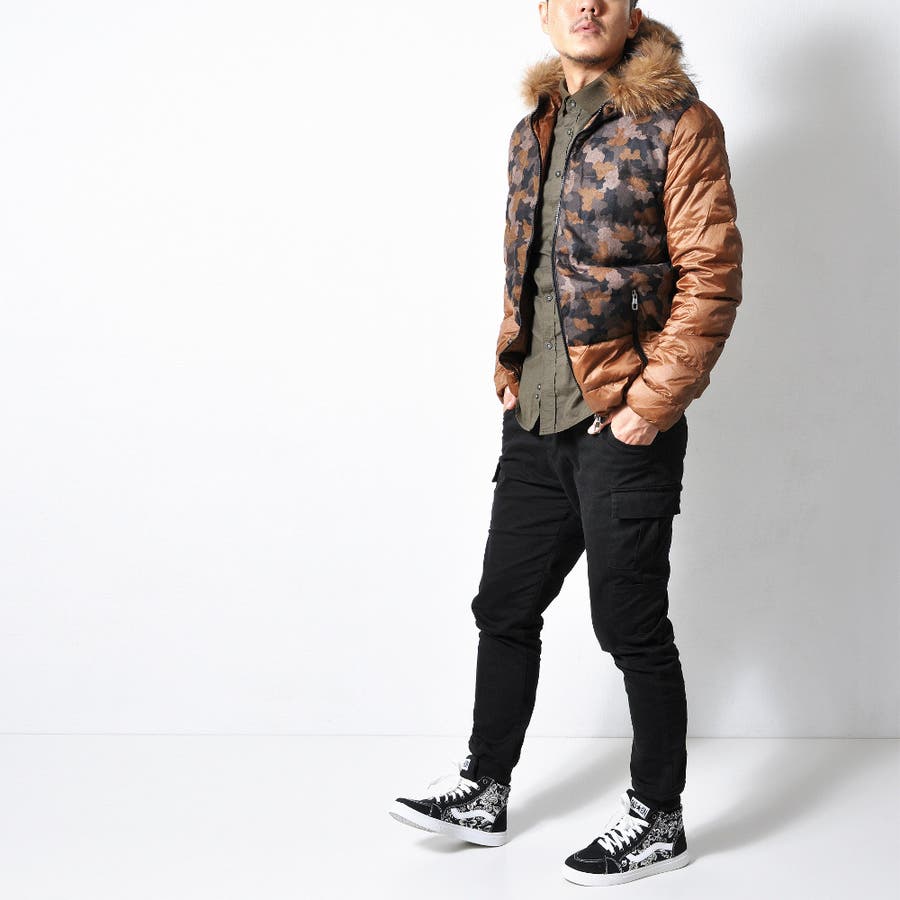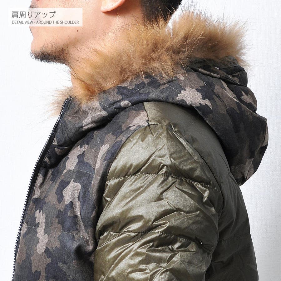 フード付リアルファー 迷彩ダウンジャケット メンズ