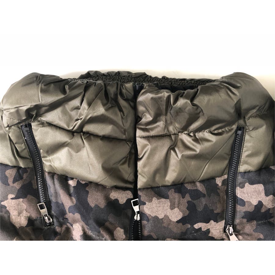 前身頃とフード部分がカモフラージュ柄の切り返しとなっています。