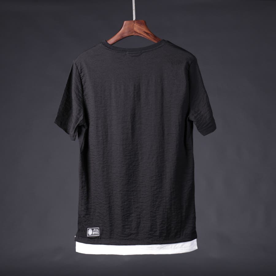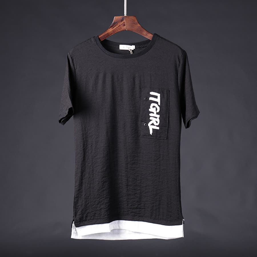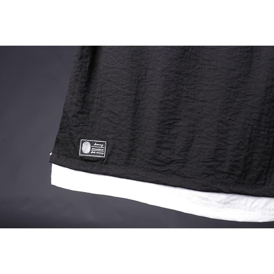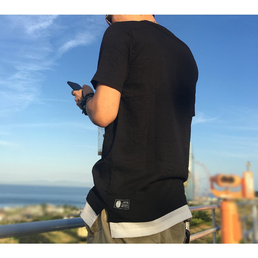 裾がフェイクレイヤードの仕立てで、あたかもイナンナーシャツを