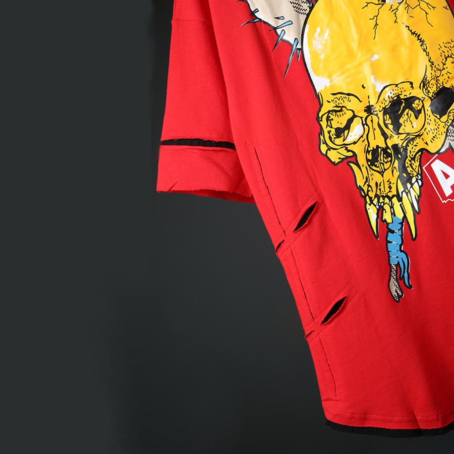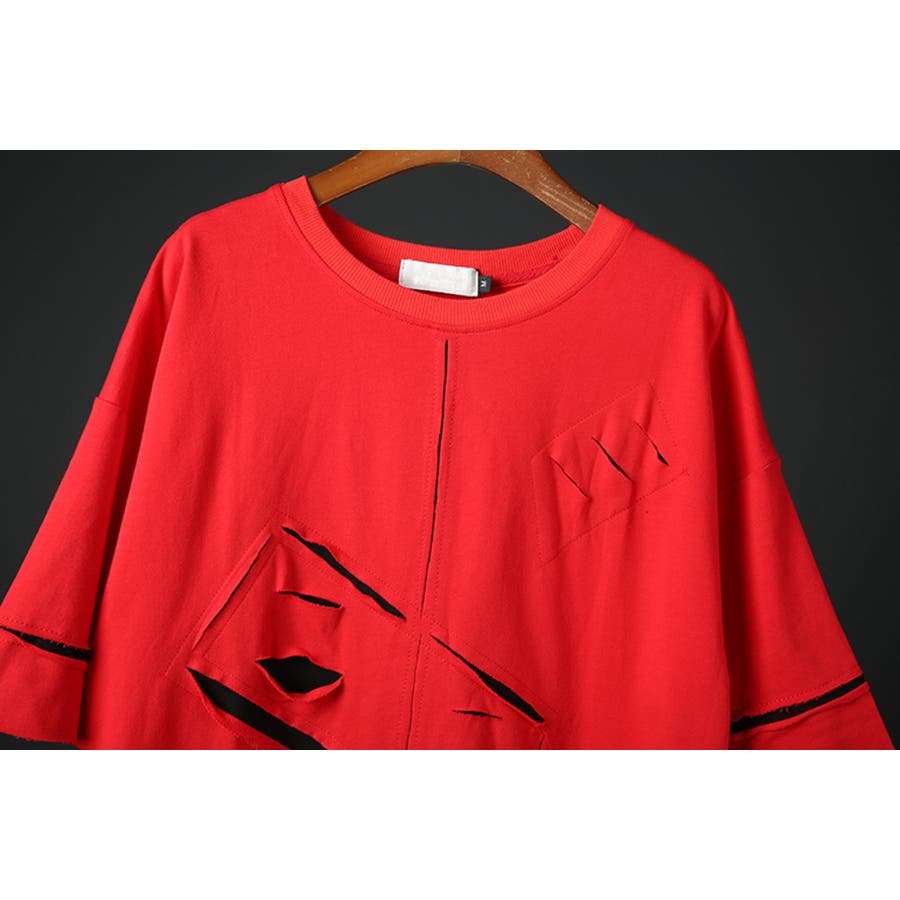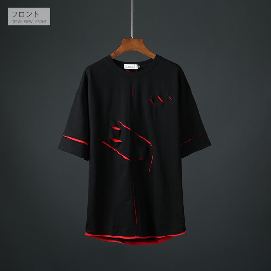 ナイフで切り裂かれたようなダメージ加工を施した半袖Tシャツ
