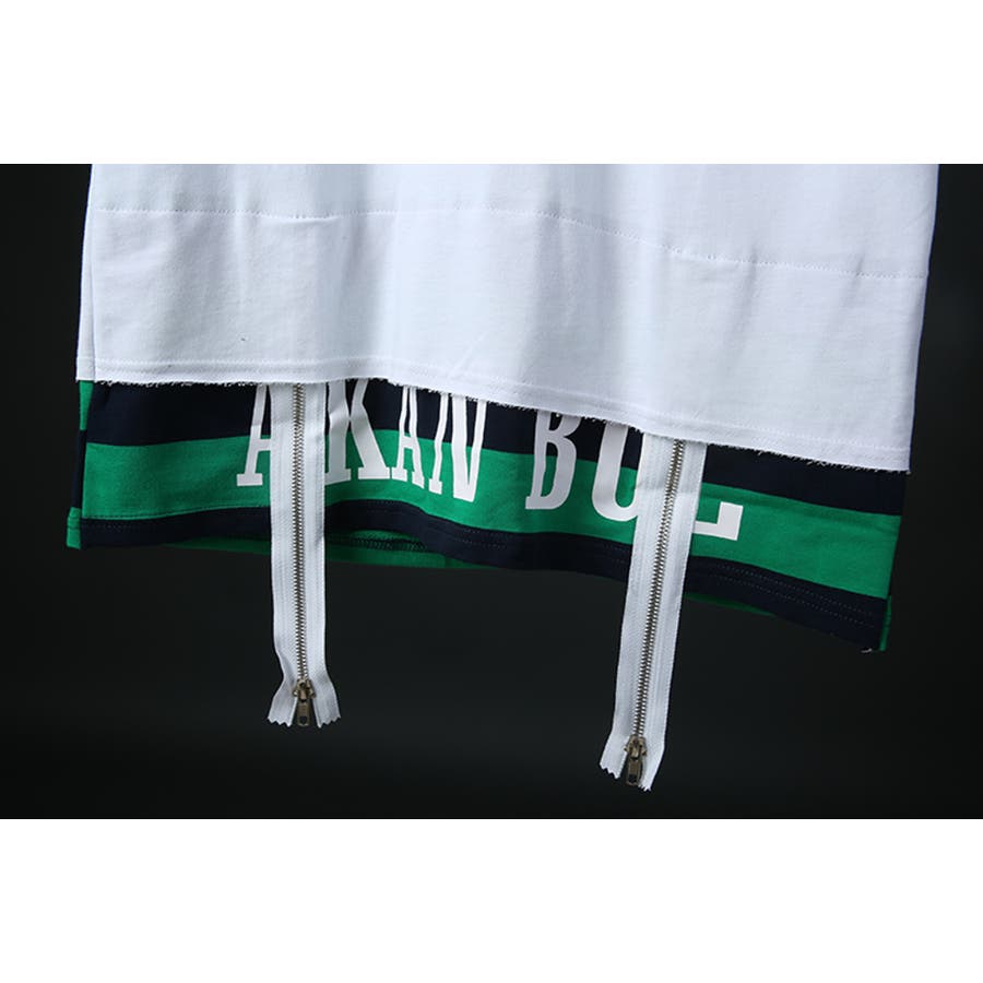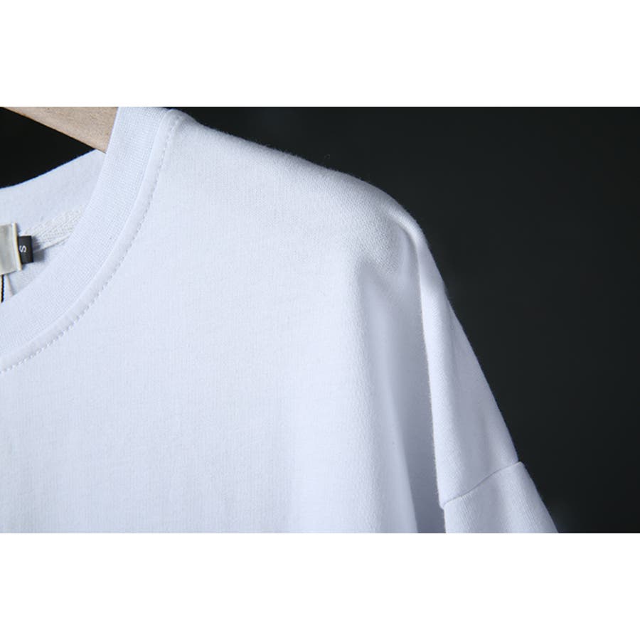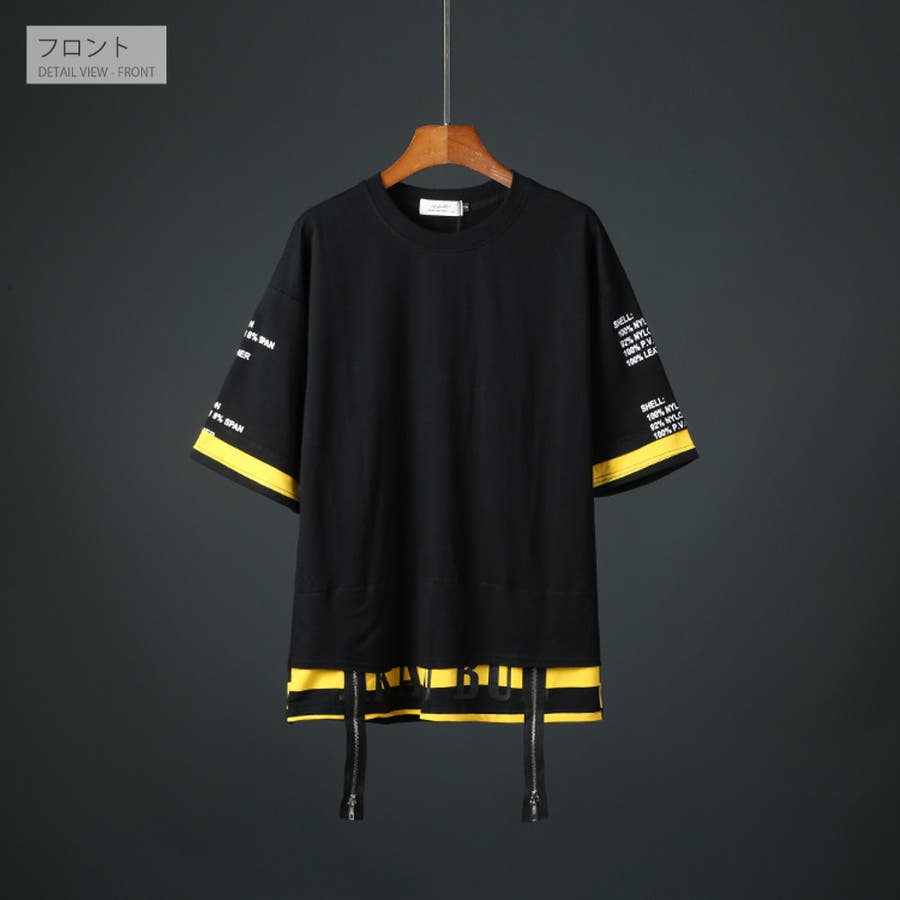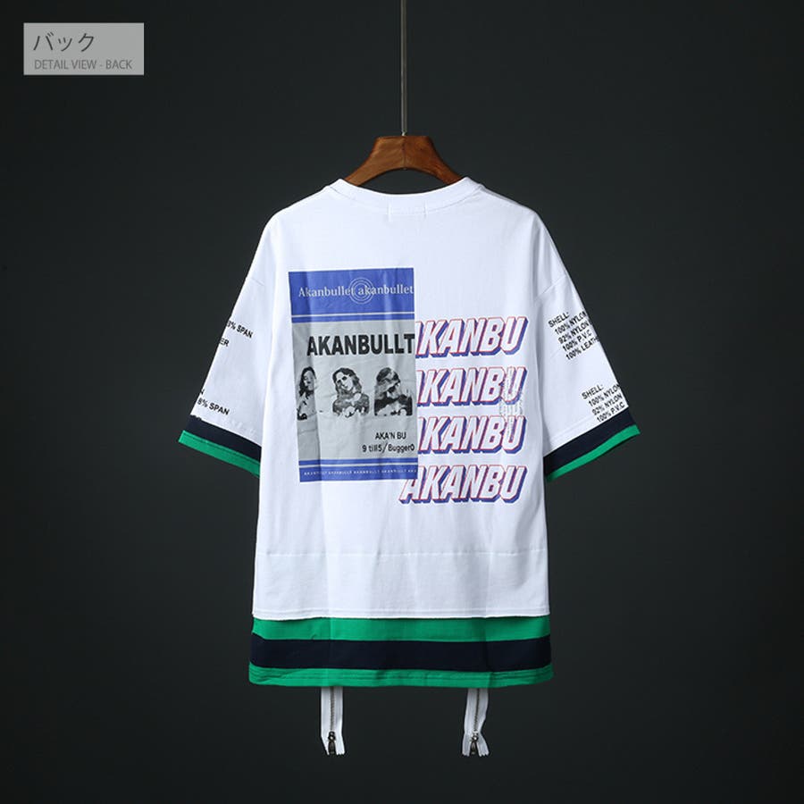 肩が落ちるデザインのバックプリント/FレイヤードTシャツ