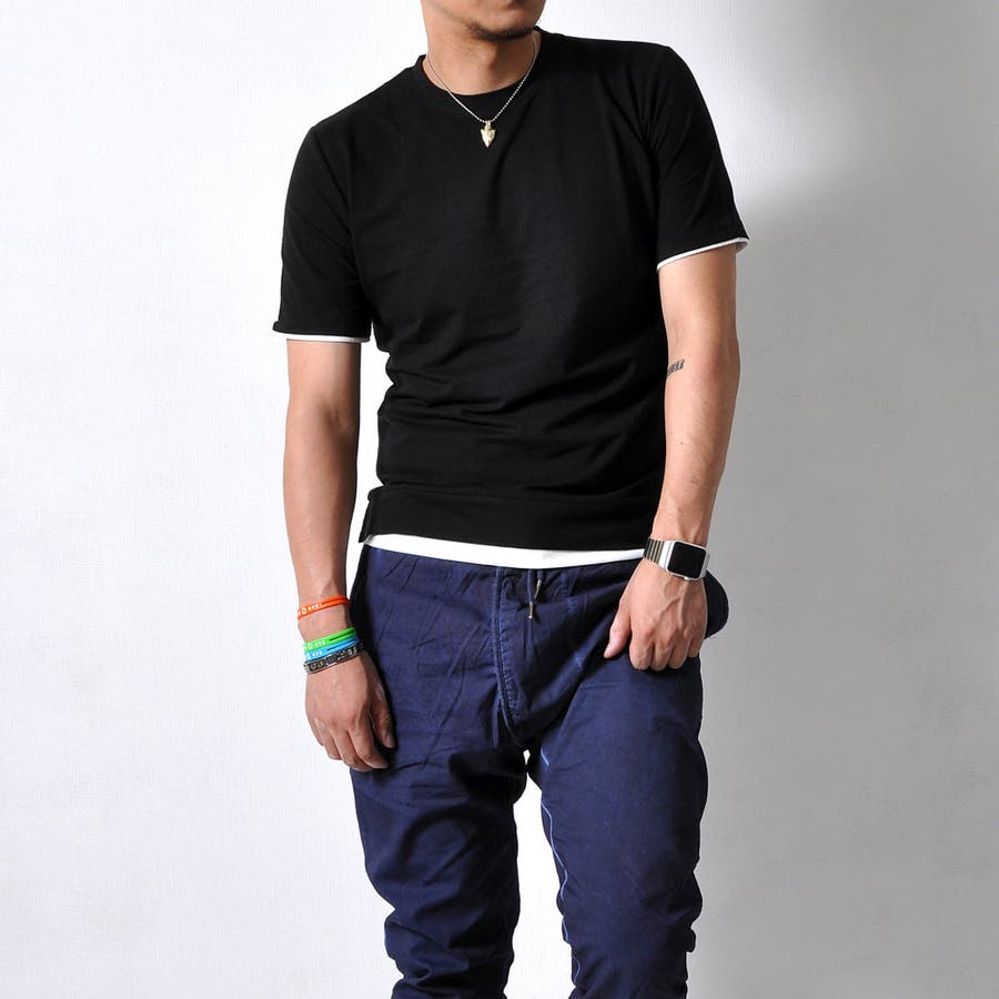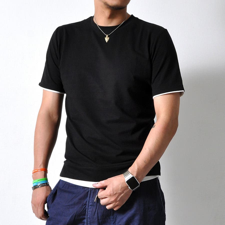 ベーシックなカラー展開のフェイクレイヤードTシャツ