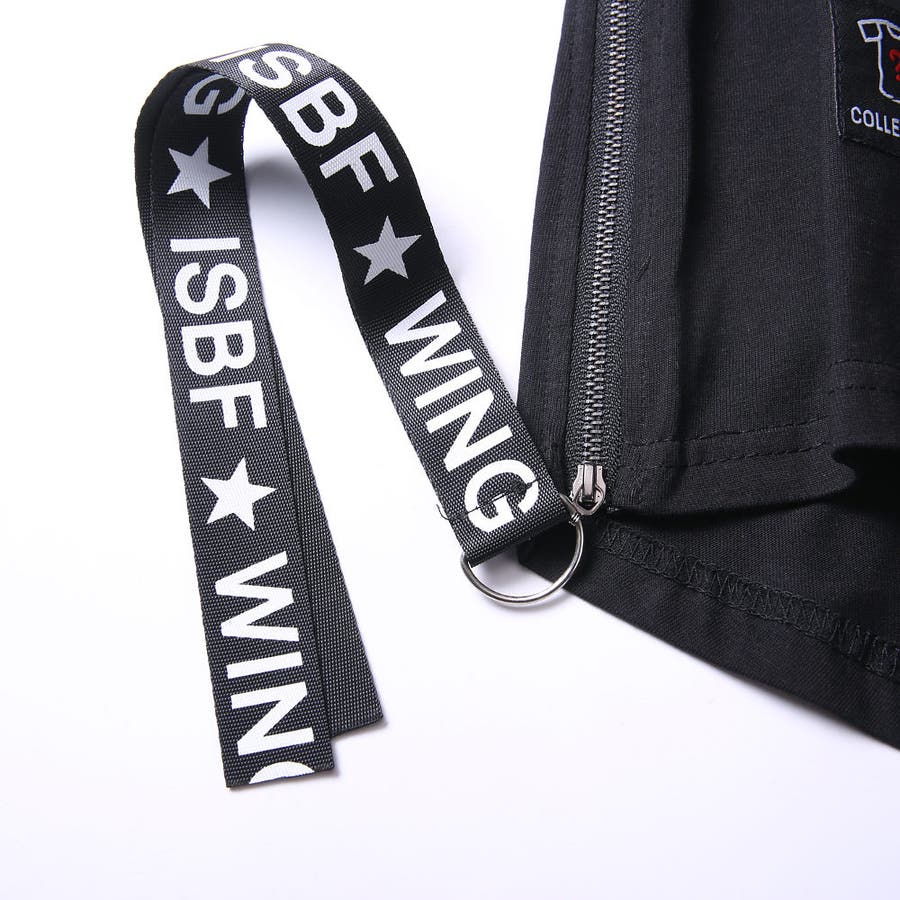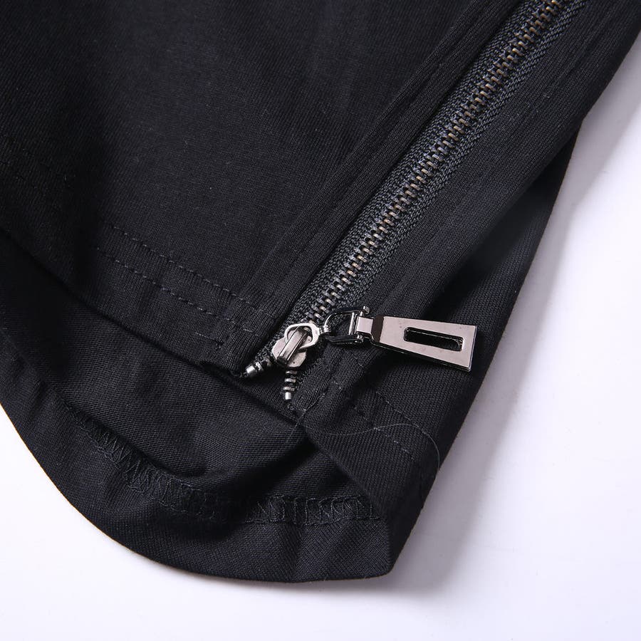 無地デザインがクールな印象を与え、サイドジップにはリボンが付いているなど