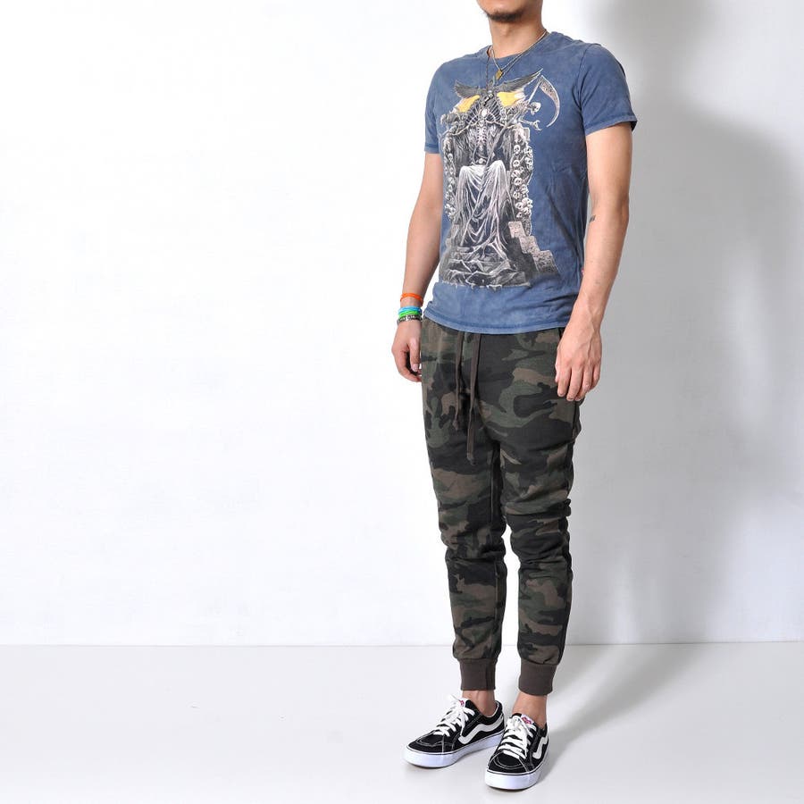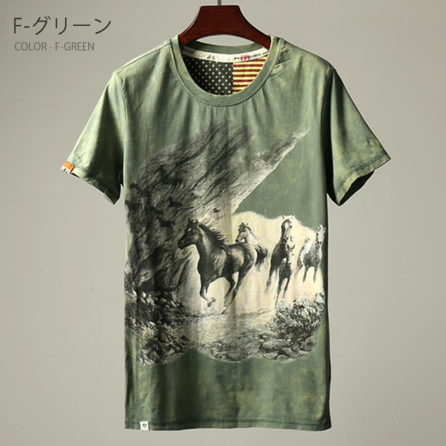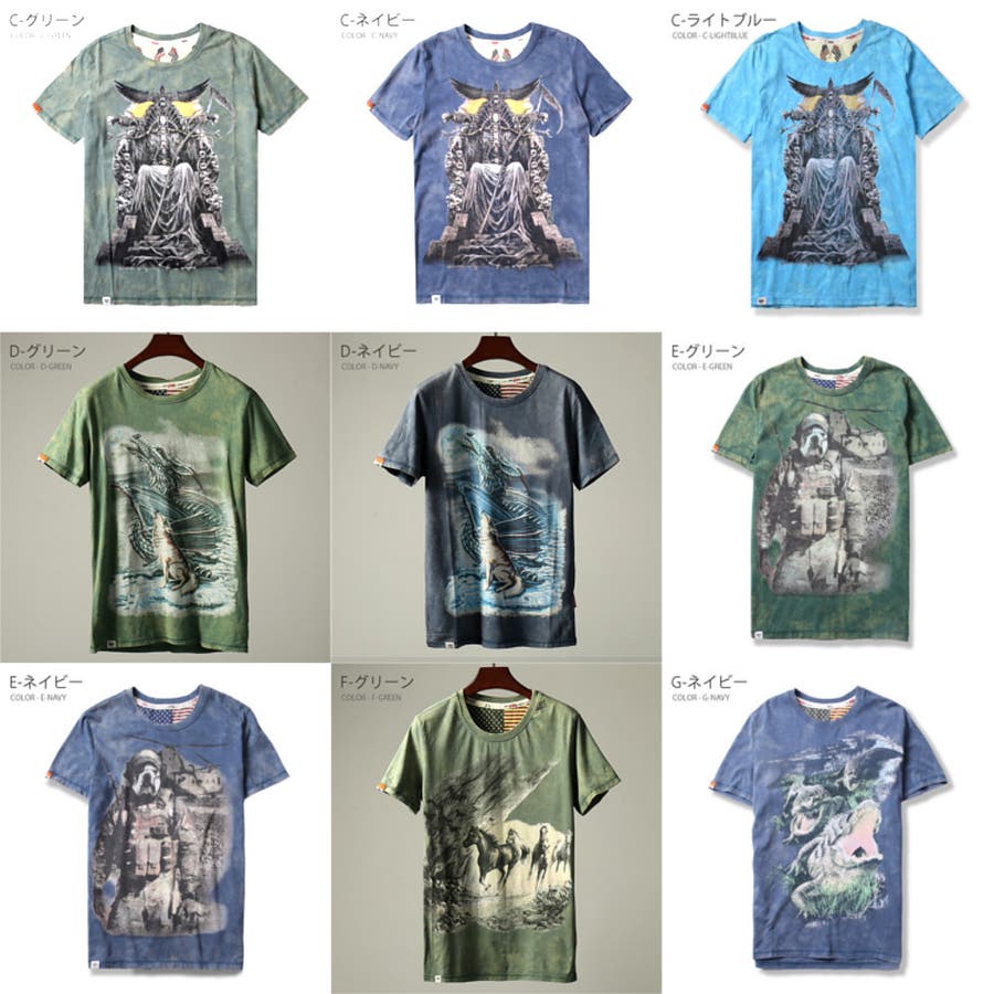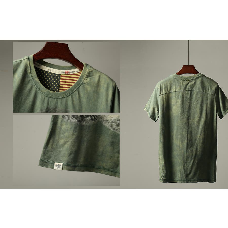 【C-グリーン】ヴィンテージテイスト プリント 半袖Tシャツ