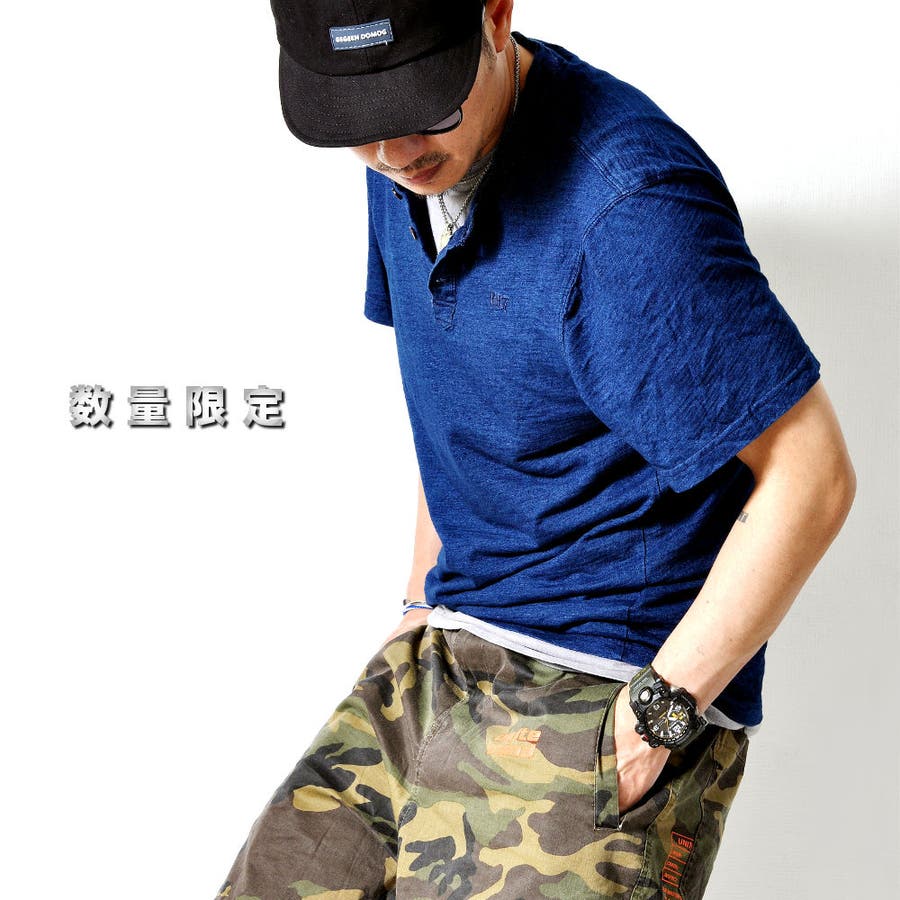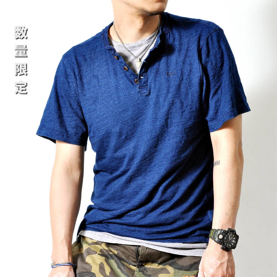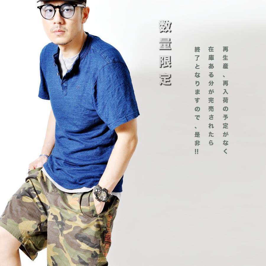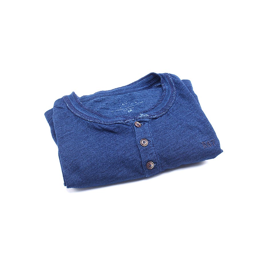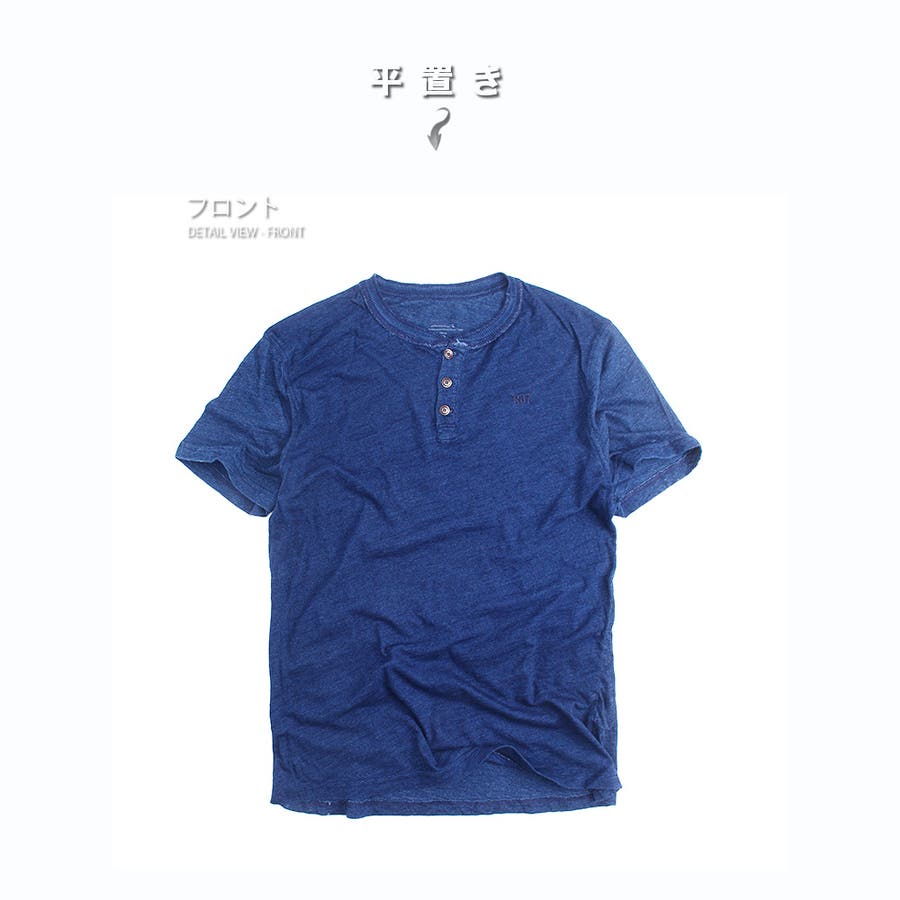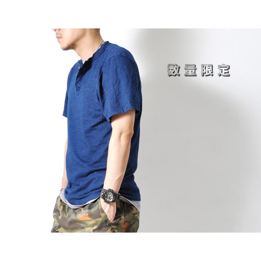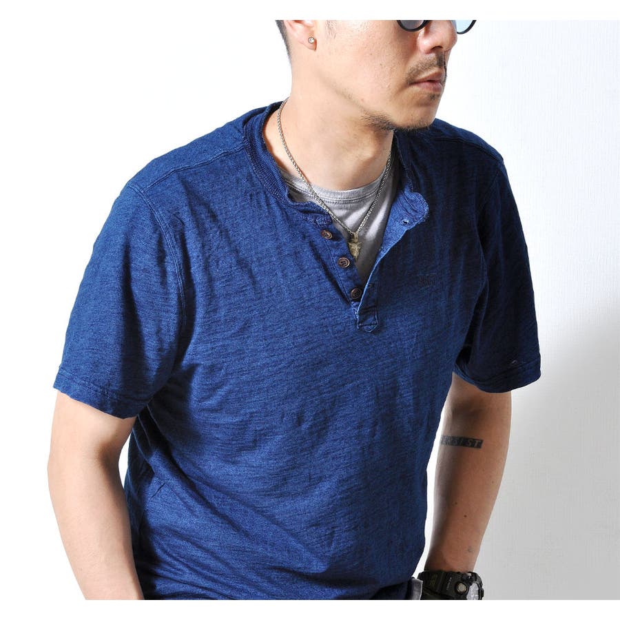 ボタンで開閉できる前立てがついたラウンドネックタイプのヘンリーネック。