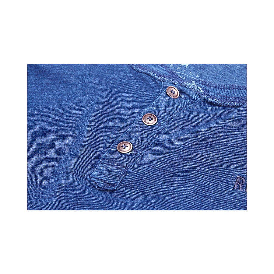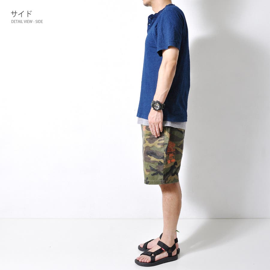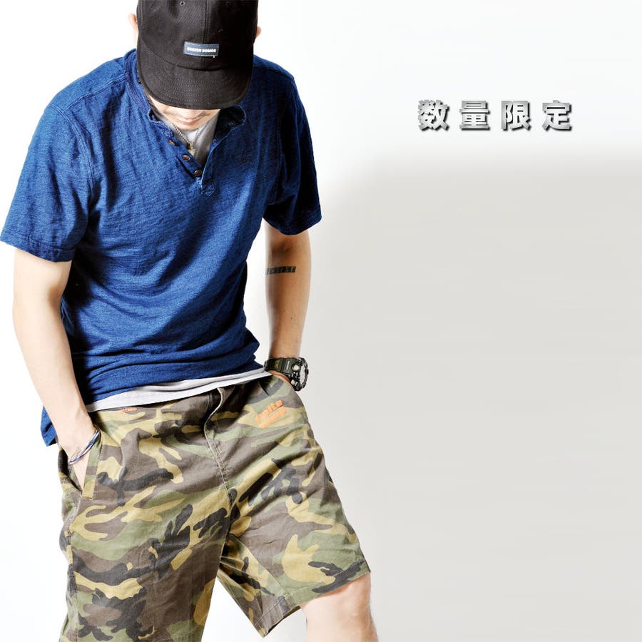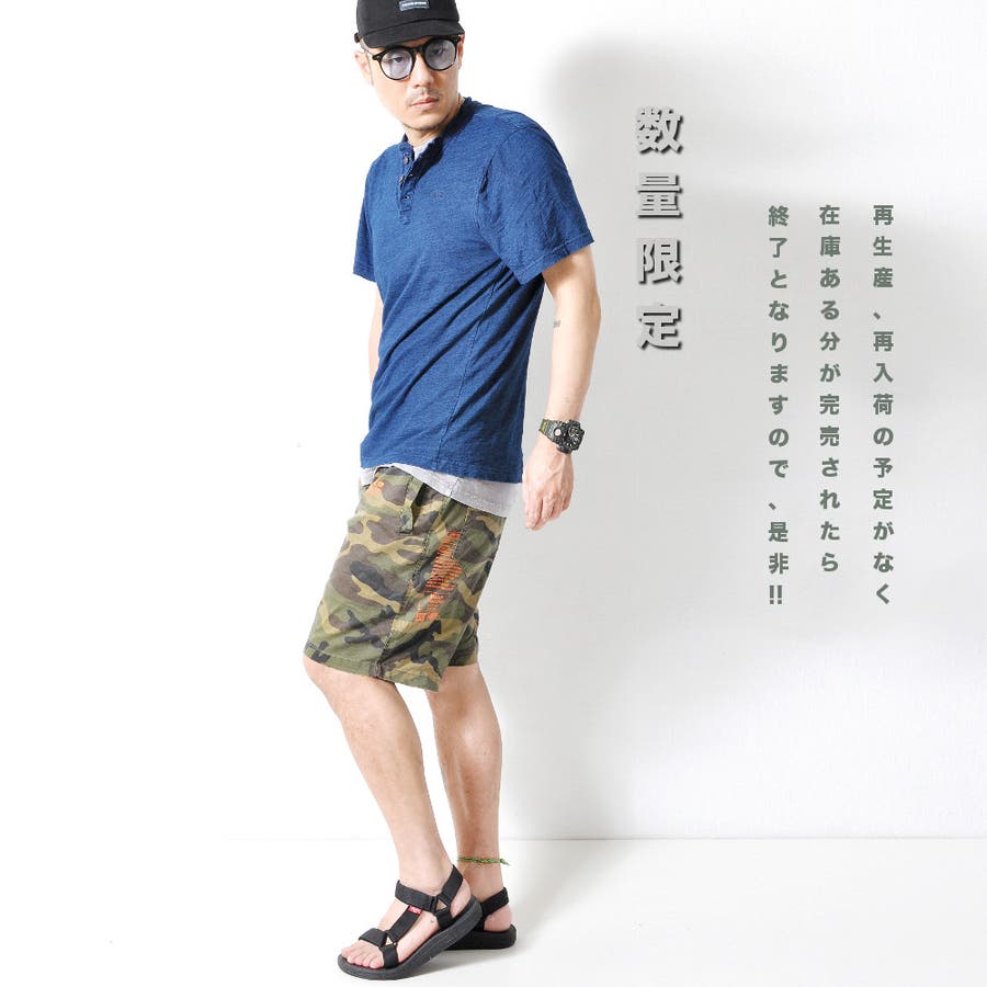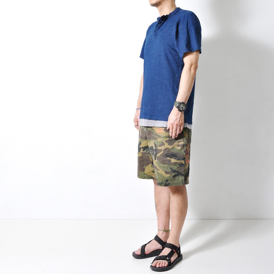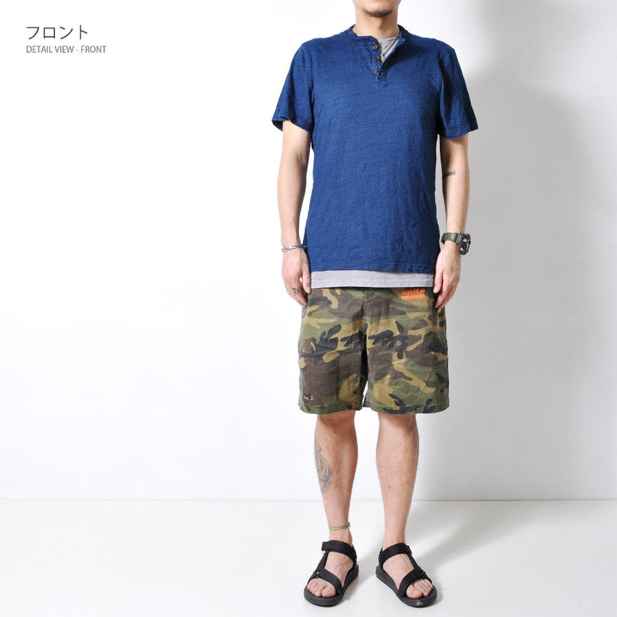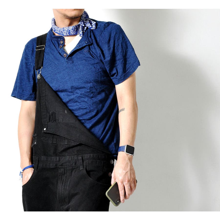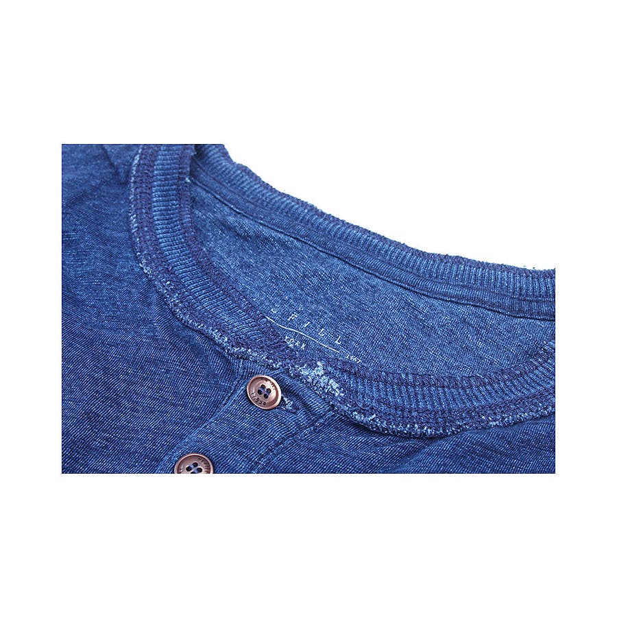 ボタンで開閉できる前立てがついたラウンドネックタイプのヘンリーネック。