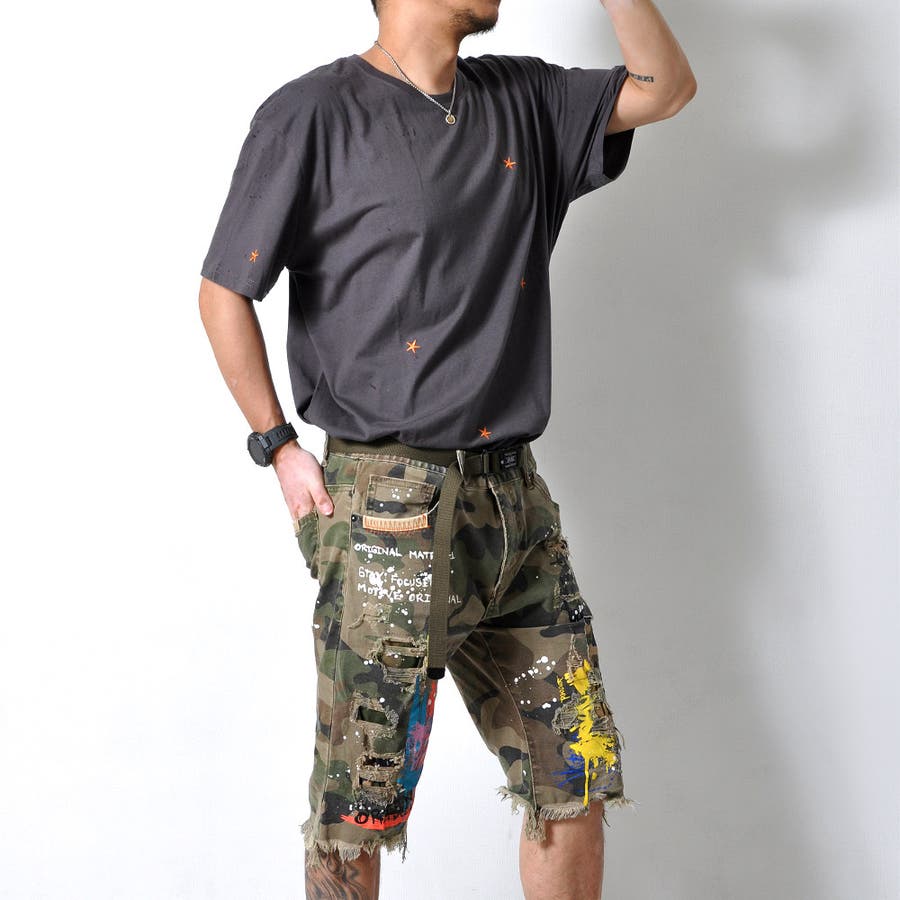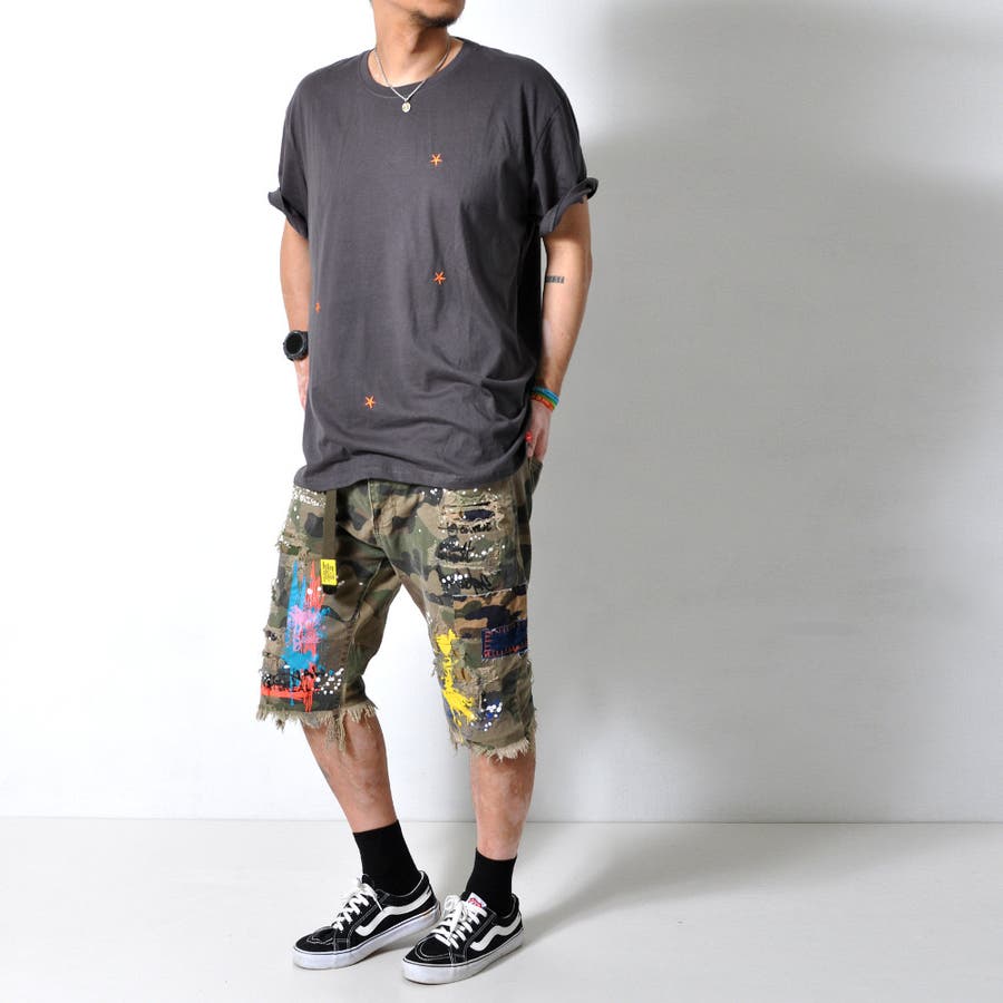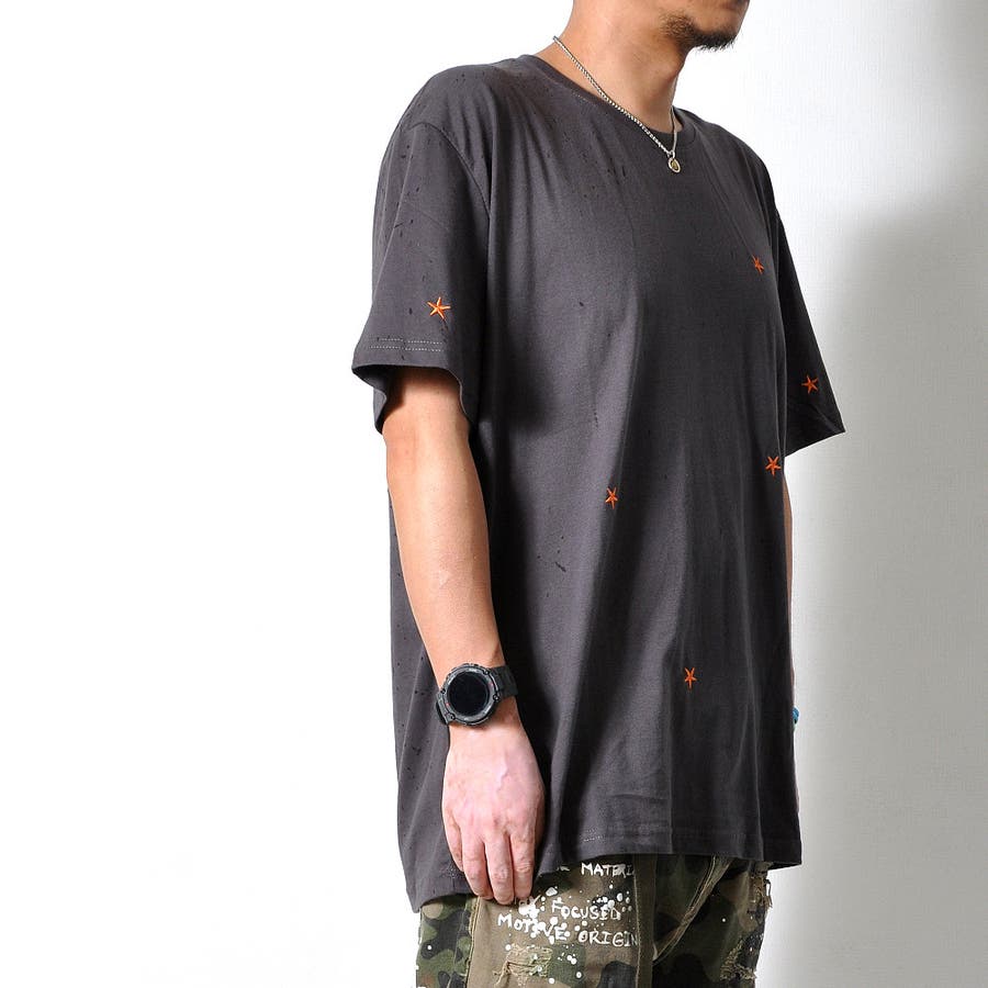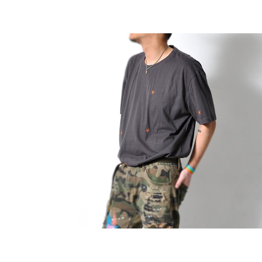 ★刺繍された星が散りばめられた半袖Tシャツ★