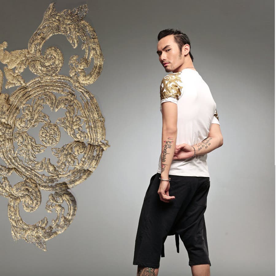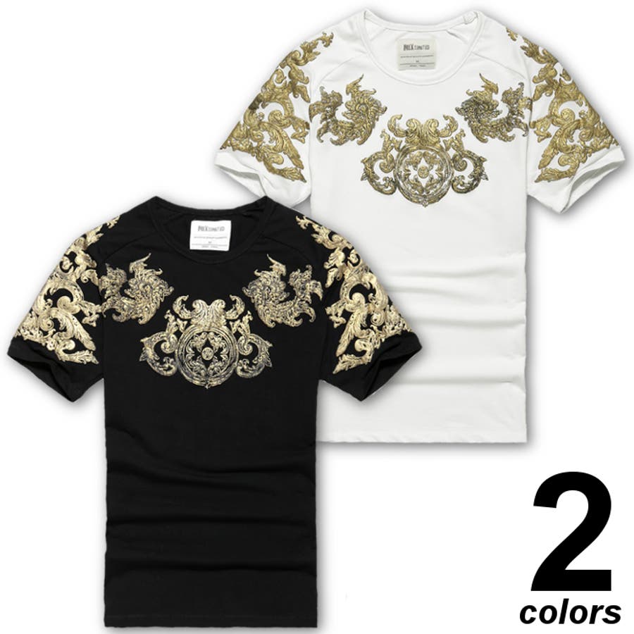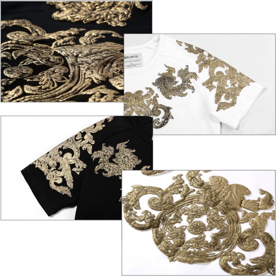 エンボス加工プリント半袖 Tシャツクルーネック メンズ