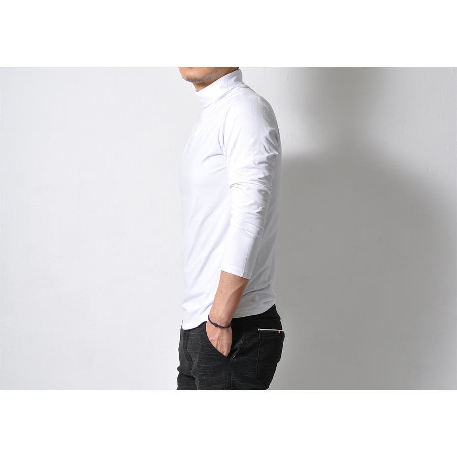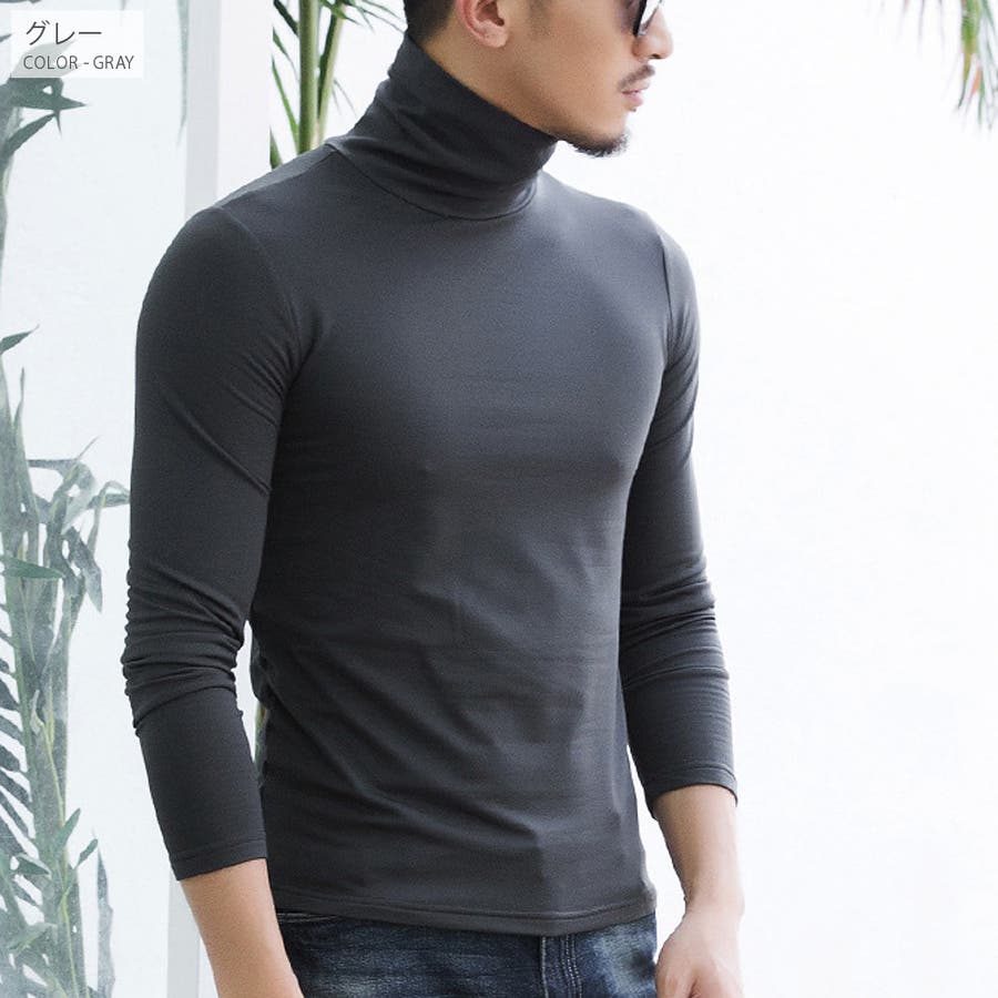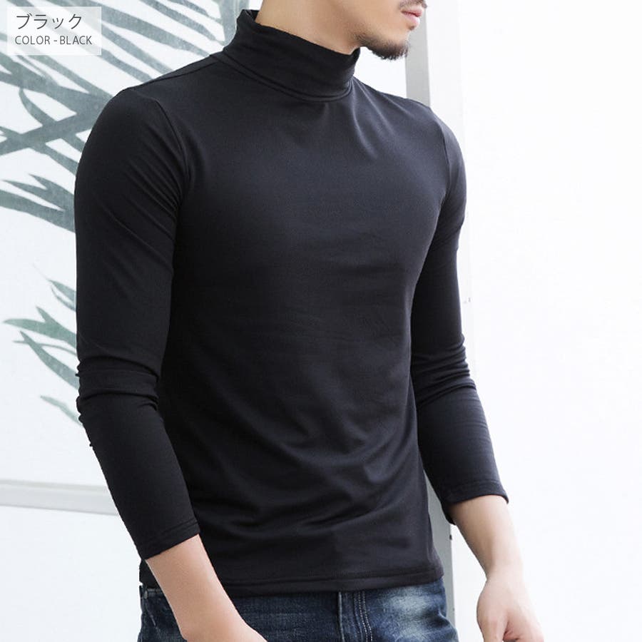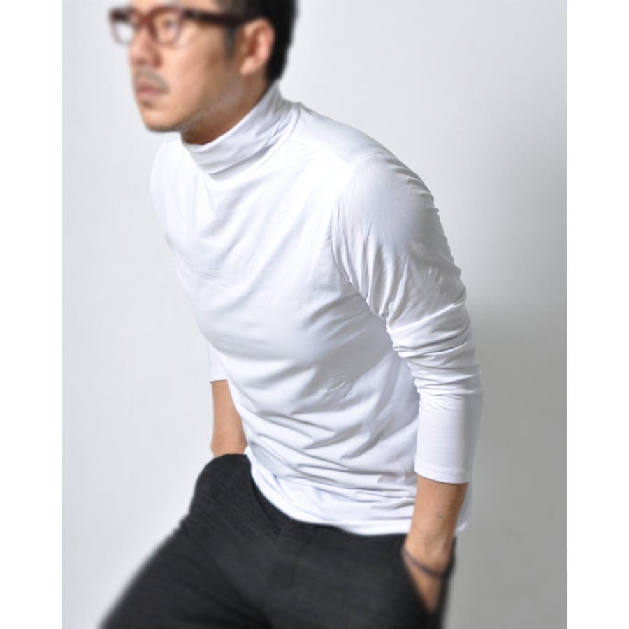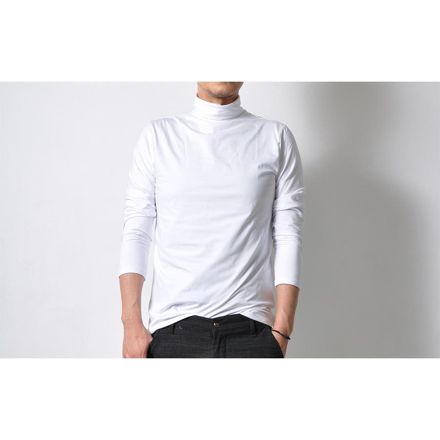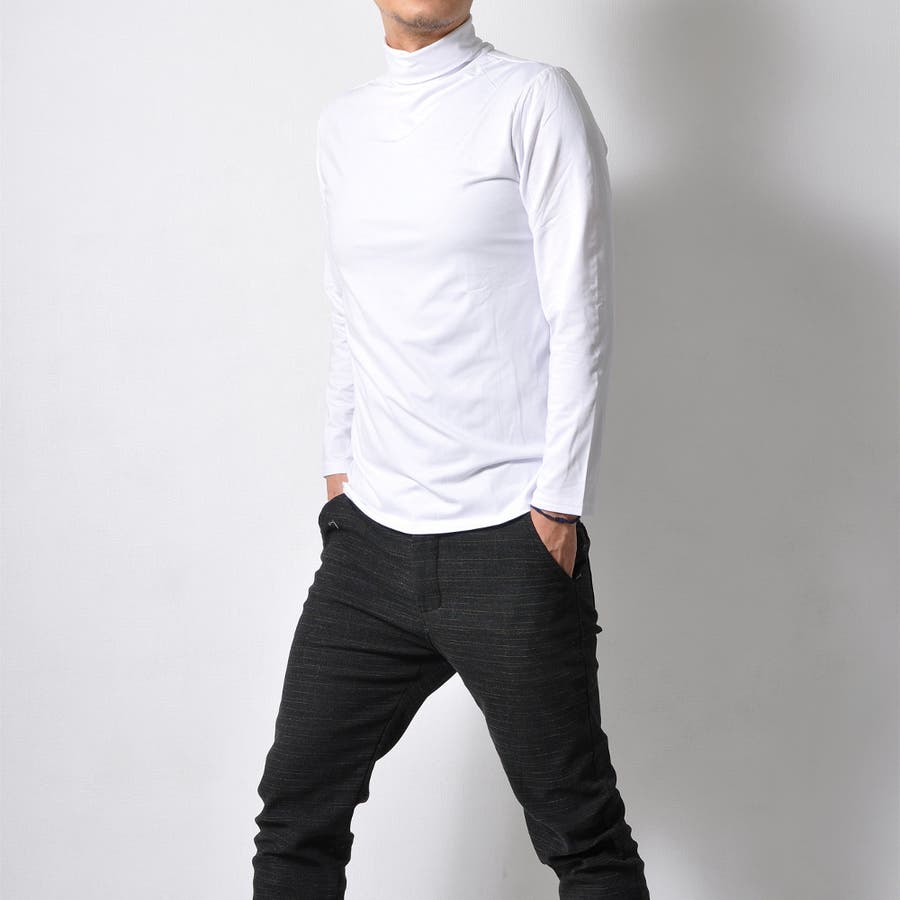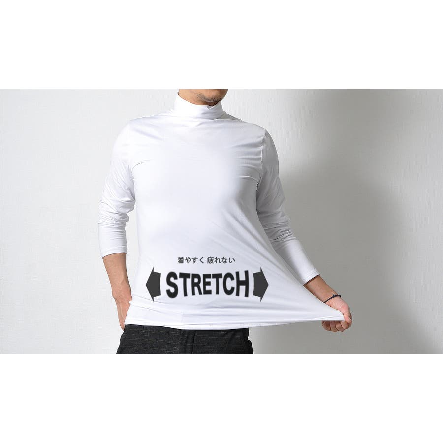 ストレッチ素材で作られた伸縮性抜群のタートルネック・ロンT