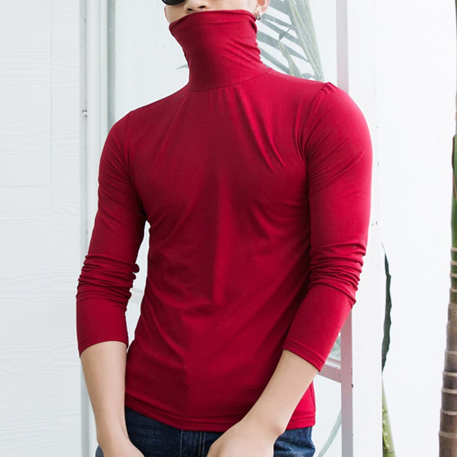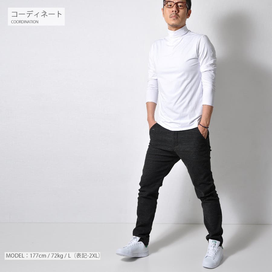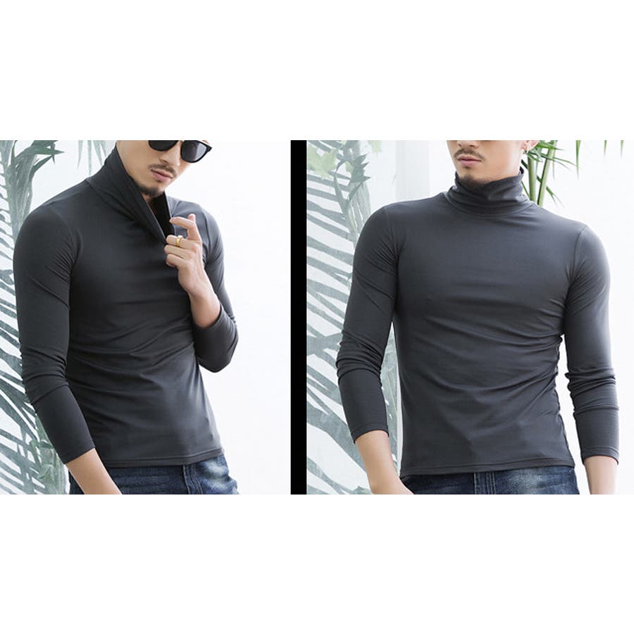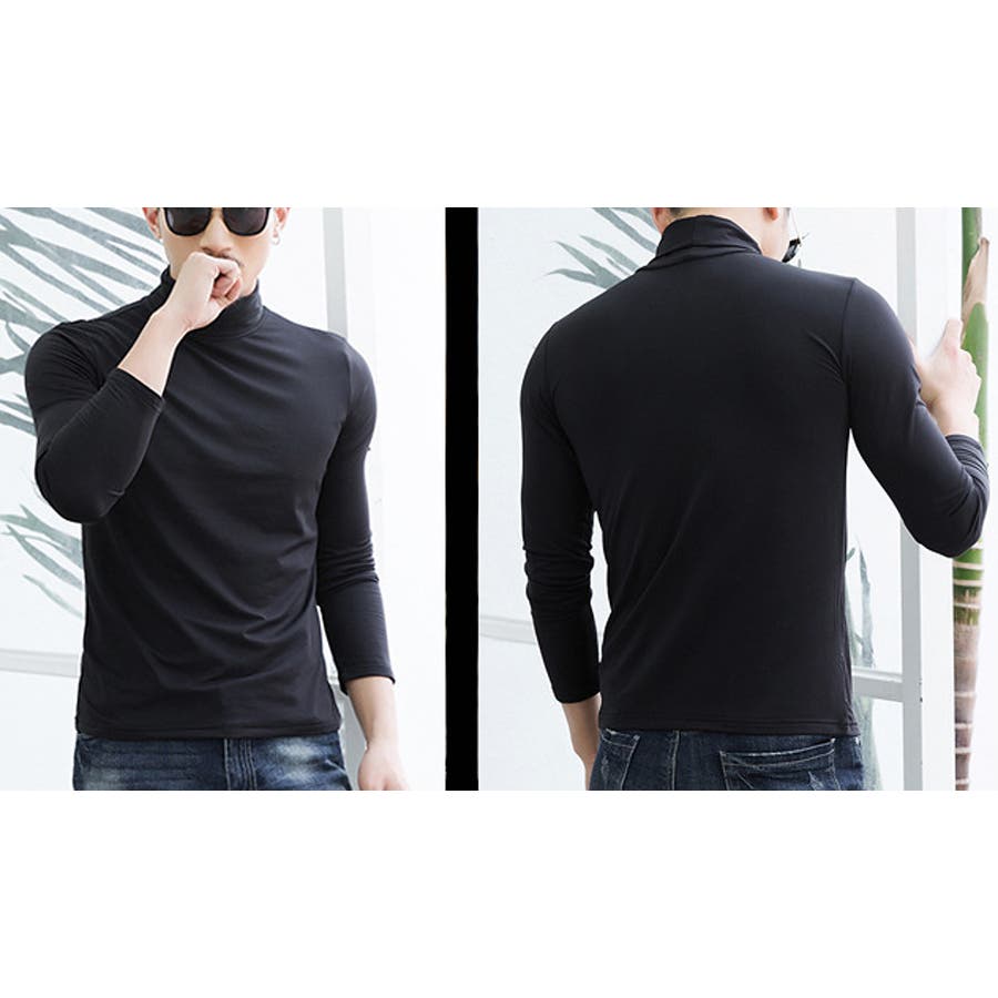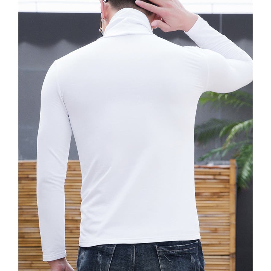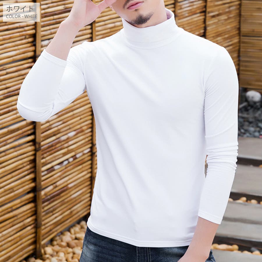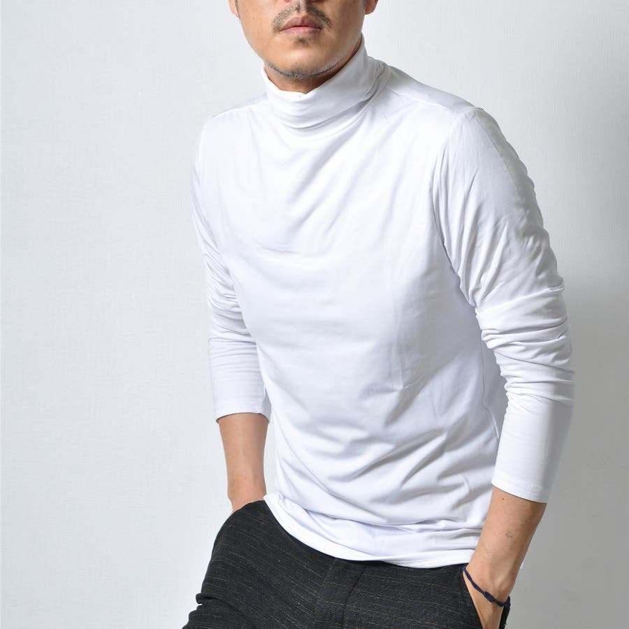 ストレッチ素材で作られた伸縮性抜群のタートルネック・ロンT