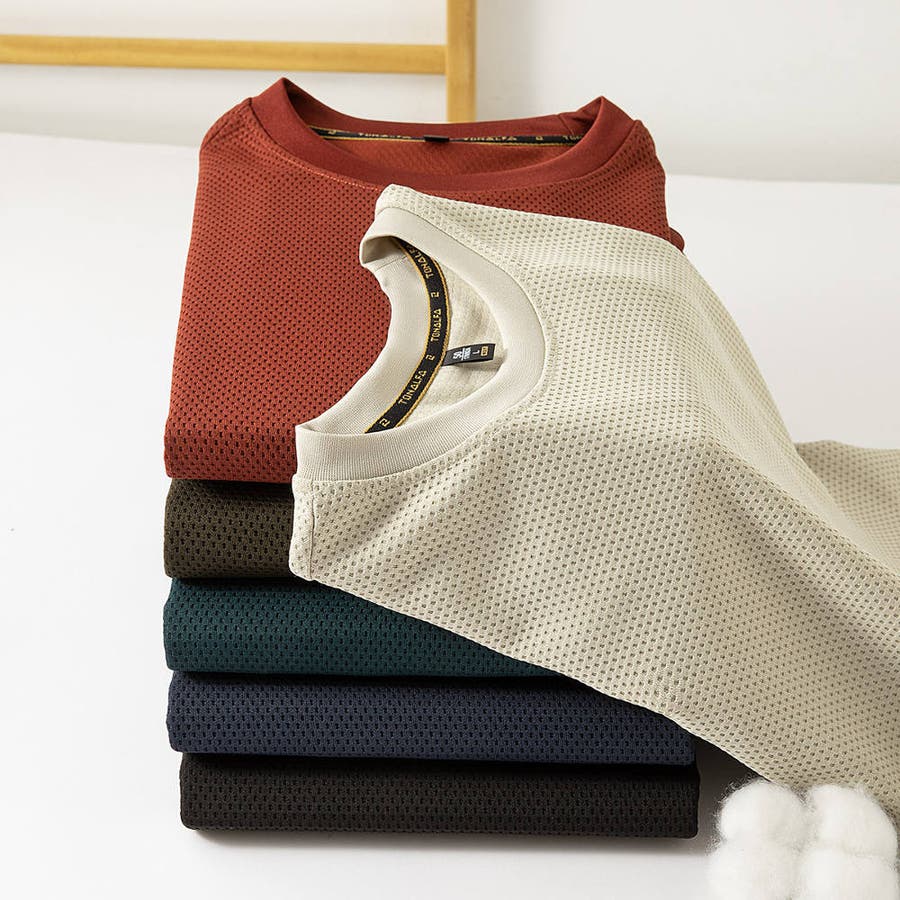 ストレッチ&速乾性もあるのでアクティブなシーンにもオススメ。