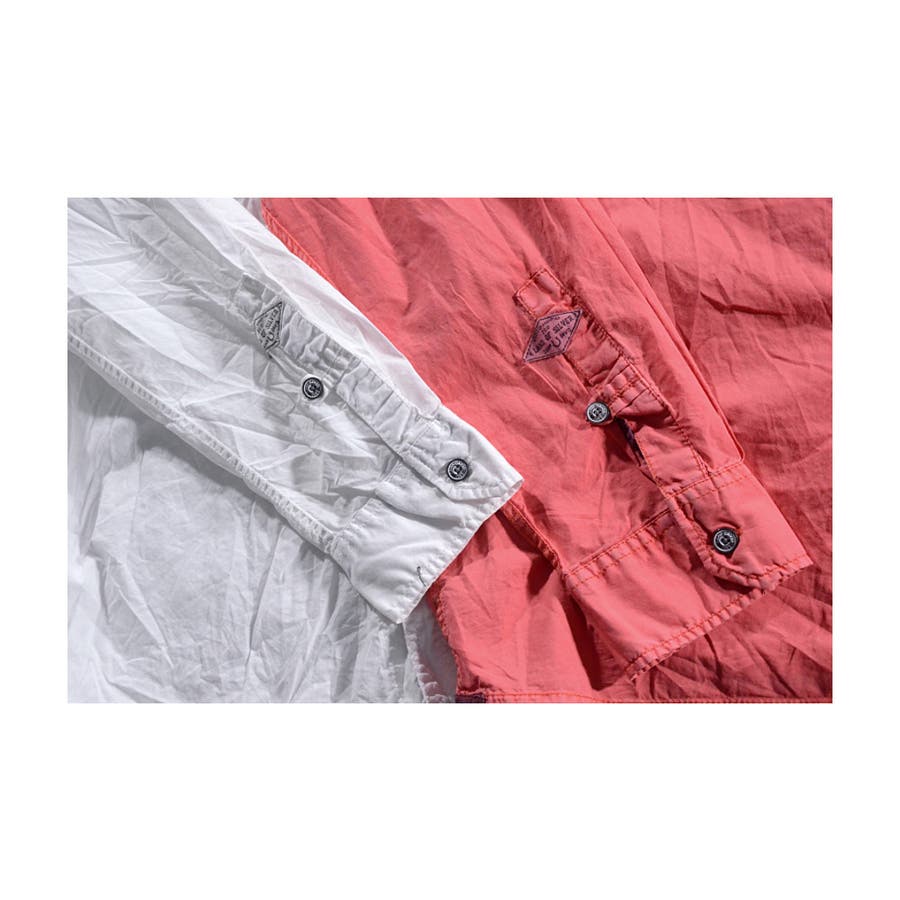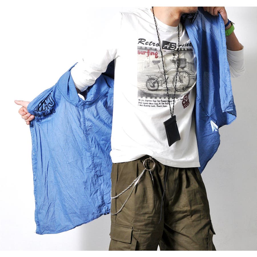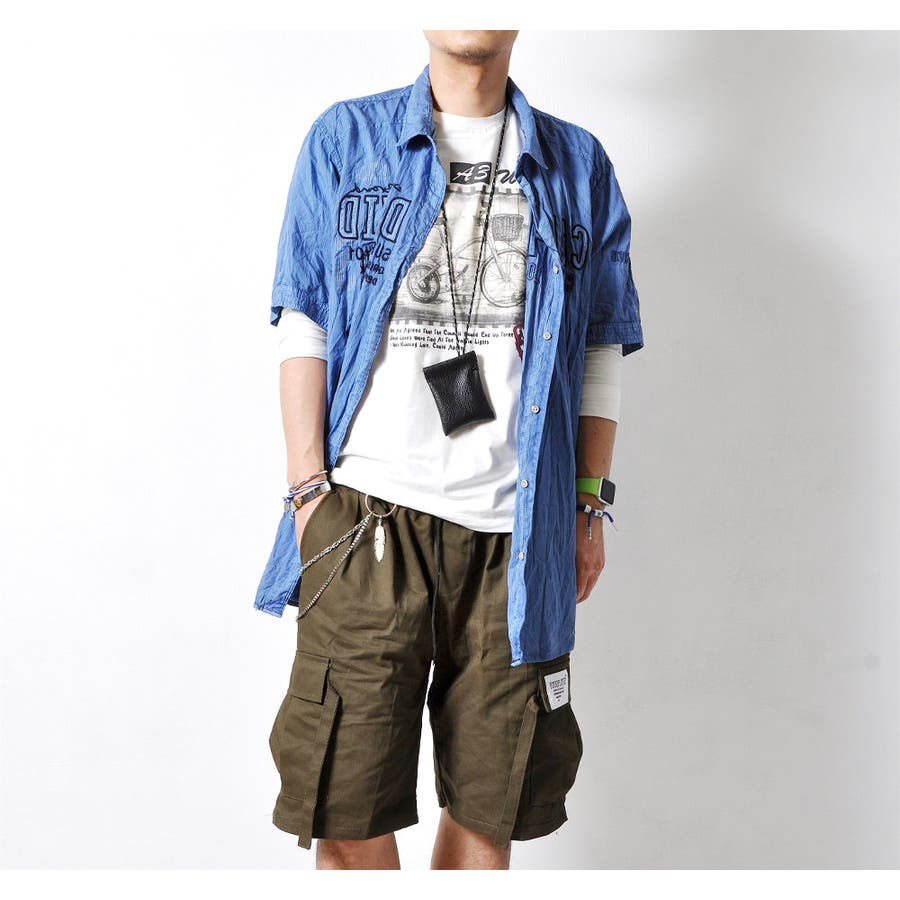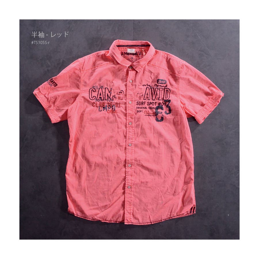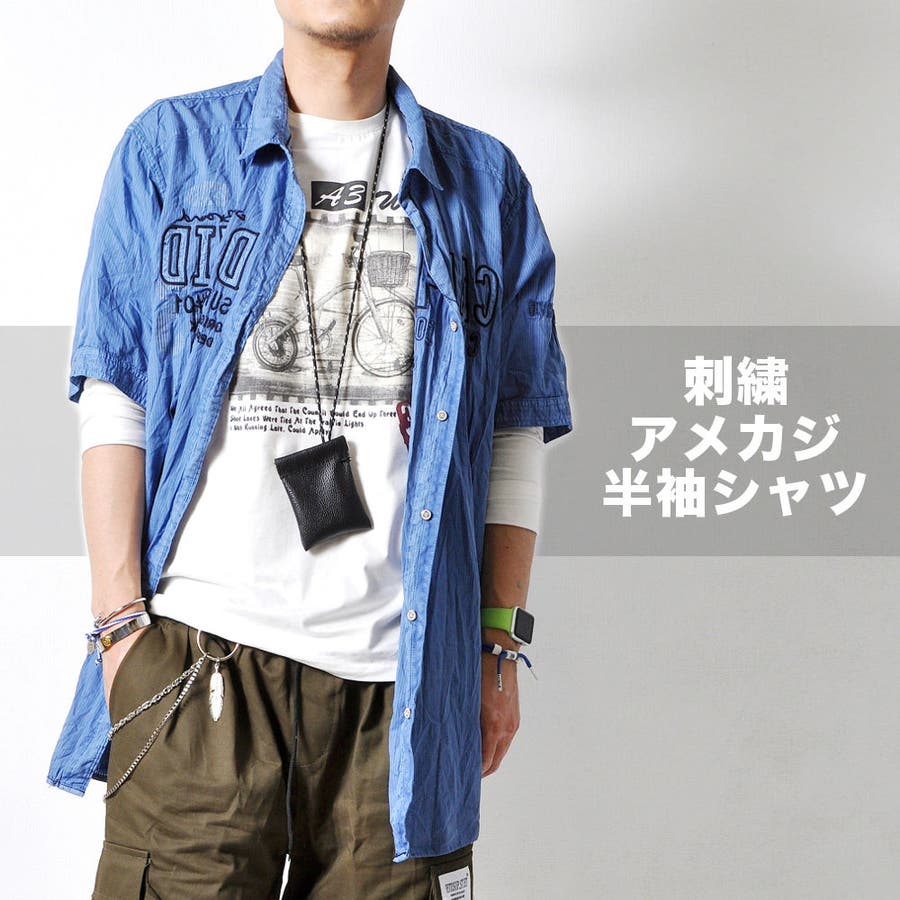 鮮やかな生地に刺繍・プリントが目を惹くシャツ。