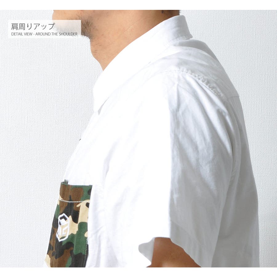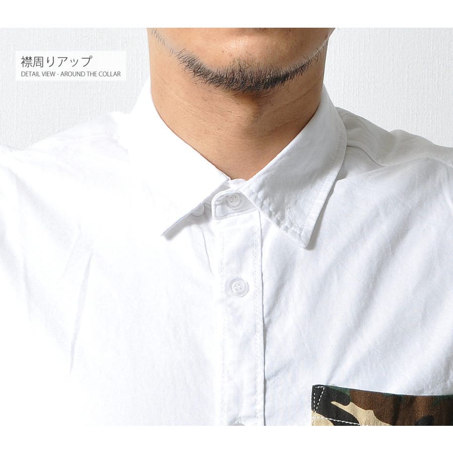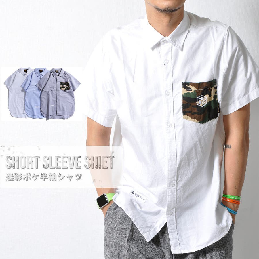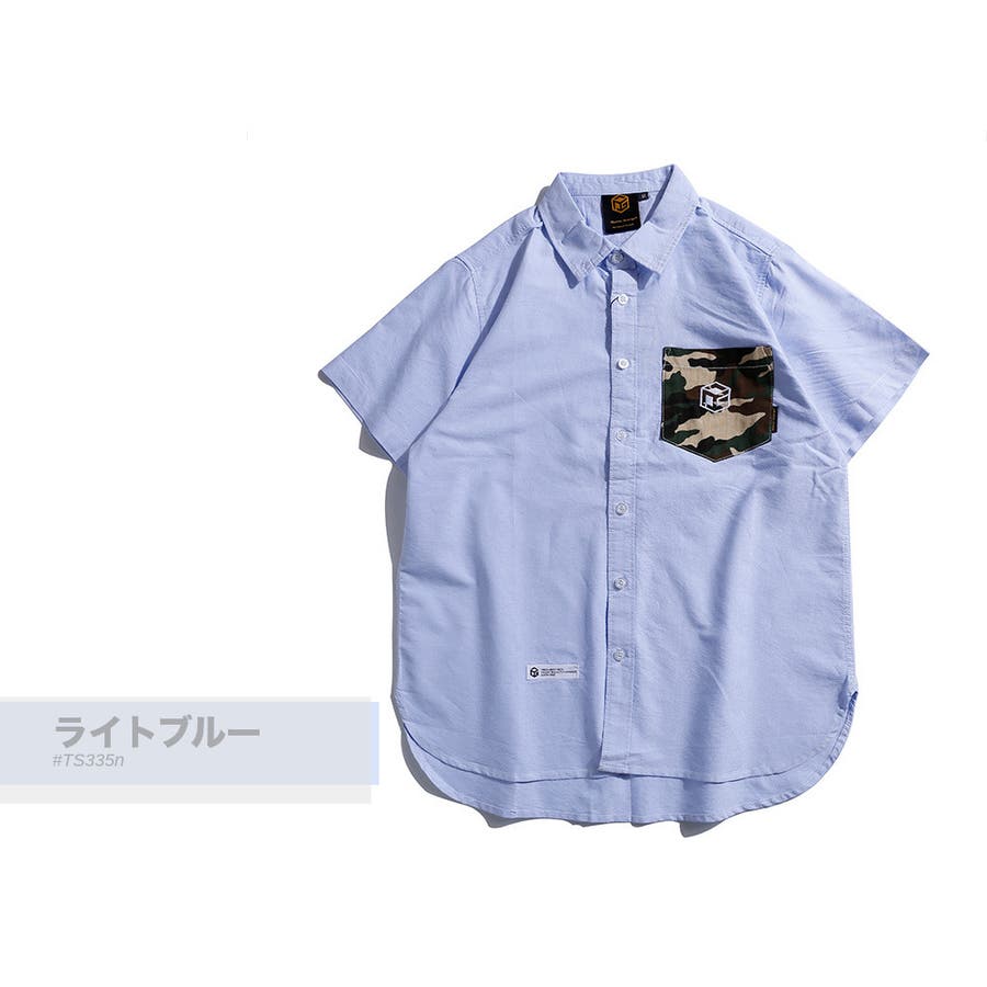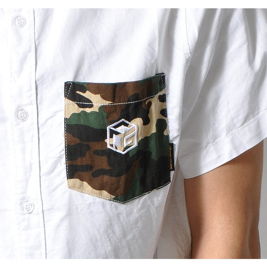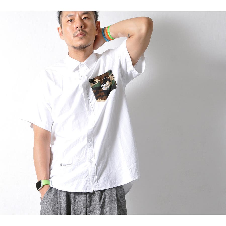 胸ポケットの迷彩柄がアクセントになった半袖無地シャツ。