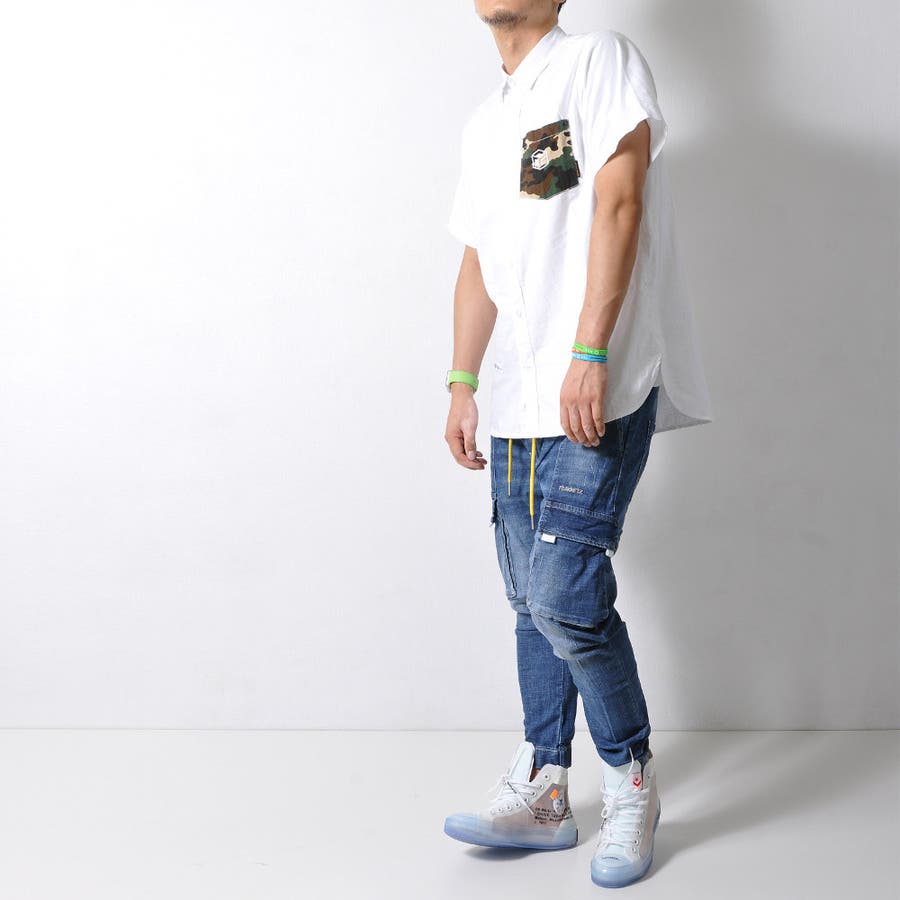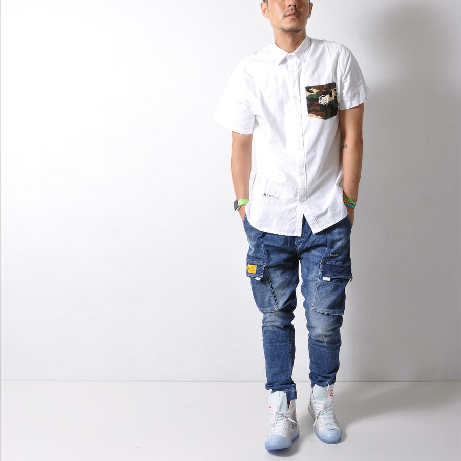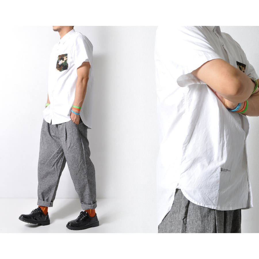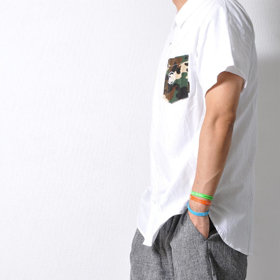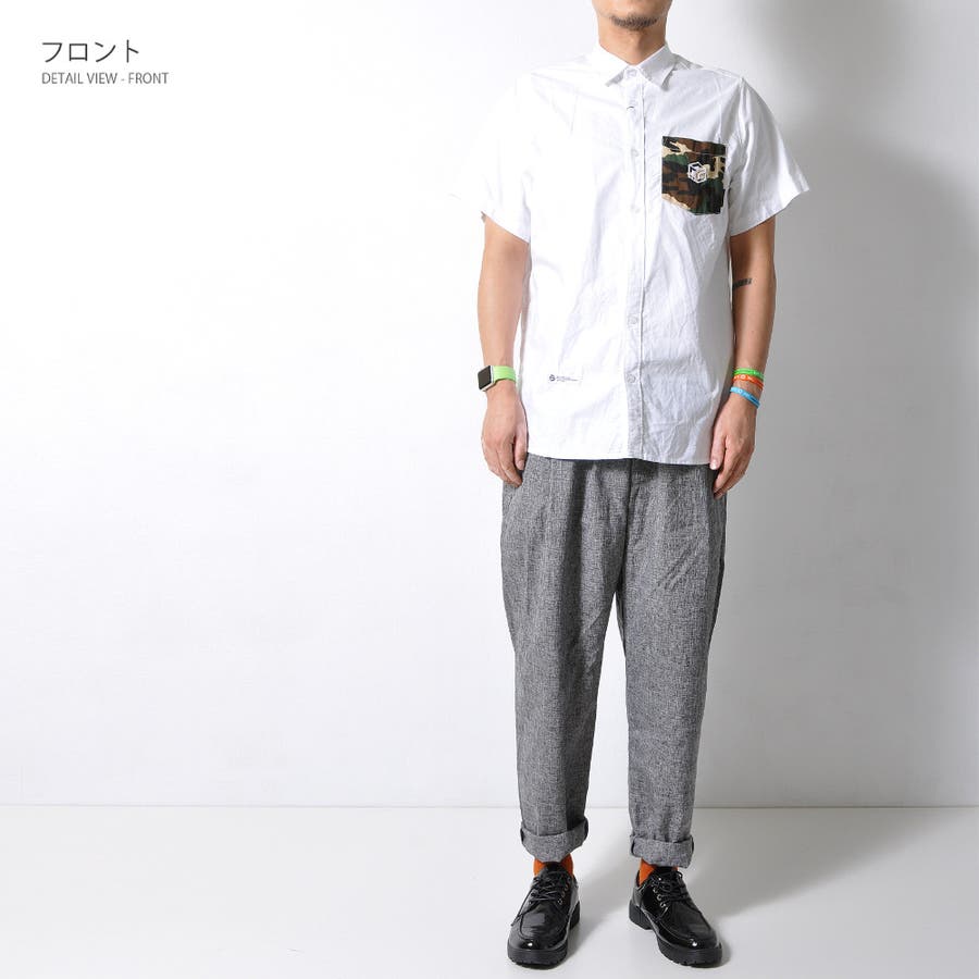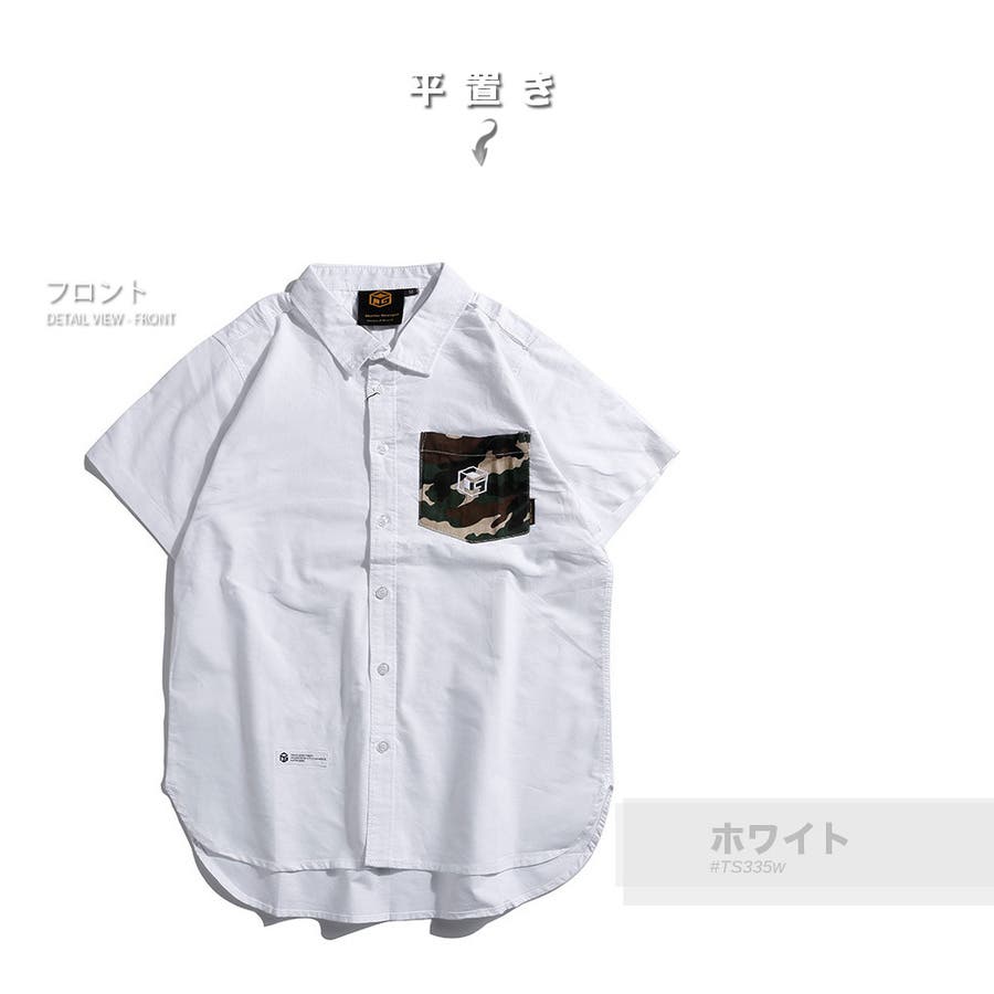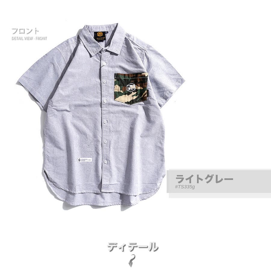 胸ポケットの迷彩柄がアクセントになった半袖無地シャツ。
