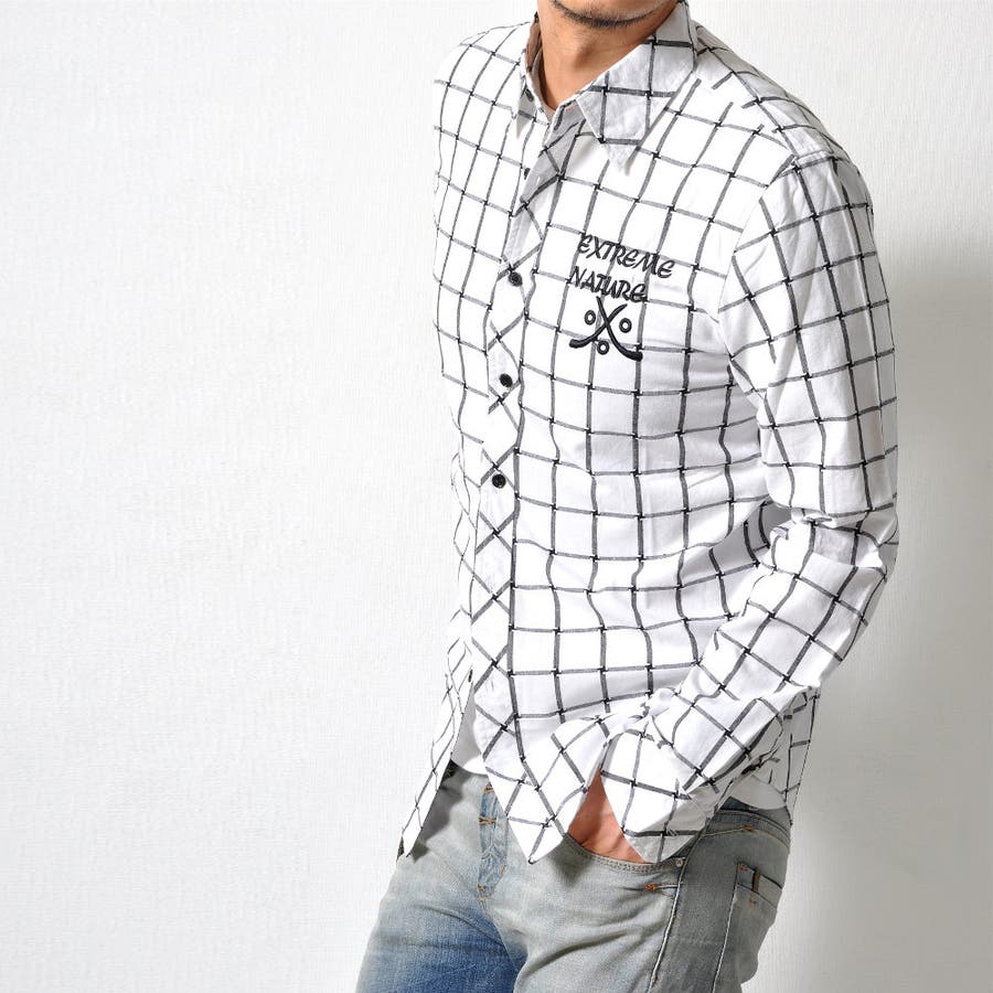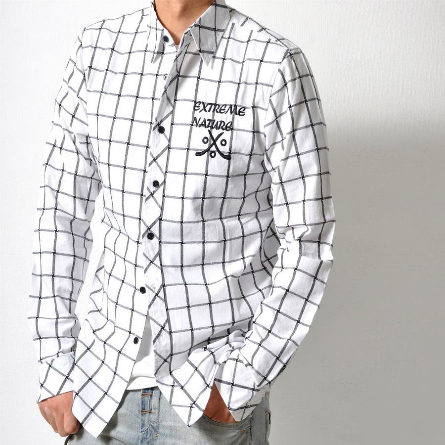 コットン 刺繍 長袖シャツ