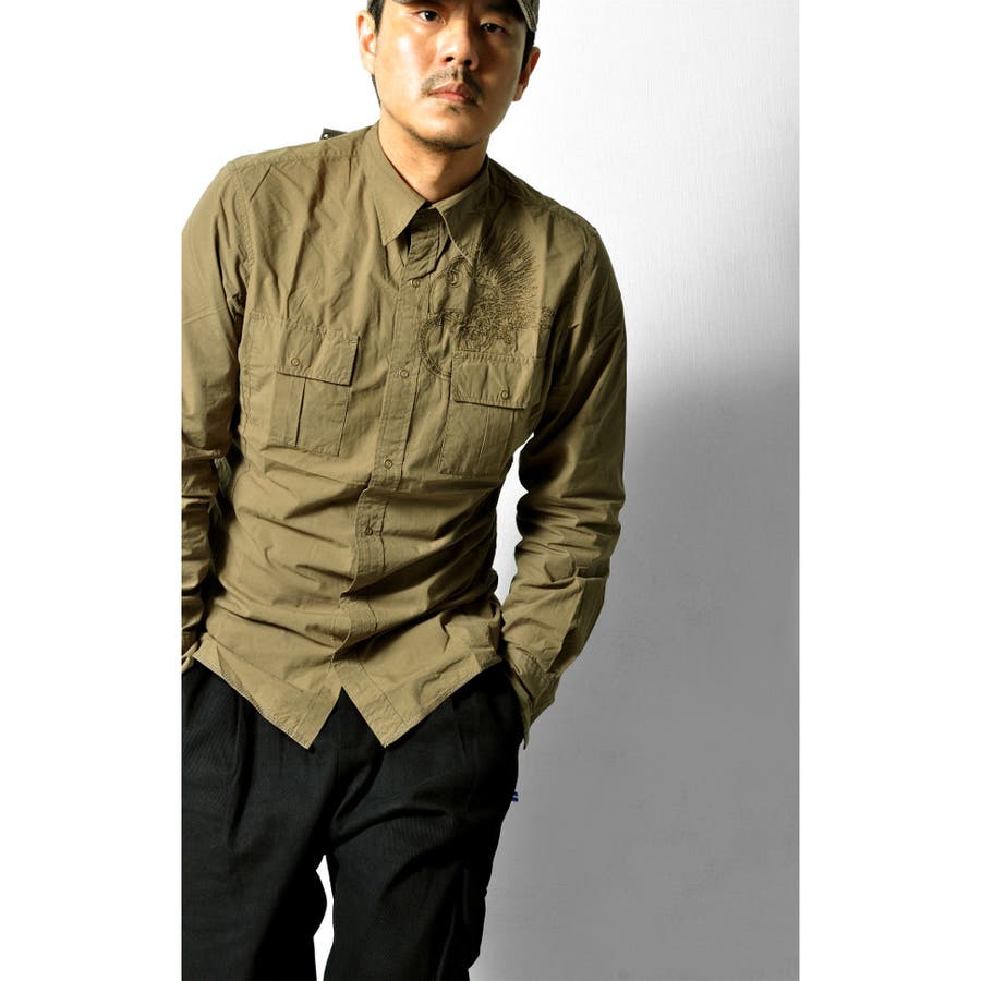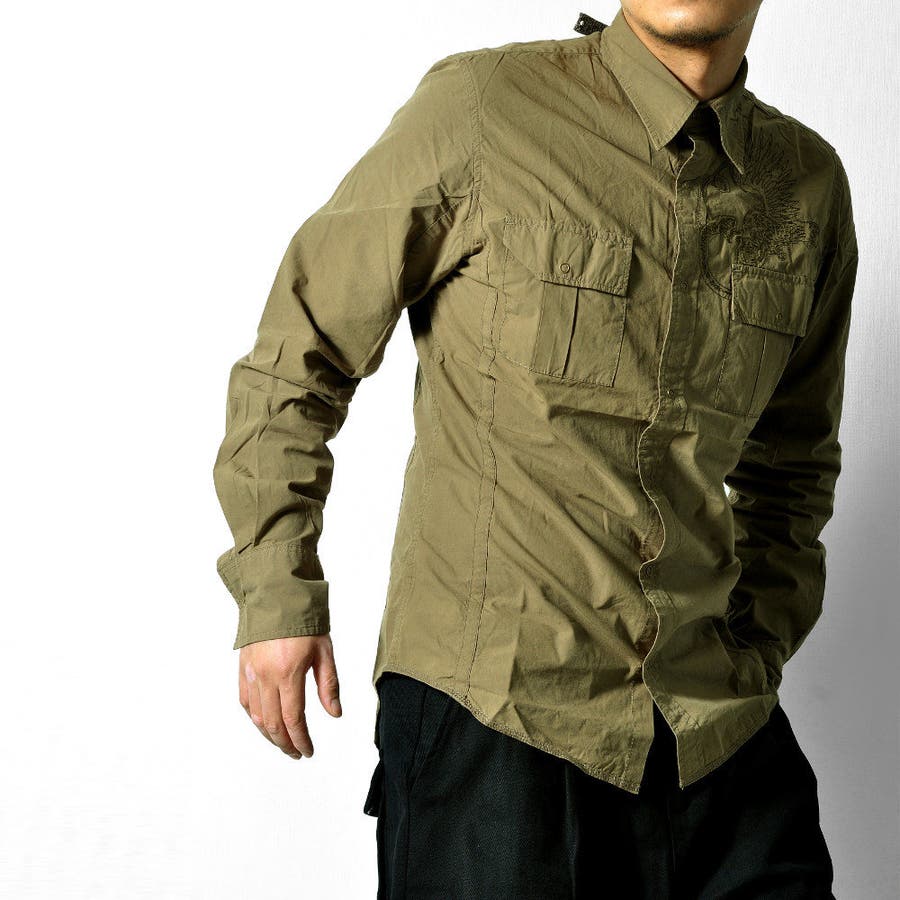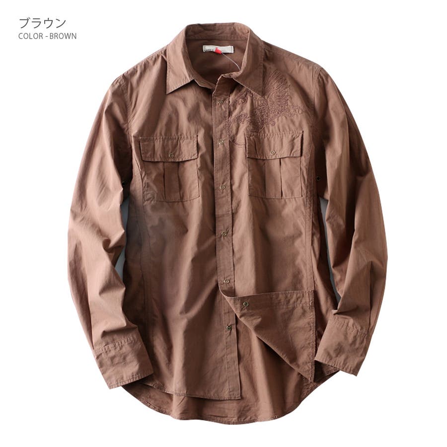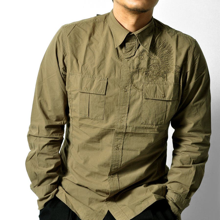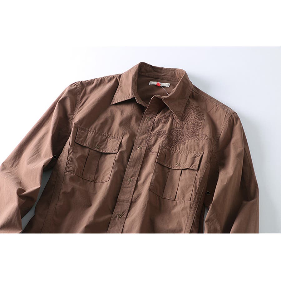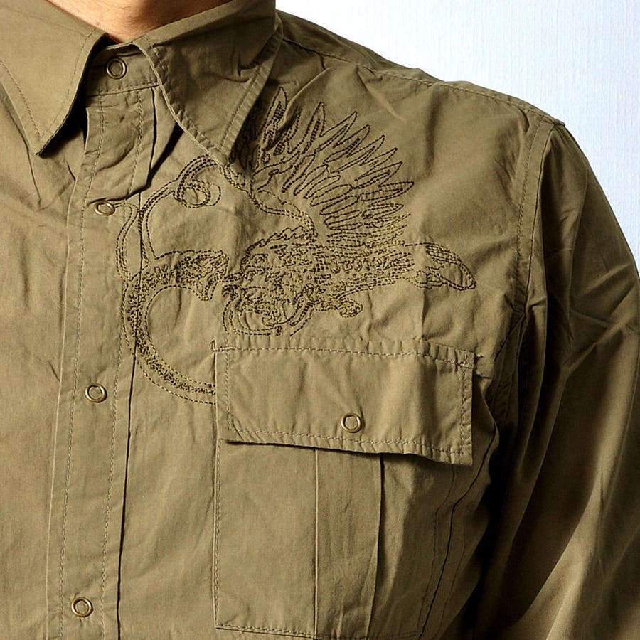 左胸に刺繍が施されたスナップボタン長袖シャツ