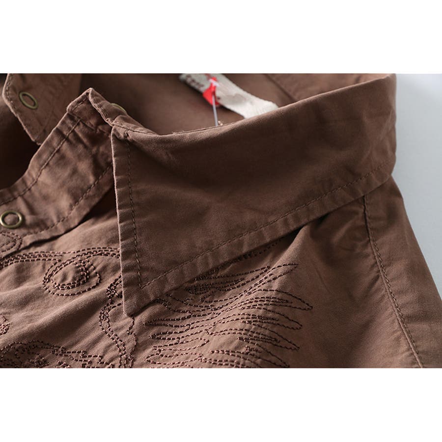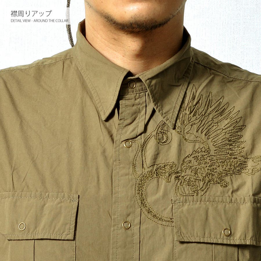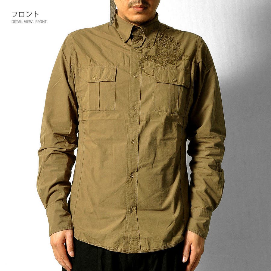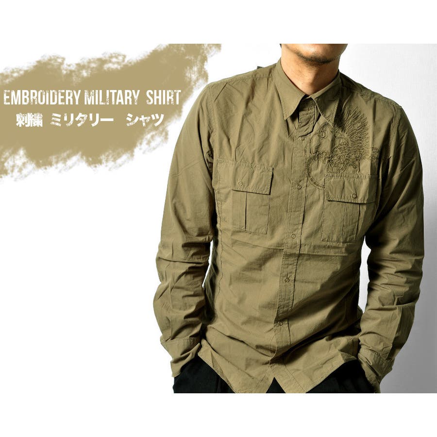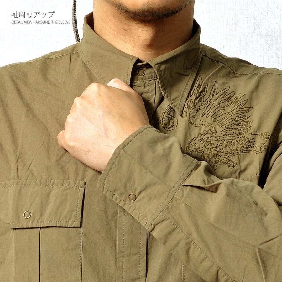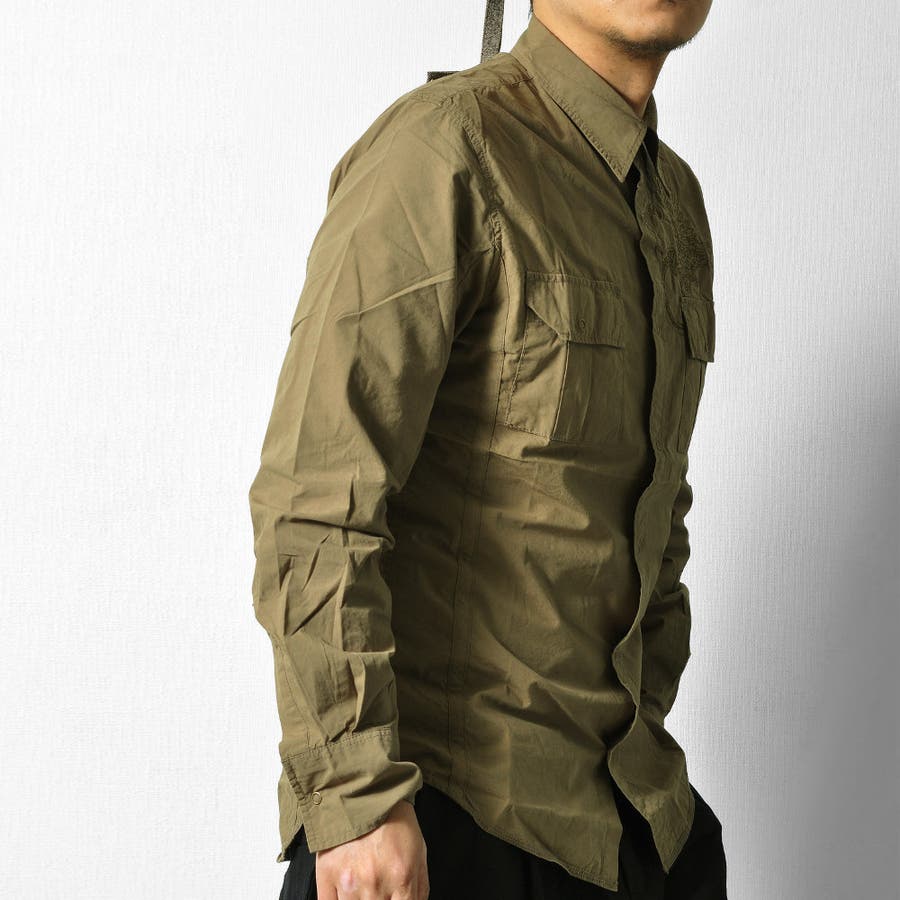 左胸に刺繍が施されたスナップボタン長袖シャツ