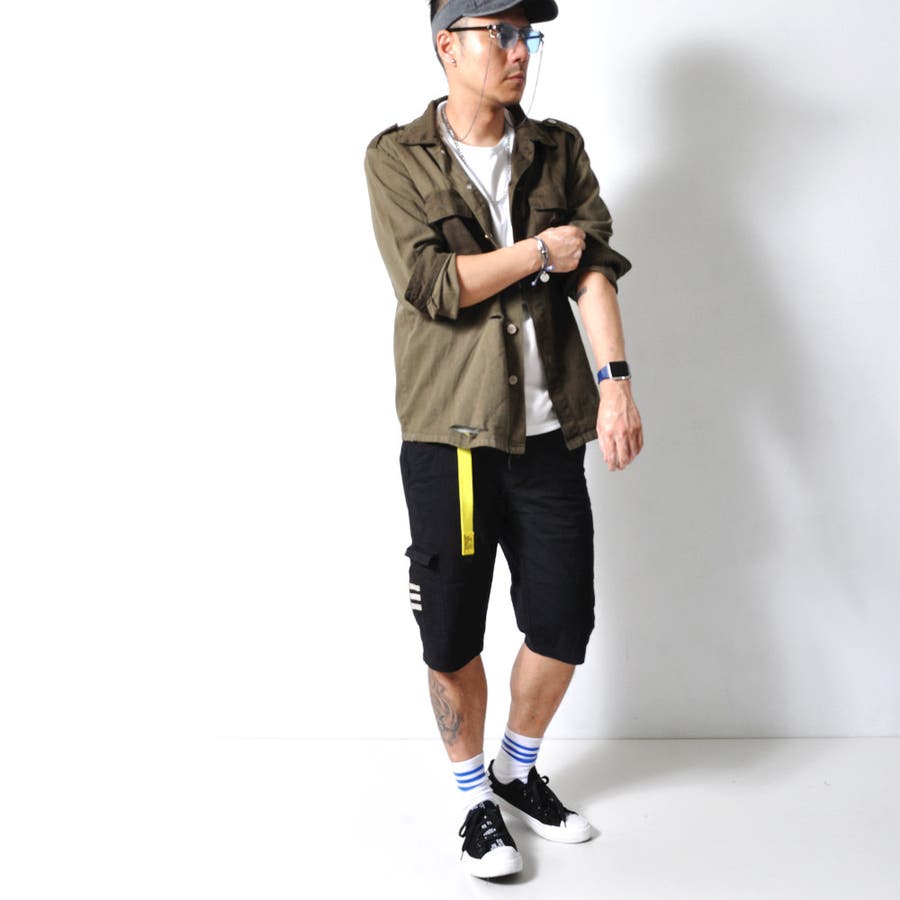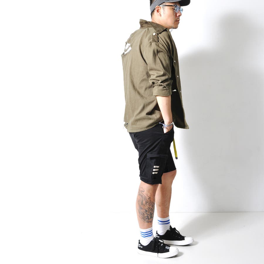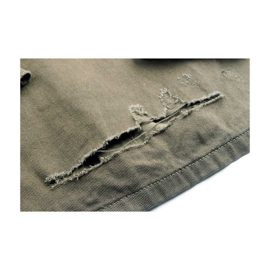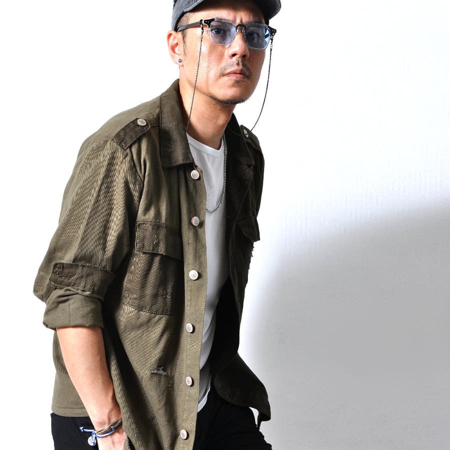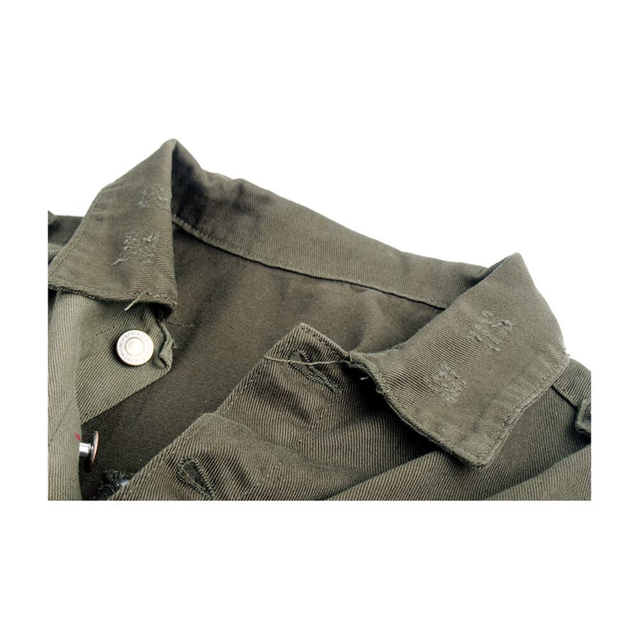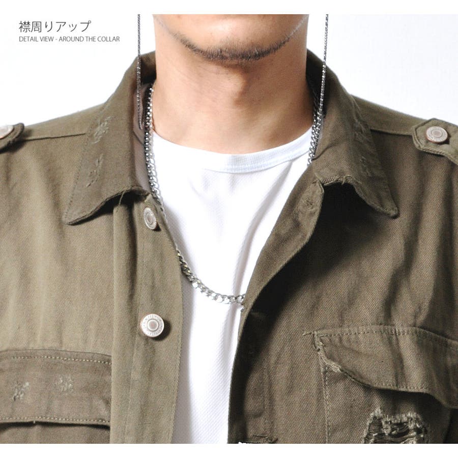 大胆なダメージ加工が目を惹くミリタリーシャツジャケット