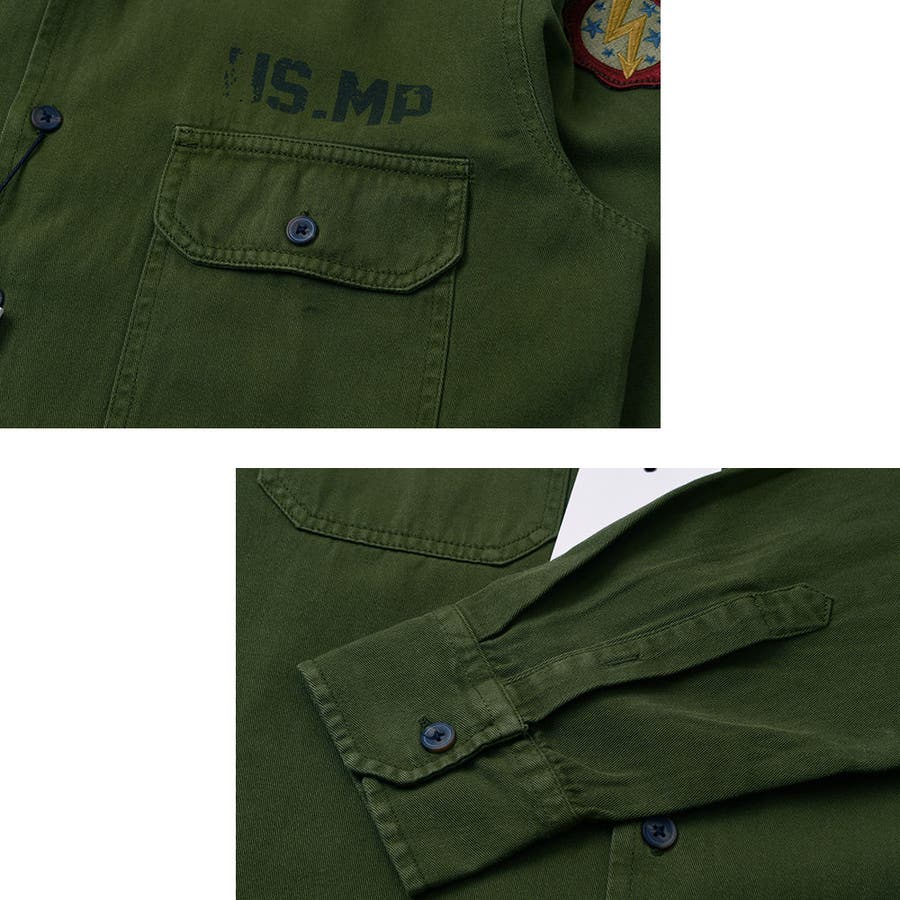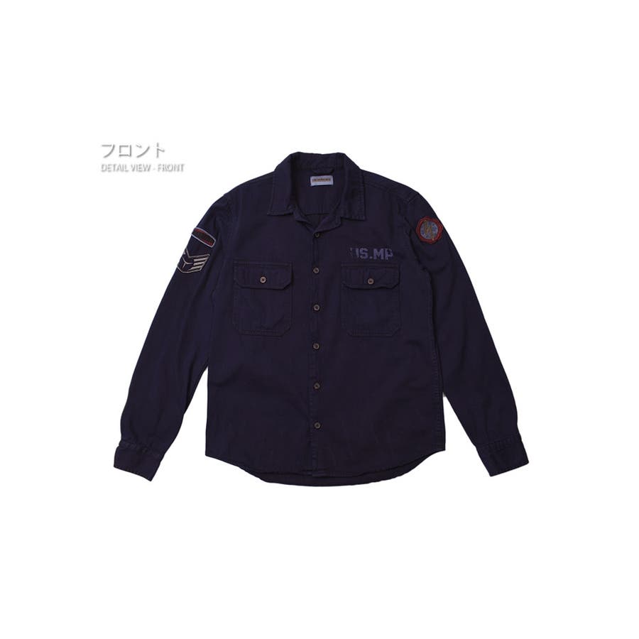 フロント両胸にフラップポケット付きのワークシャツ