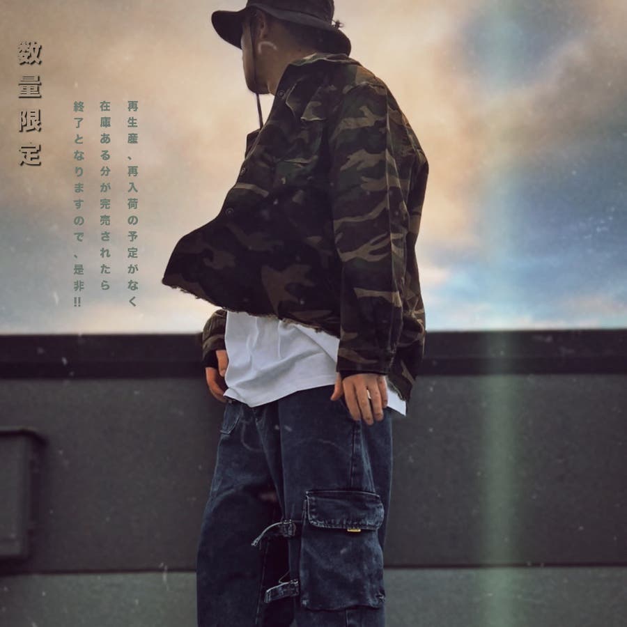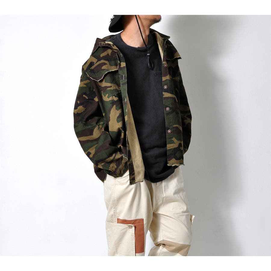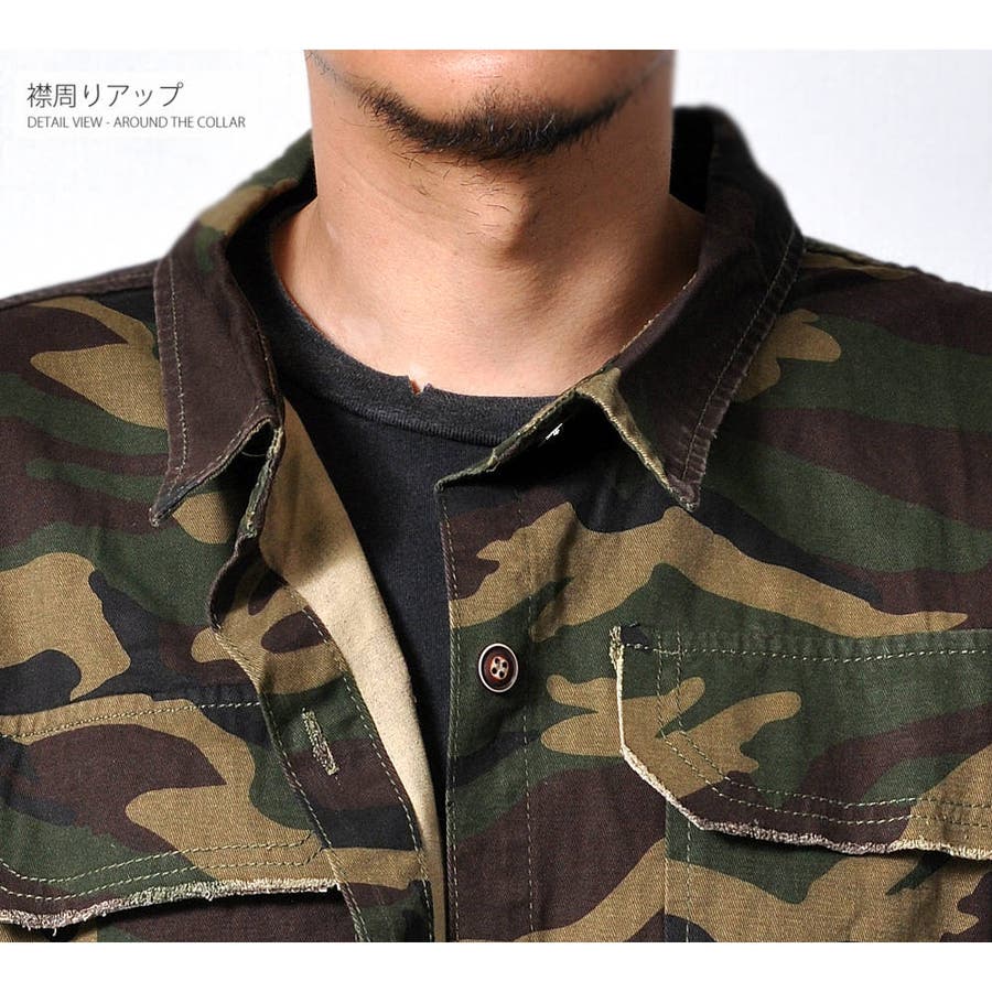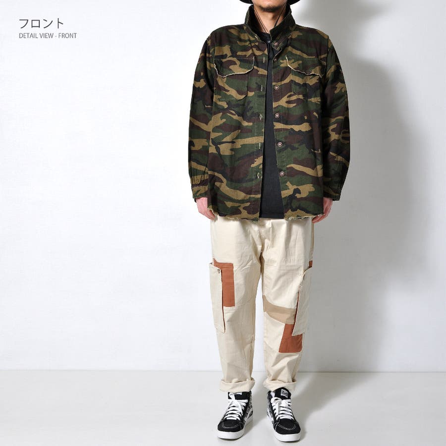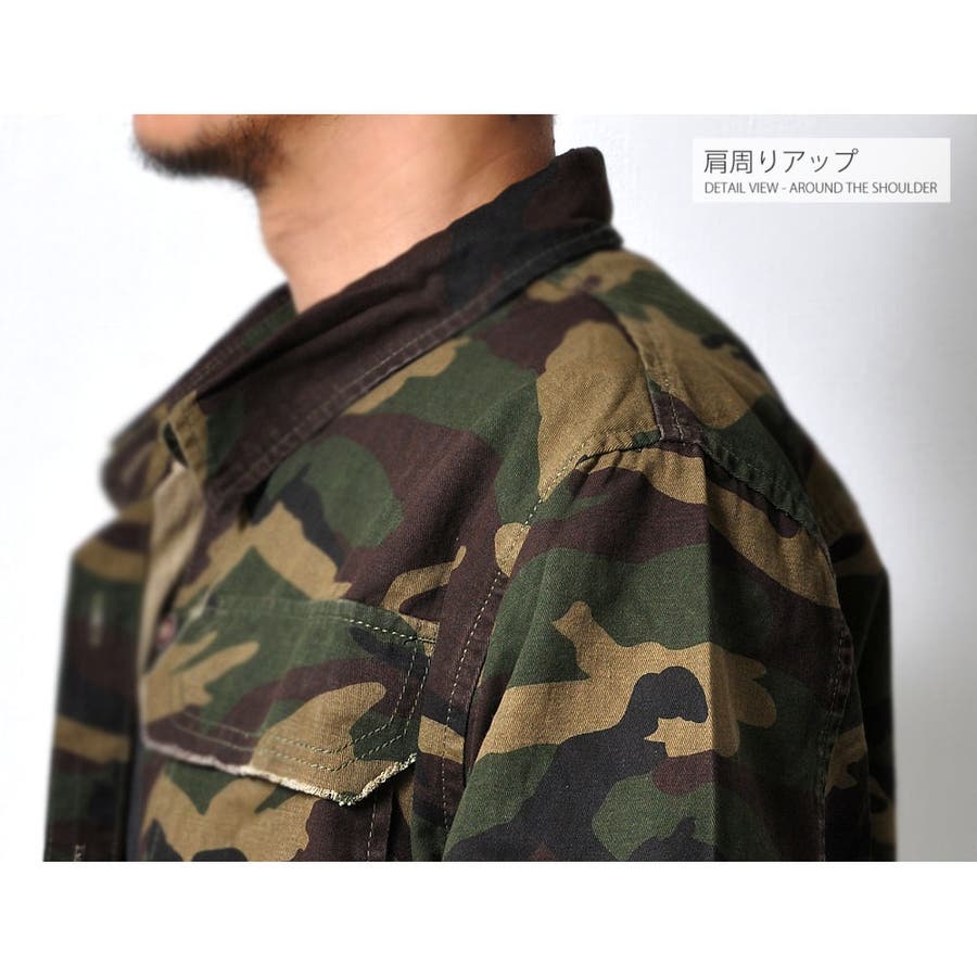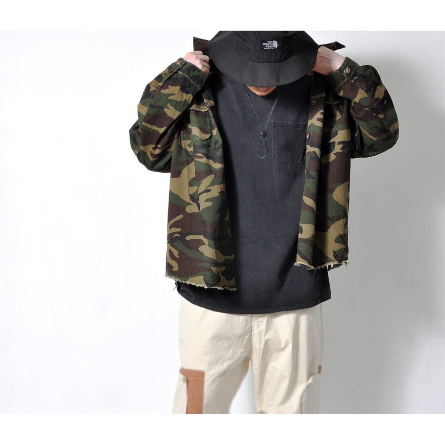 男らしさを強調した、カモフラ柄のカバーオールシャツ