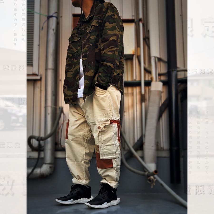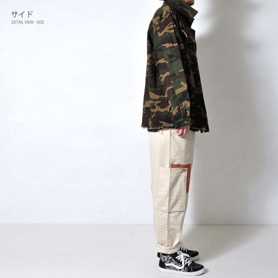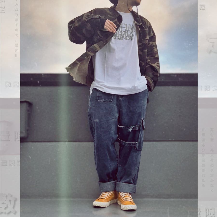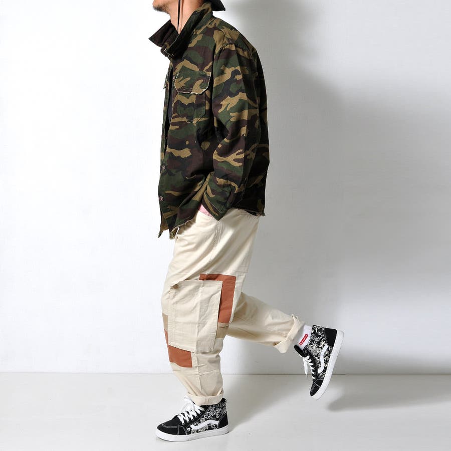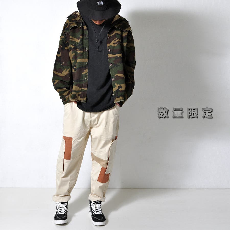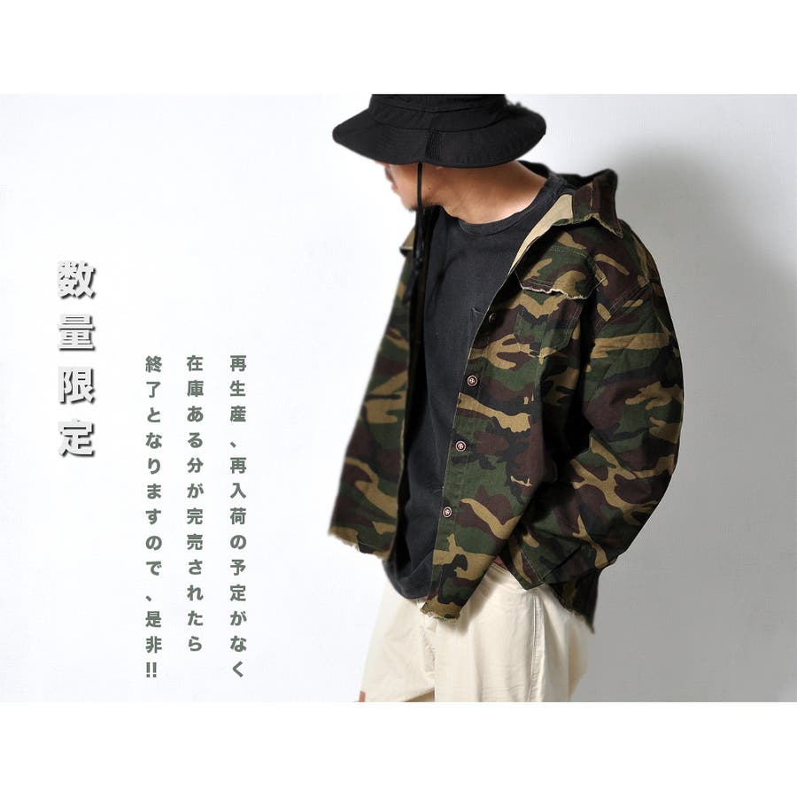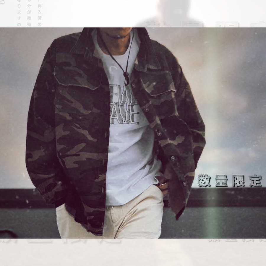 男らしさを強調した、カモフラ柄のカバーオールシャツ